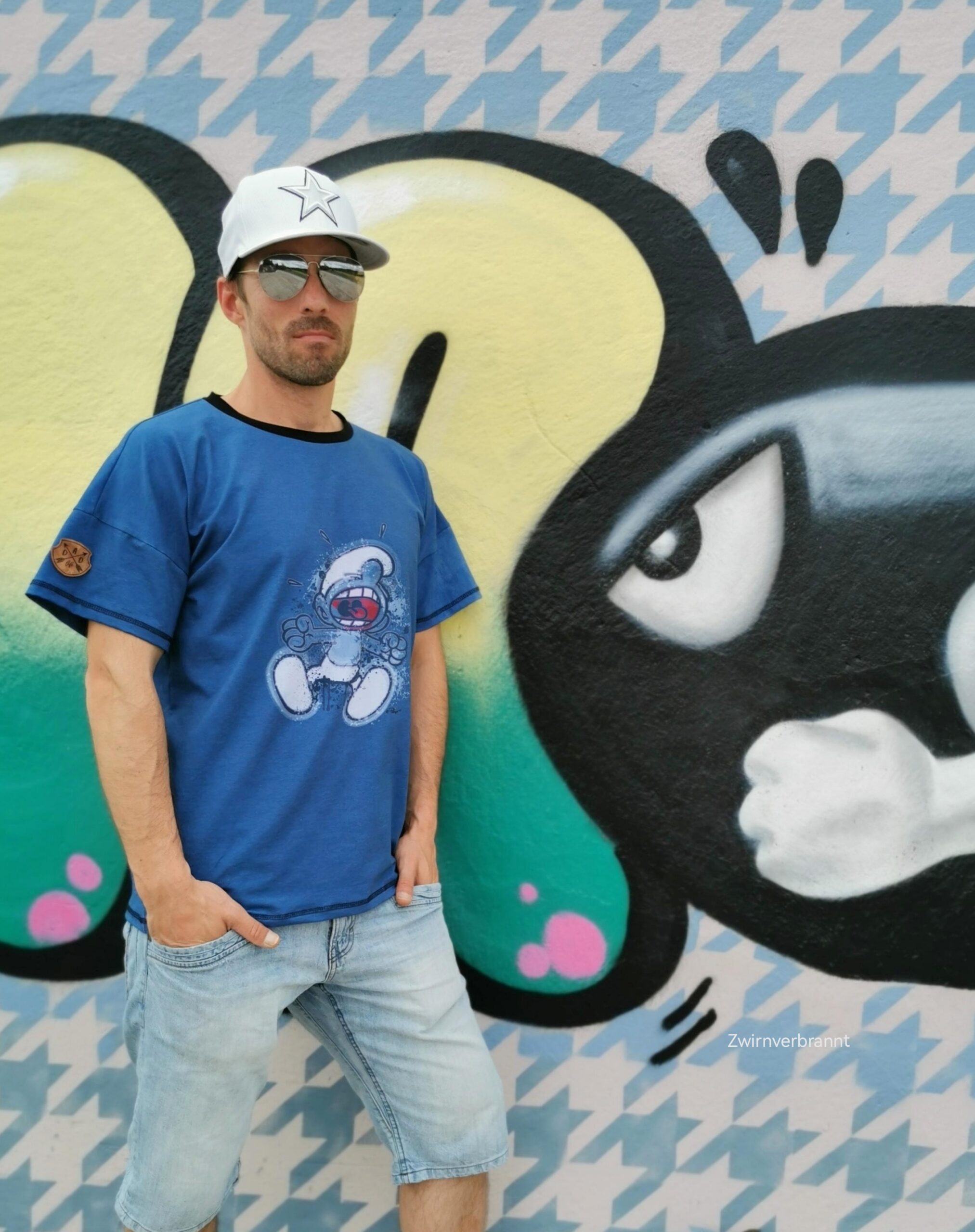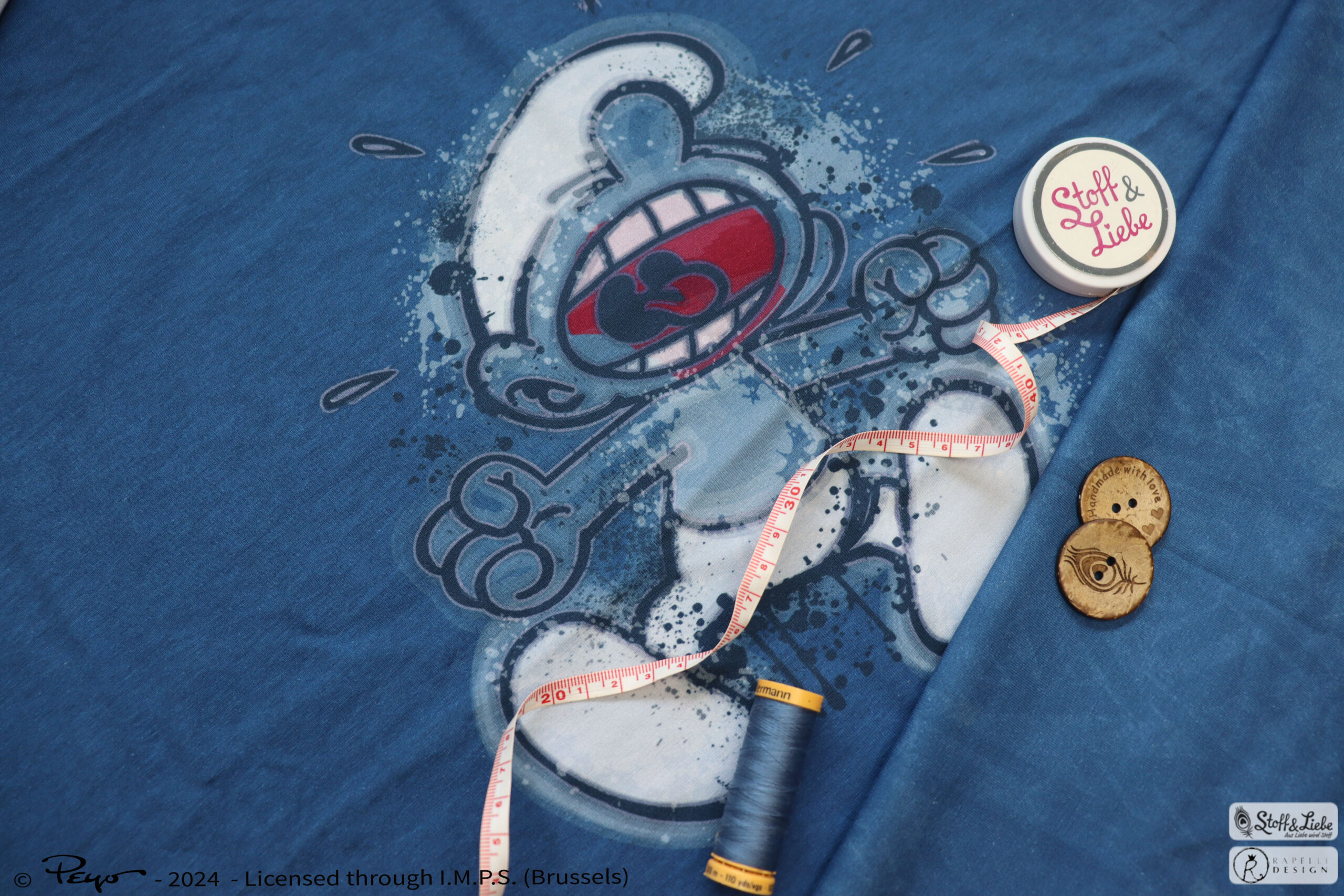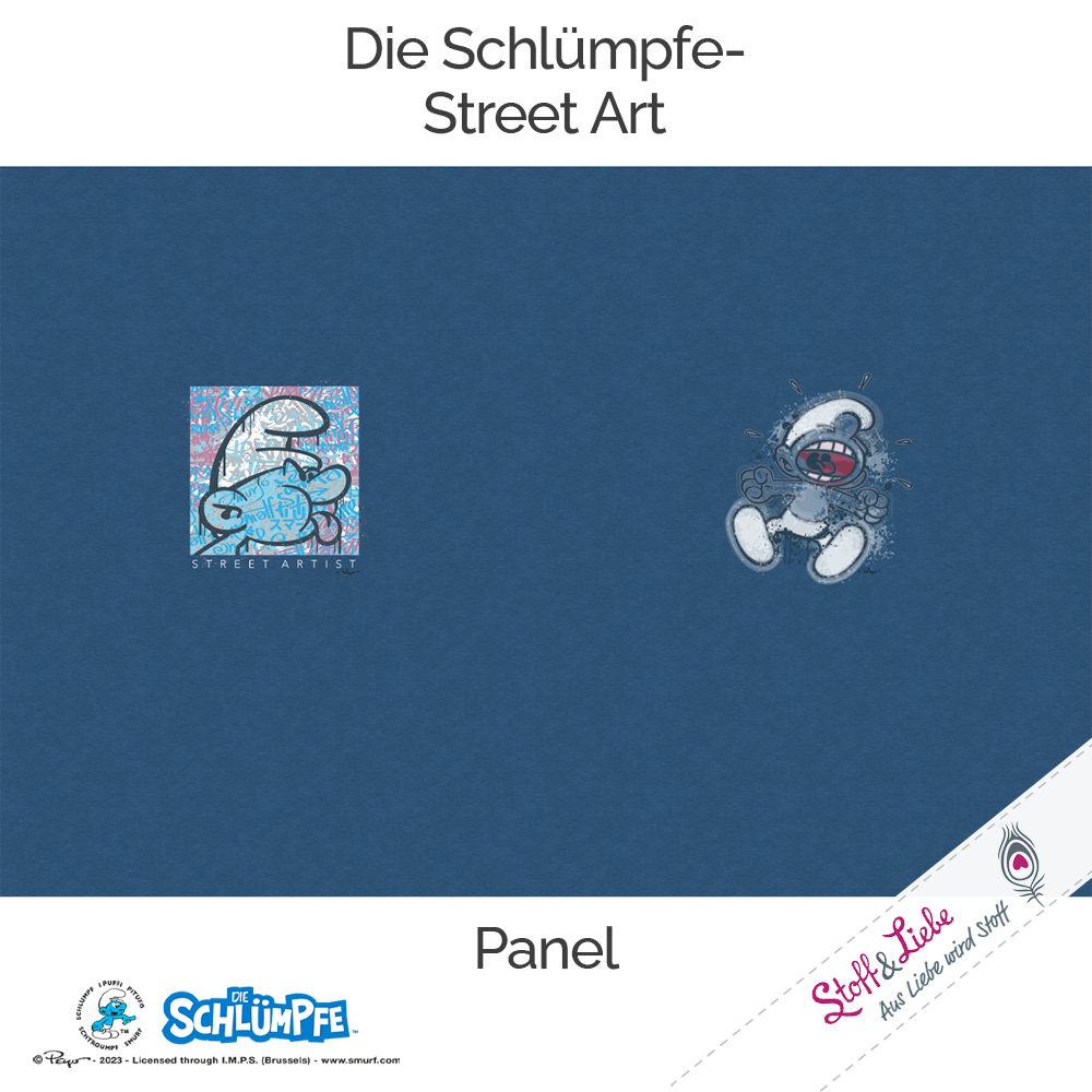 Street Art? Schlümpfe? Was für eine geniale Kombi! Ihr habt Euch Stoffe mit unseren kleinen blauen Freunden gewünscht, die auch erwachsenentauglich sind und hier sind sie nun. Was aber natürlich nicht heißt, dass diese Stoffe nicht auch für die kleineren Fans vernäht werden könnten.