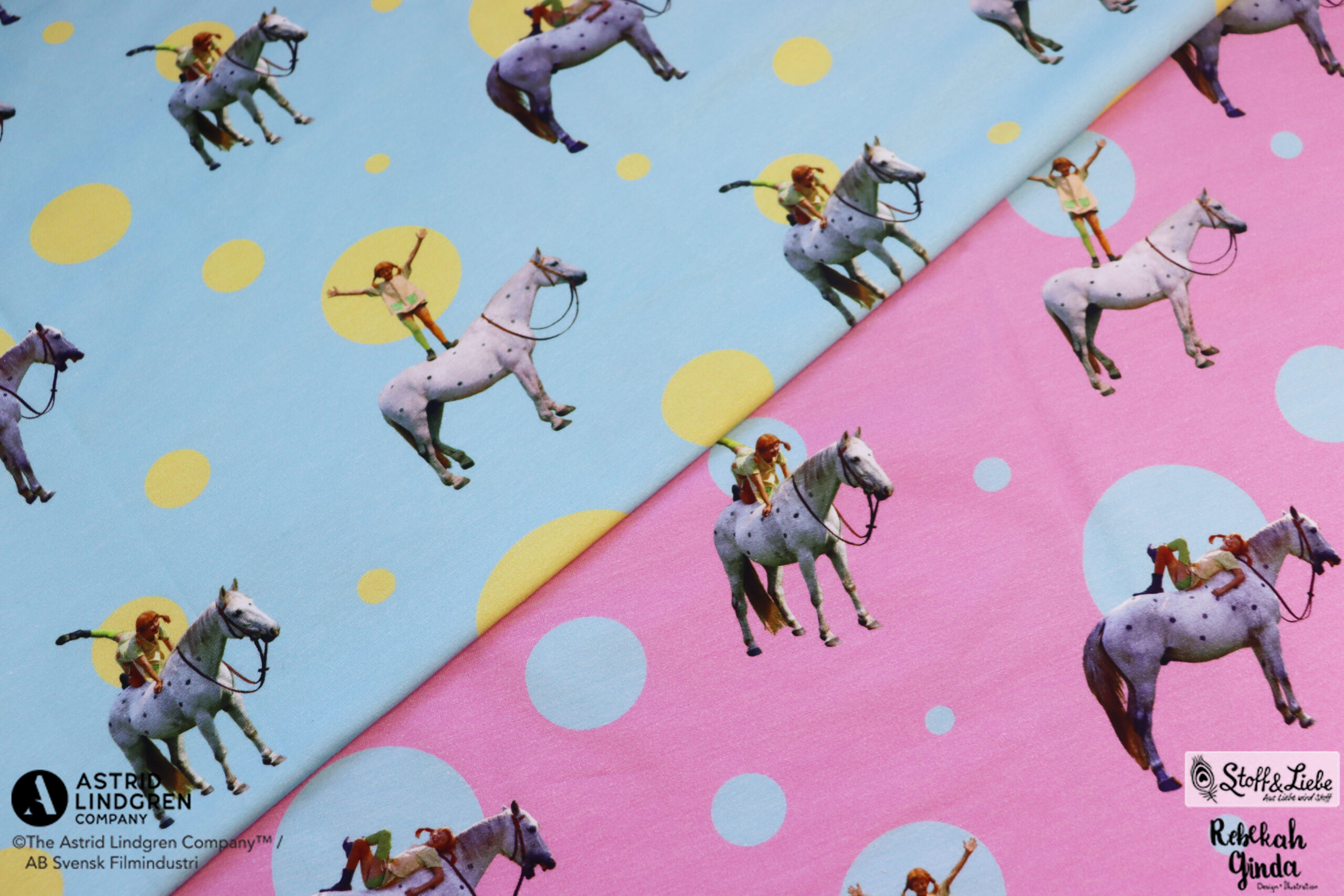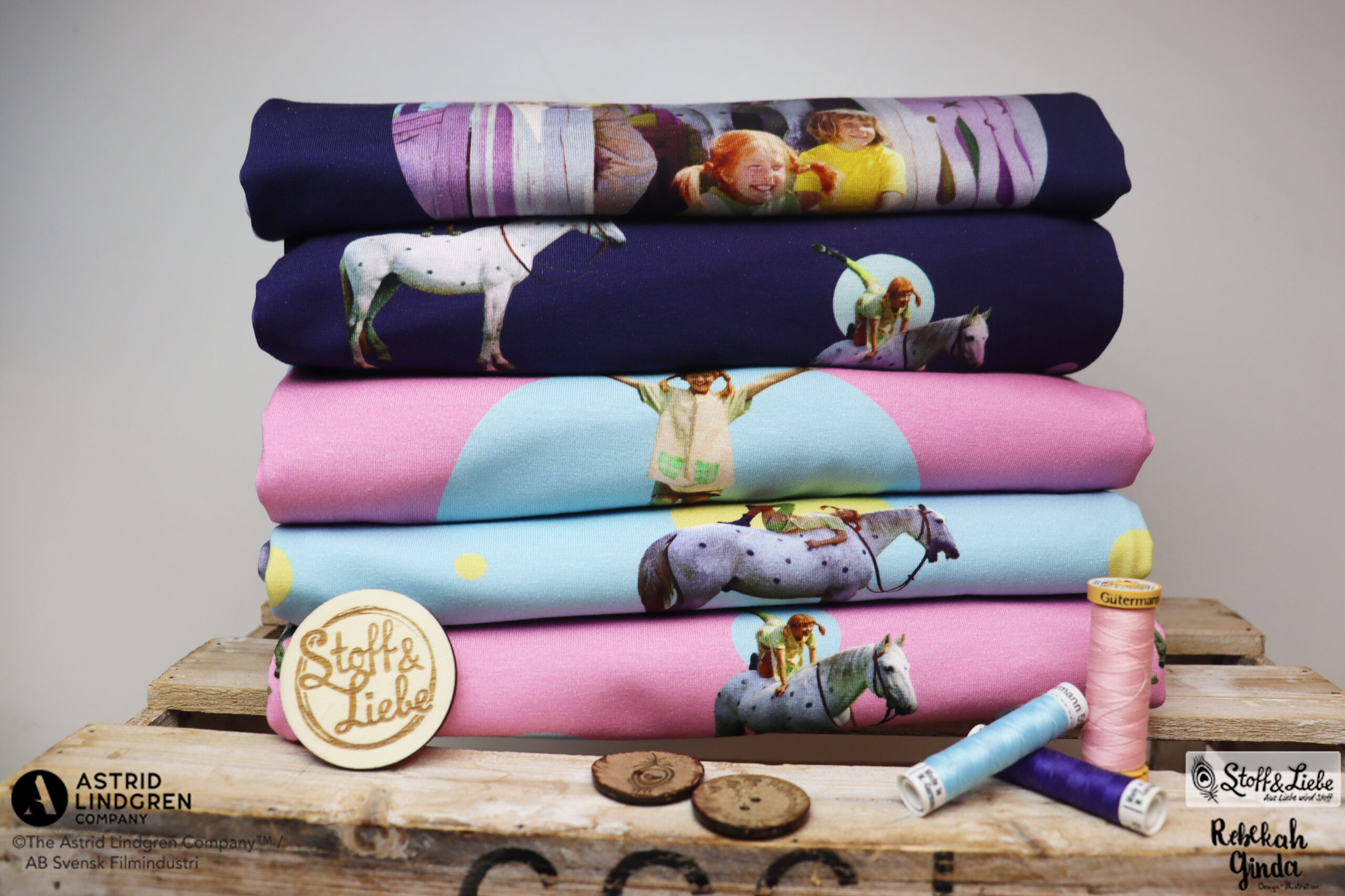 „Hei hopp, was wird das für ein Leben!“ Pippi ist wieder da und bringt Euch in dieser Woche eine farbenfrohe Kollektion mit. Freut Euch auf ein fröhlich buntes Design mit typischen Pippi Motiven und jeder Menge Freiraum für Eure Kreativität. Wählen könnt Ihr diesmal nicht nur zwischen unterschiedlichen Farben, sondern auch zwischen zwei Qualitäten: Jersey und French Terry! Hei hopp, was werden das für tolle Nähwerke!
