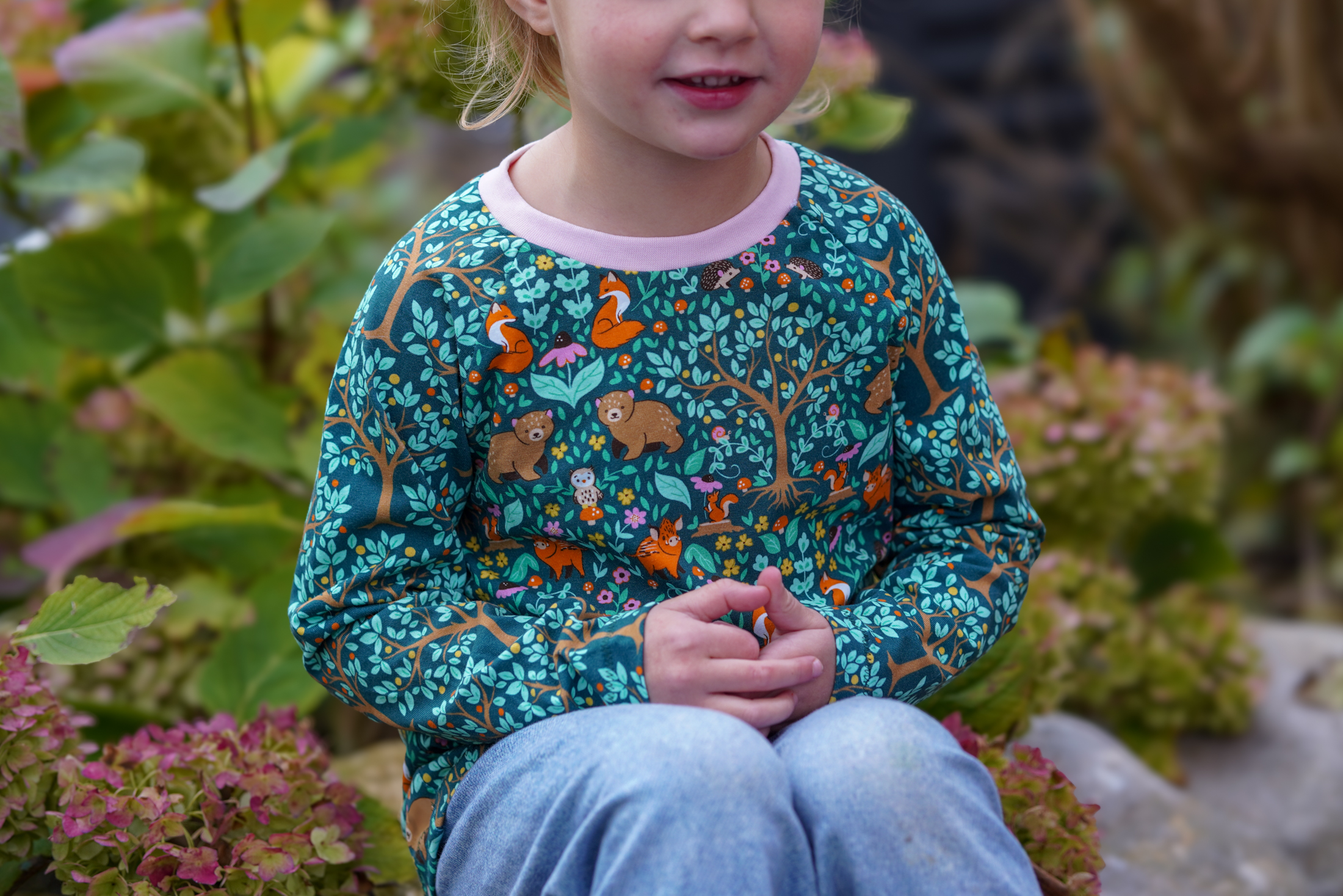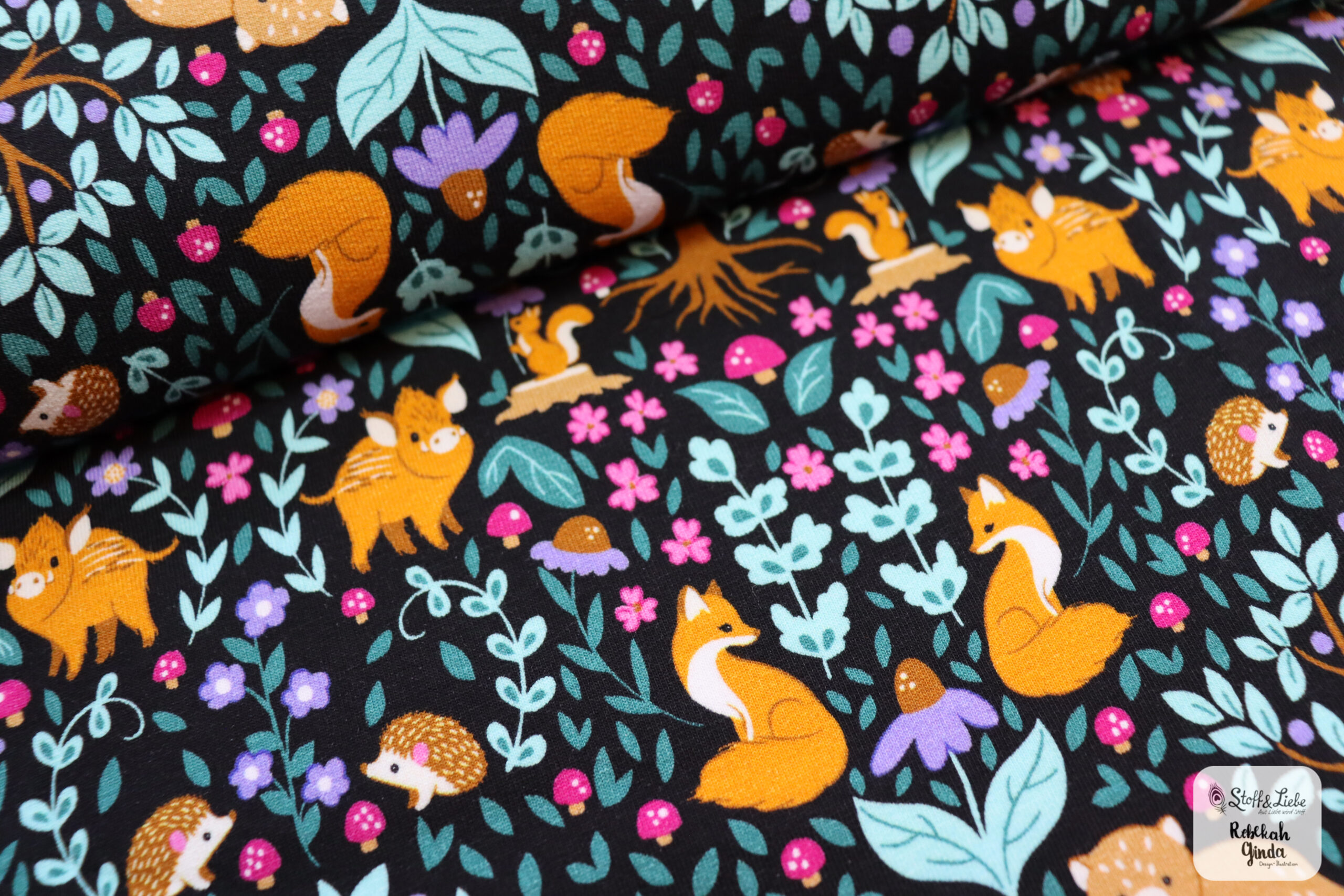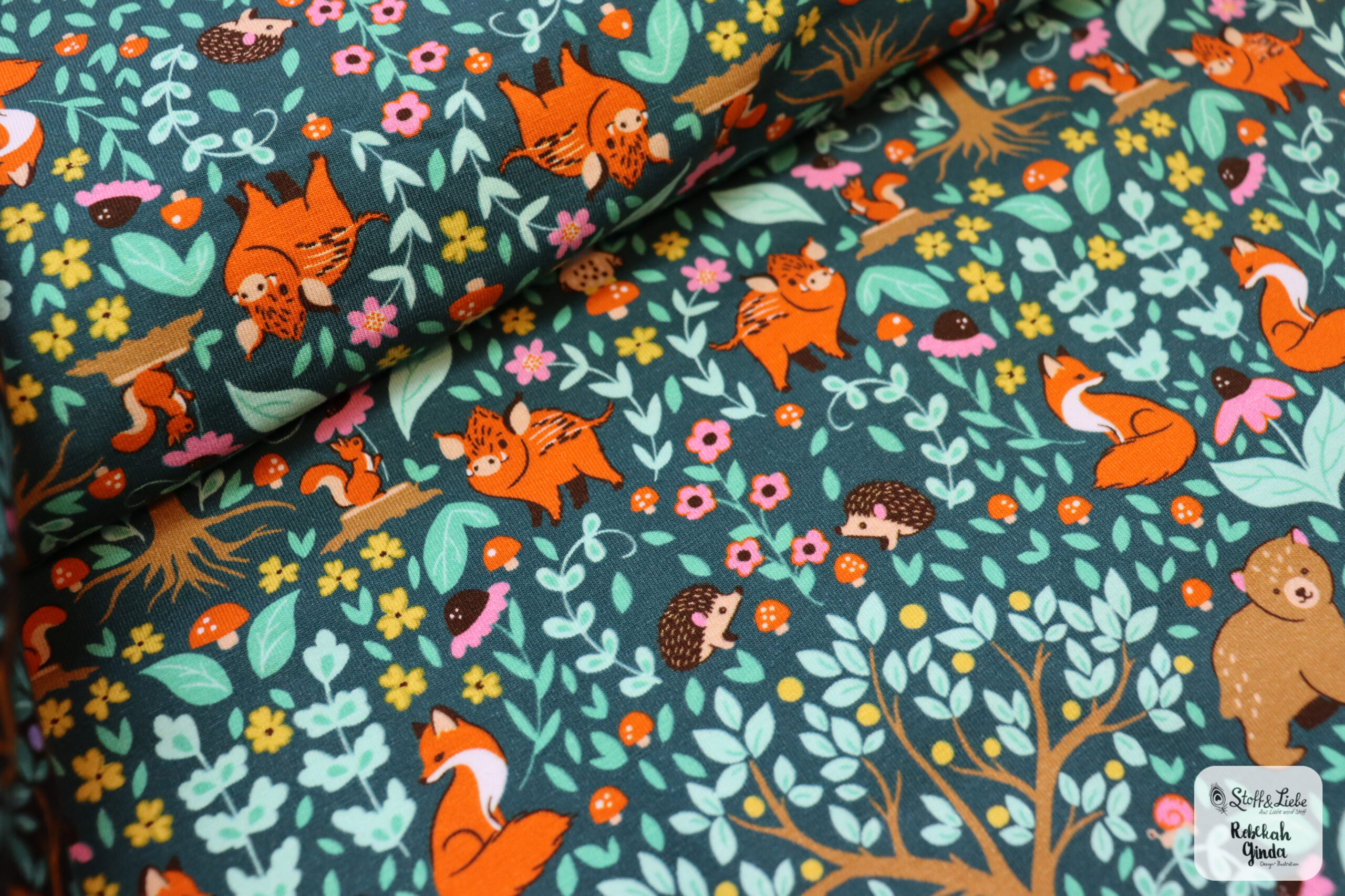 Wie oben schon erwähnt, ist in jeder Farbvariante ein Haupt- und ein Kombistoff erhältlich. Habt Ihr schon alle Tiere und Pflanzen entdeckt? Ihr dürft raten, wer aus dem Team sich hier das süße Eichhörnchen mit dem Blümchen gewünscht hat. Na, kommt Ihr darauf? 😉