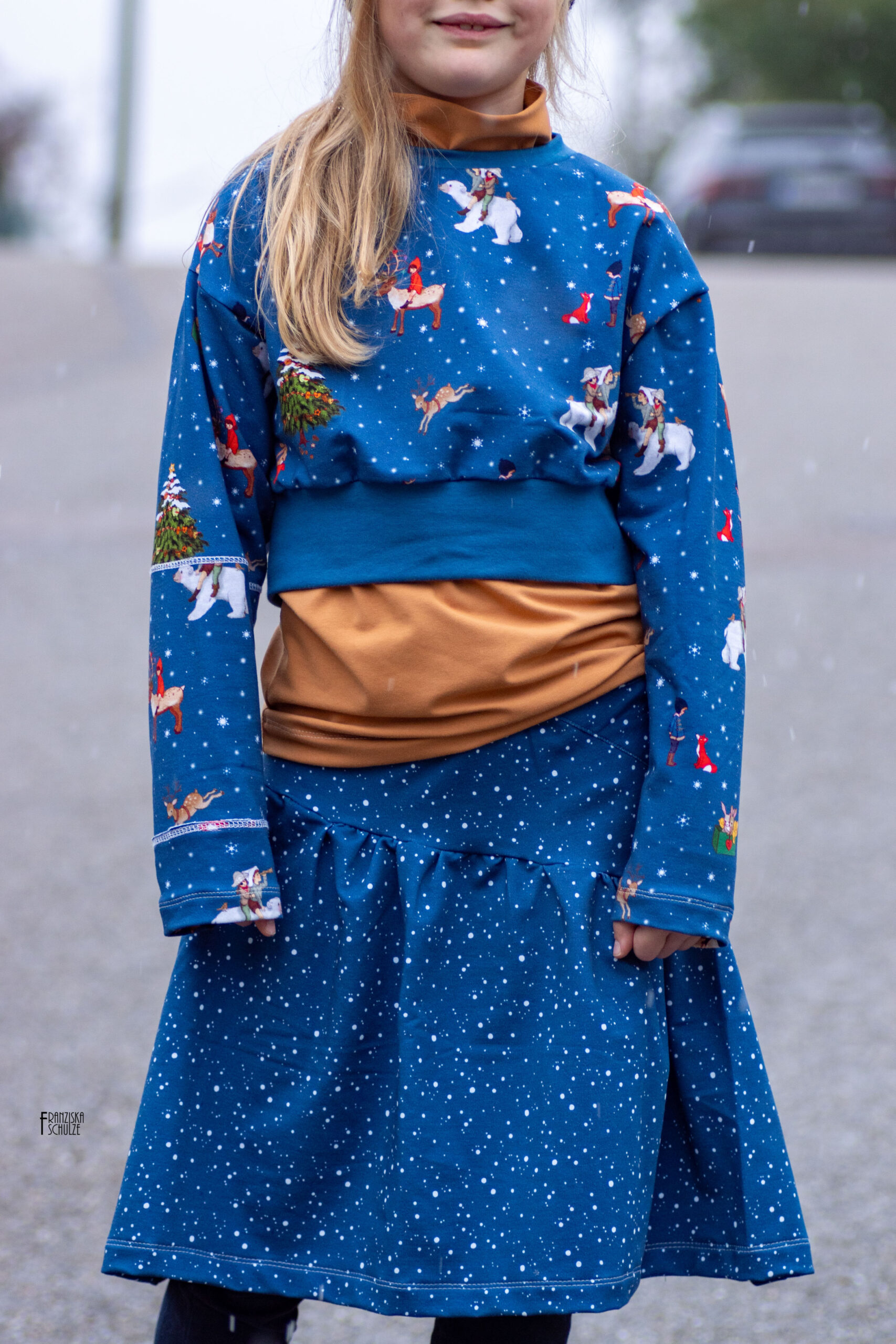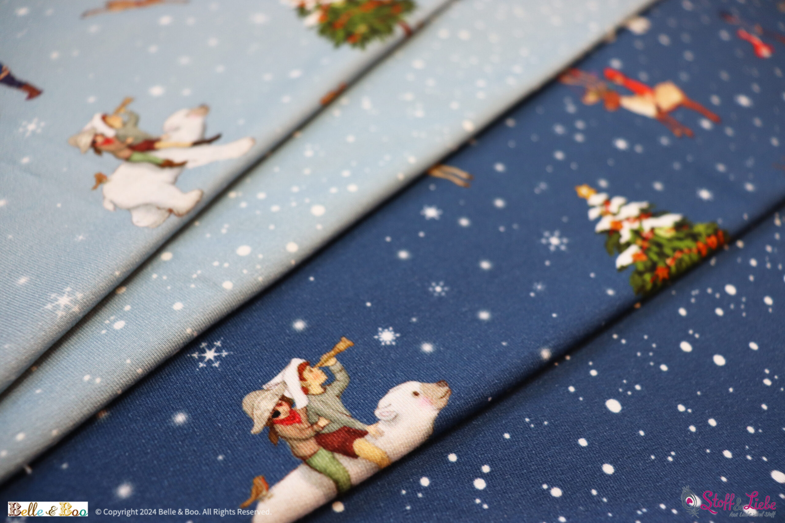 Bei dieser wunderschönen Winterkollektion könnt Ihr zwischen Hellblau und Dunkelblau wählen. Zu jeder Farbvariante gehört ein Allover und der passende Kombistoff „Snowstorm“.