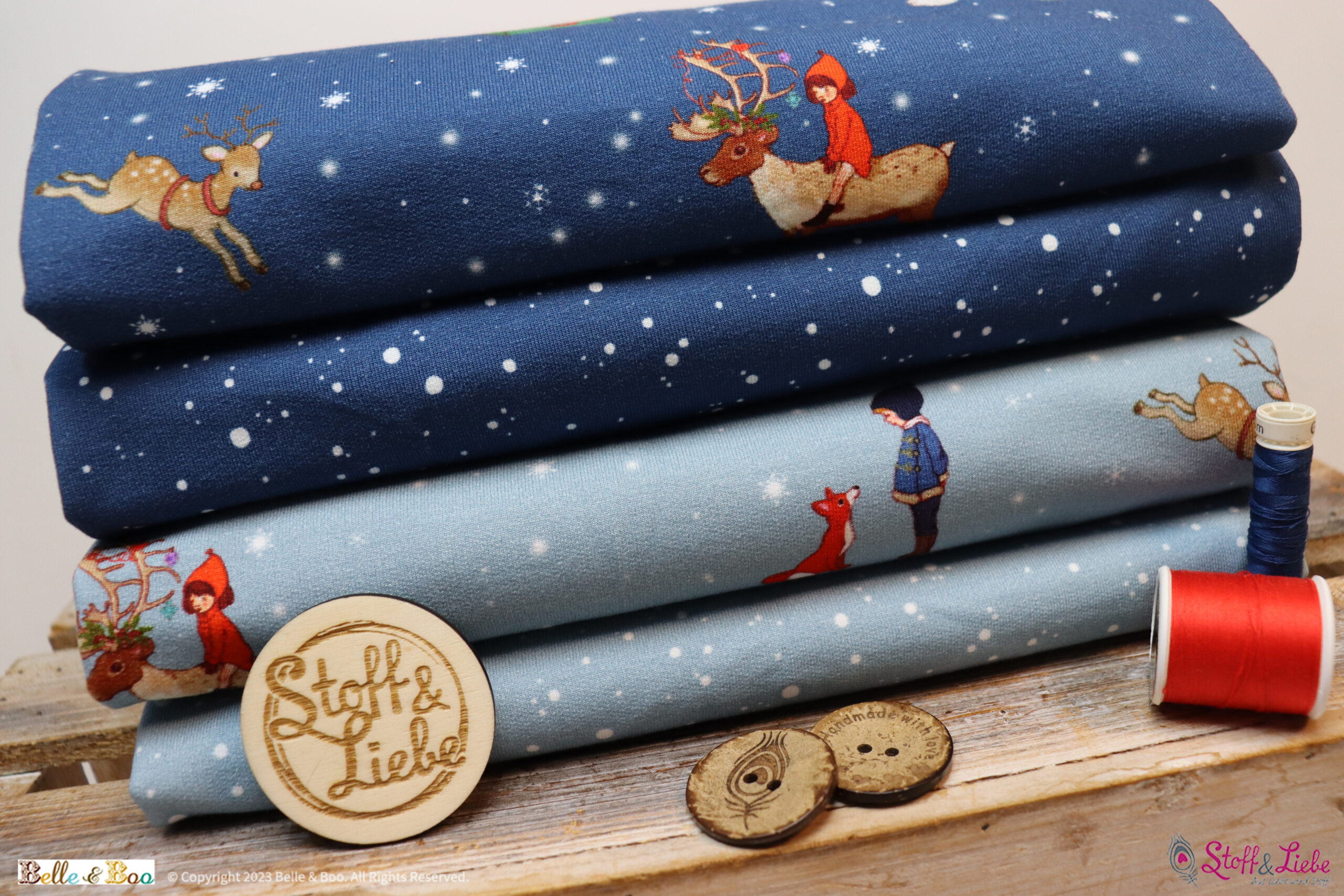 Das Jahr neigt sich langsam dem Ende, der Winter ist zum Greifen nah. Zeit für Stoffe im Winterdesign, die so richtig Lust auf Schnee und ganz viel Gemütlichkeit machen. Was wäre da passender als Belle und ihr süßer Hase Boo? Kommt mit ins Winter Wonderland!