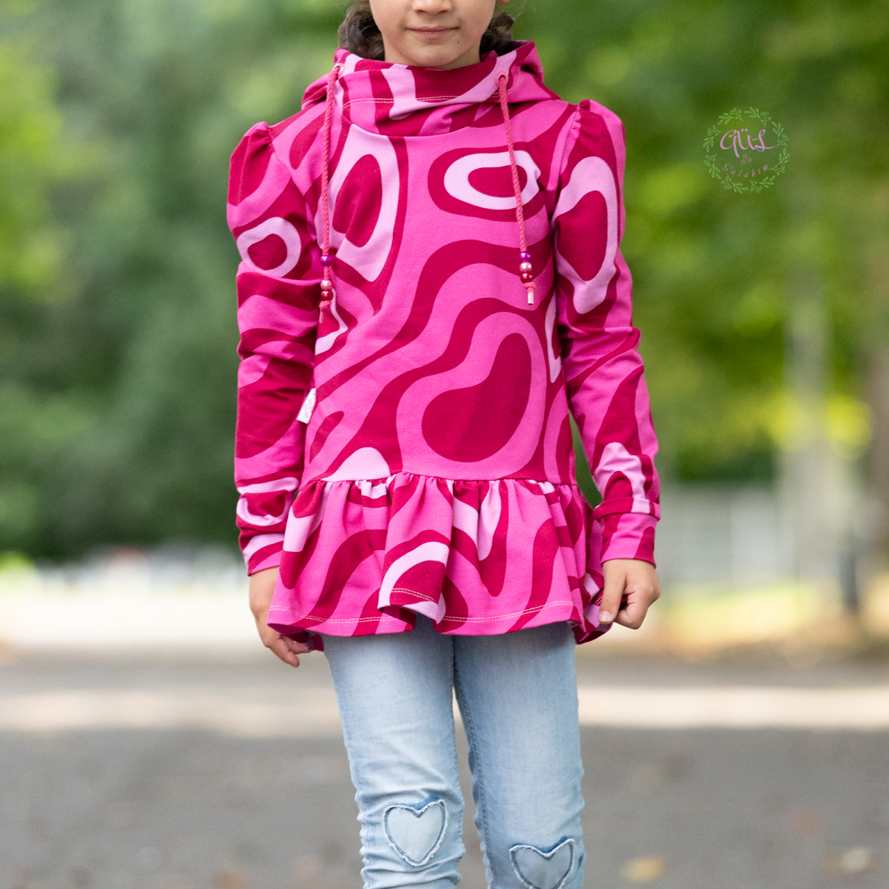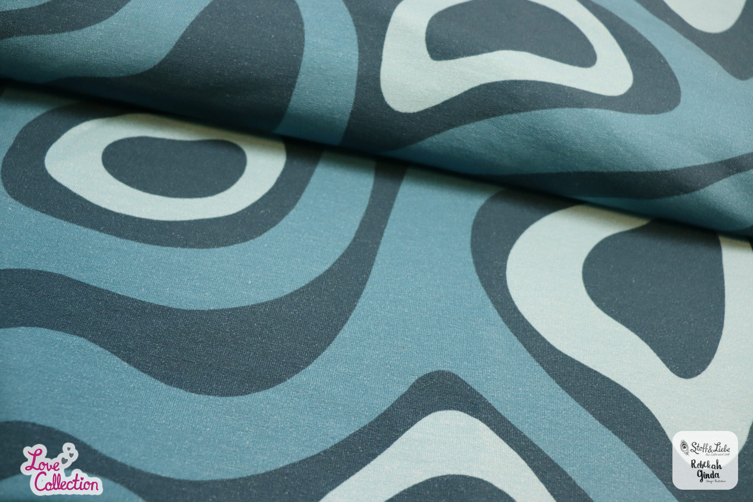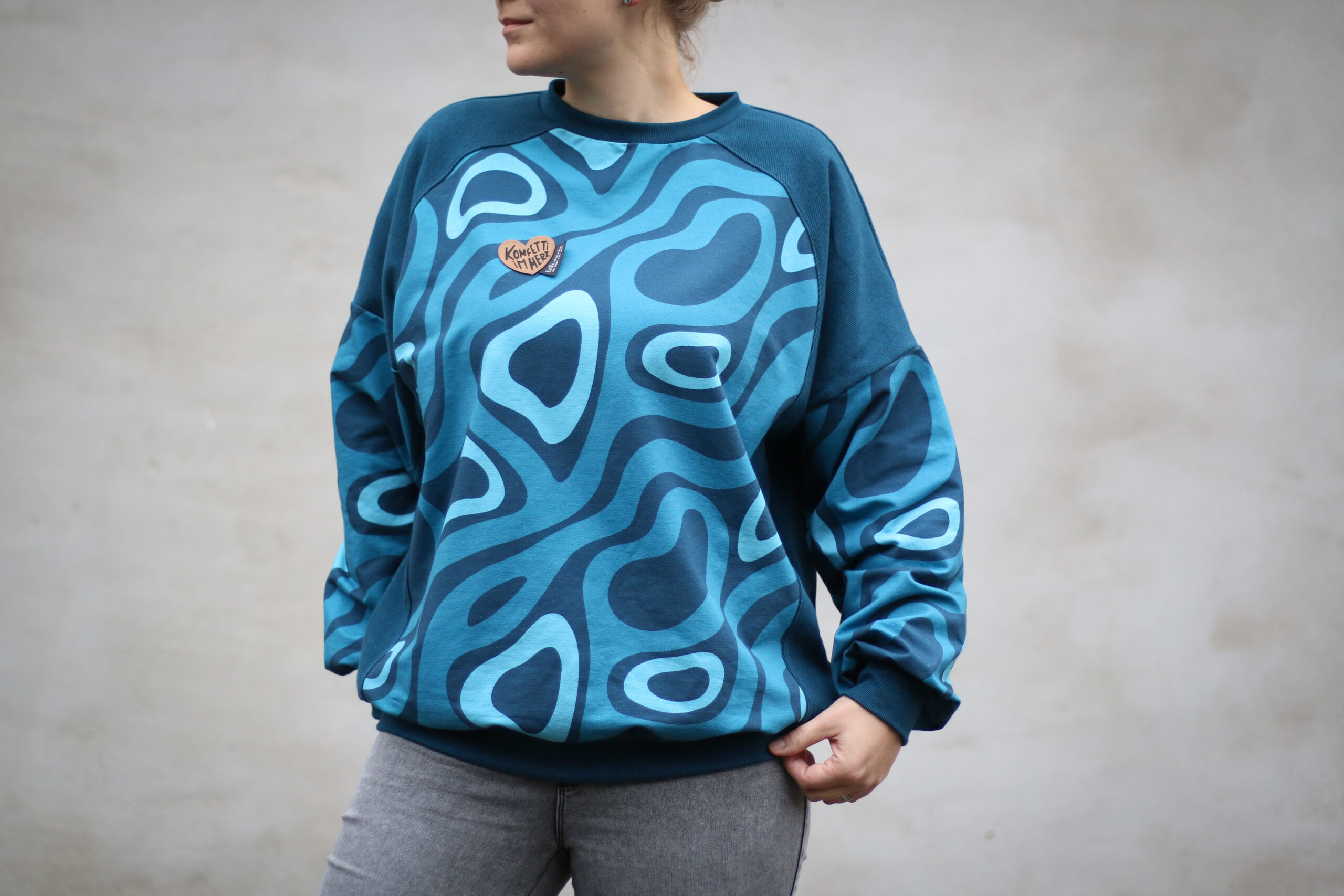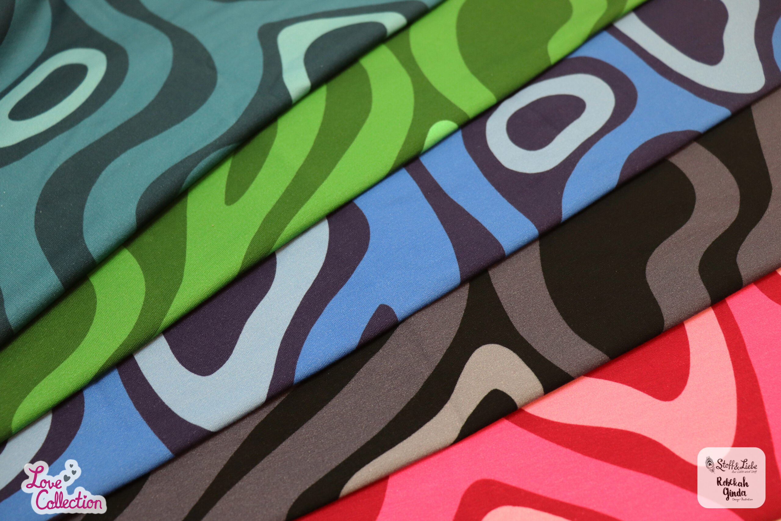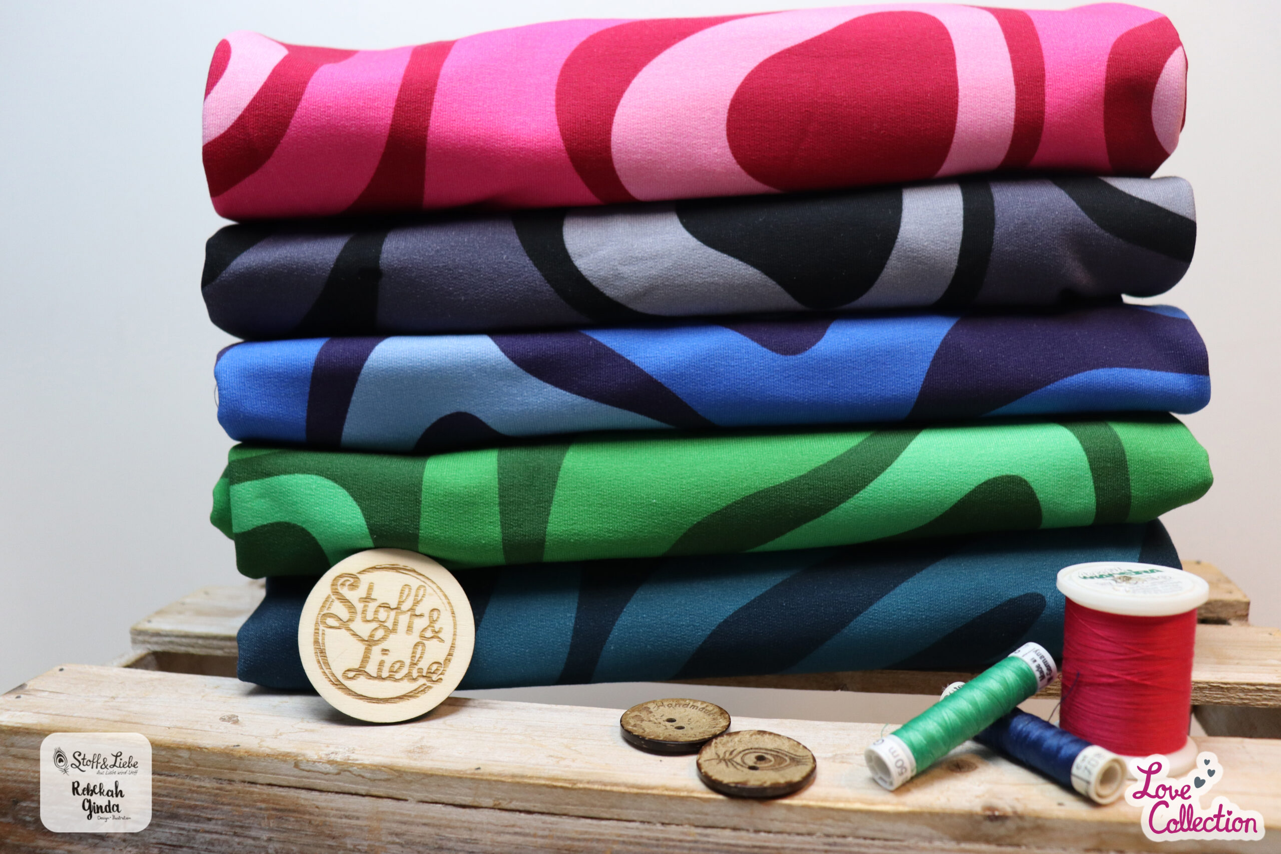 Vernähe die Ripples ganz in Deinem Stile und mach den Stoff zu Deinem. Vielleicht ein lässiger Hoodie? Eine bequeme Hose? Ein Longcardigan oder aber ein Kleid? Wir sind gespannt wofür und vor allem, für welche Farbe Du Dich entscheidest. Zur Auswahl stehen Dir: Blau, Flaschengrün, Petrol, Pink und Schwarz.