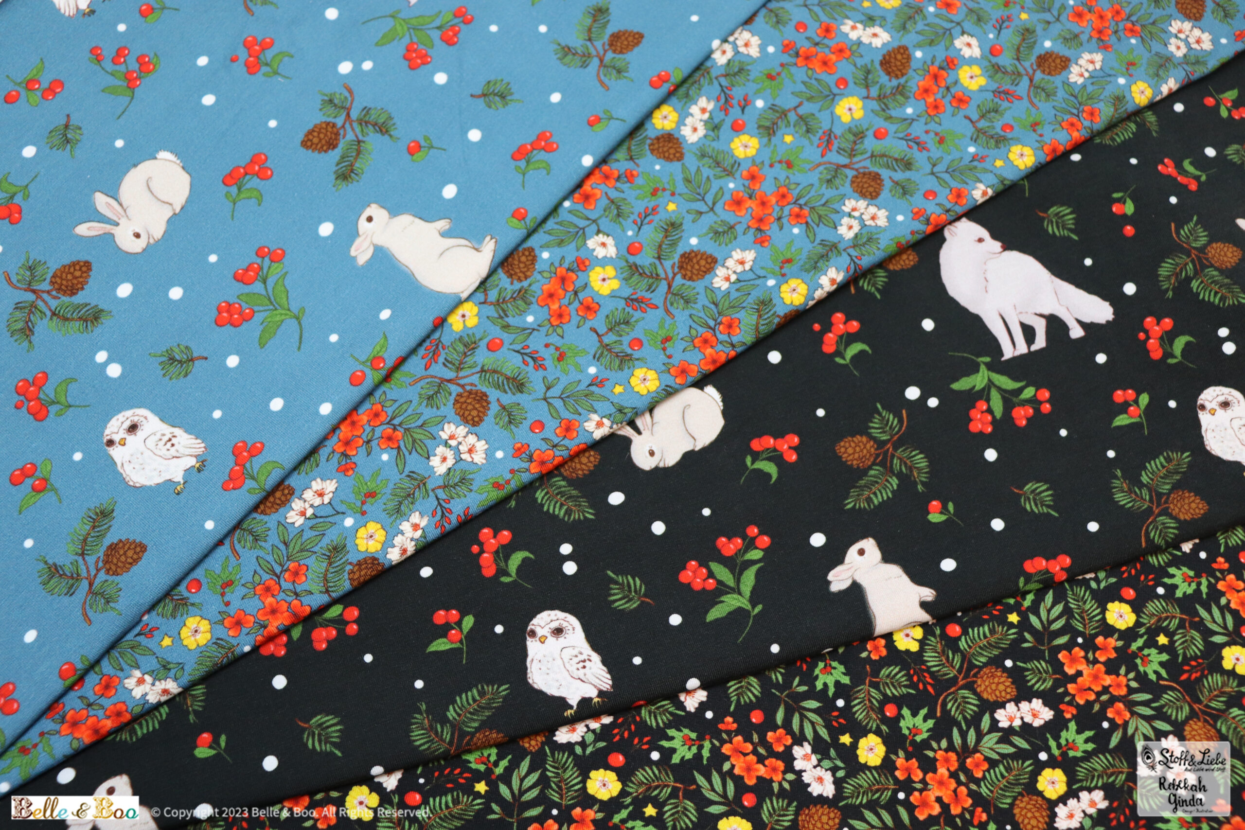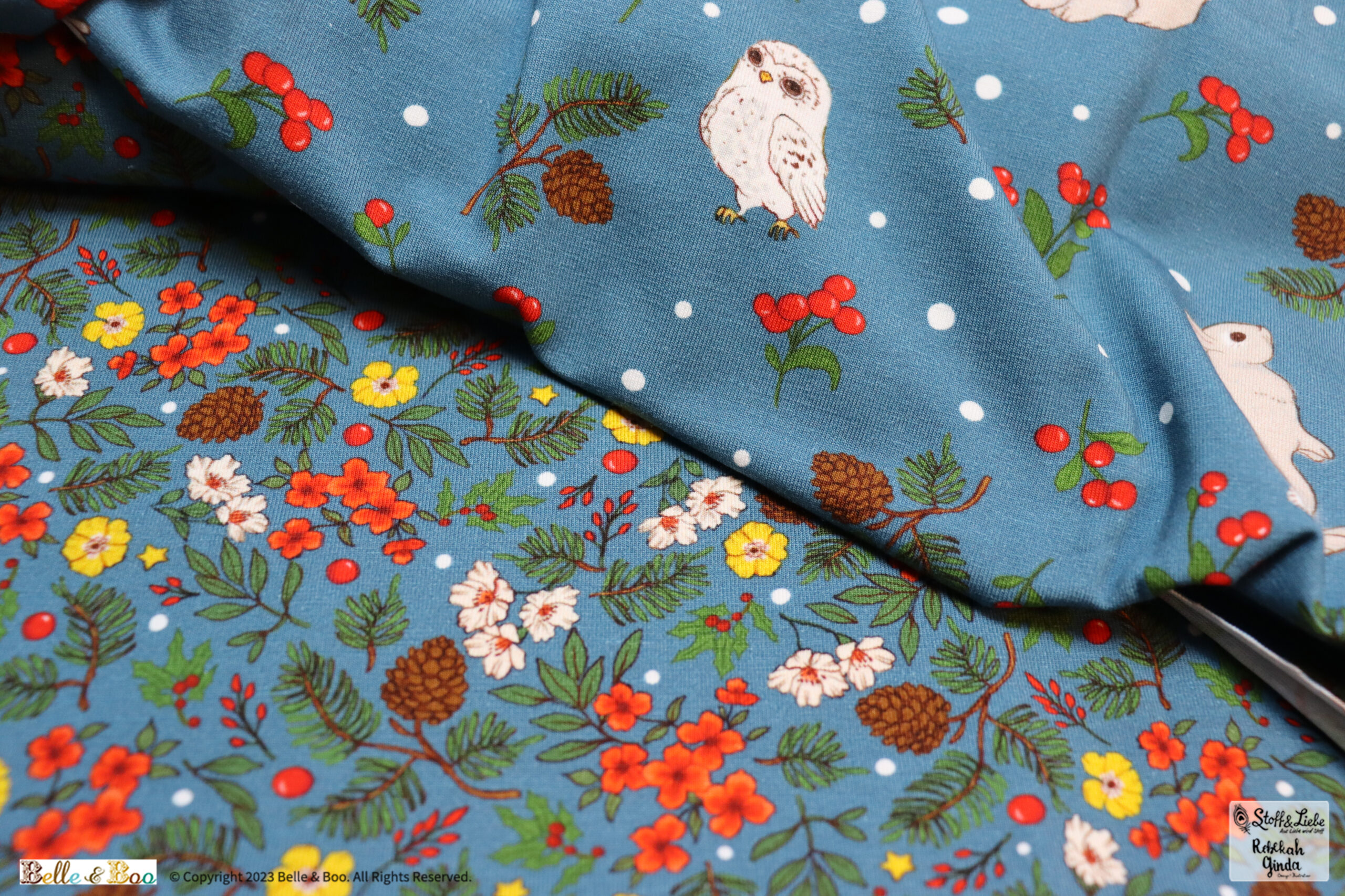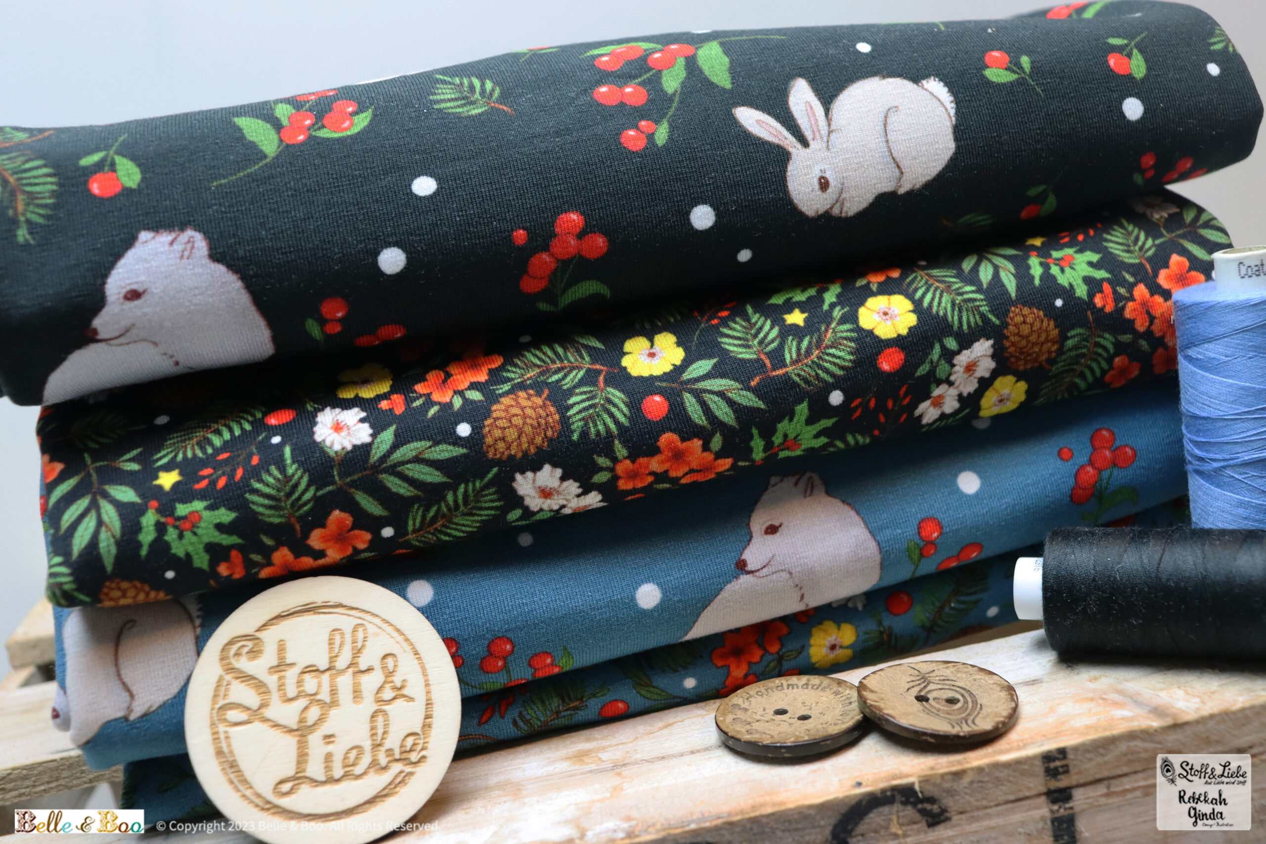 Diese Belle & Boo Kollektionen wurde umgesetzt von Rebekah Ginda und einen Allover und einen Kombistoff in jeweils zwei Farbvaranten für Euch bereit. Davon eine Farbvariante auf Kuschelsweat (Schwarz) und eine auf French Terry (Blau). Da bleiben doch wirklich keine Wünsche offen, oder?