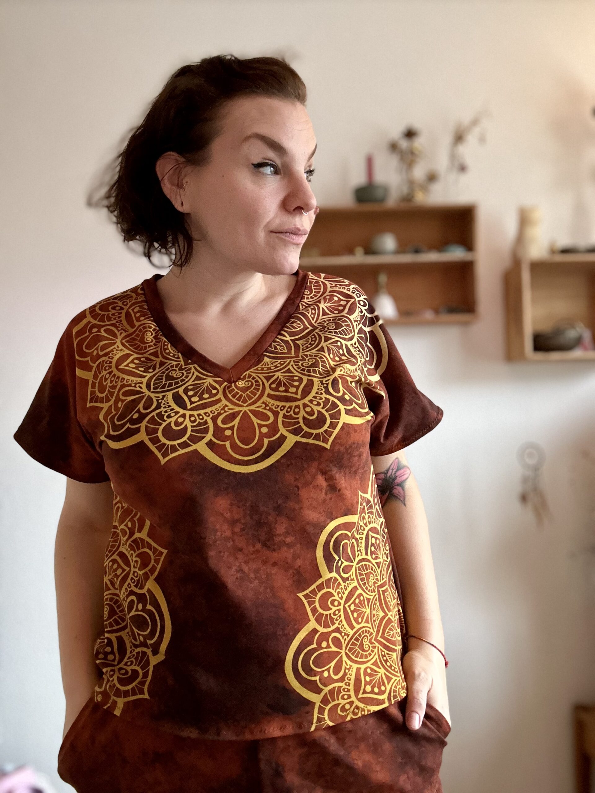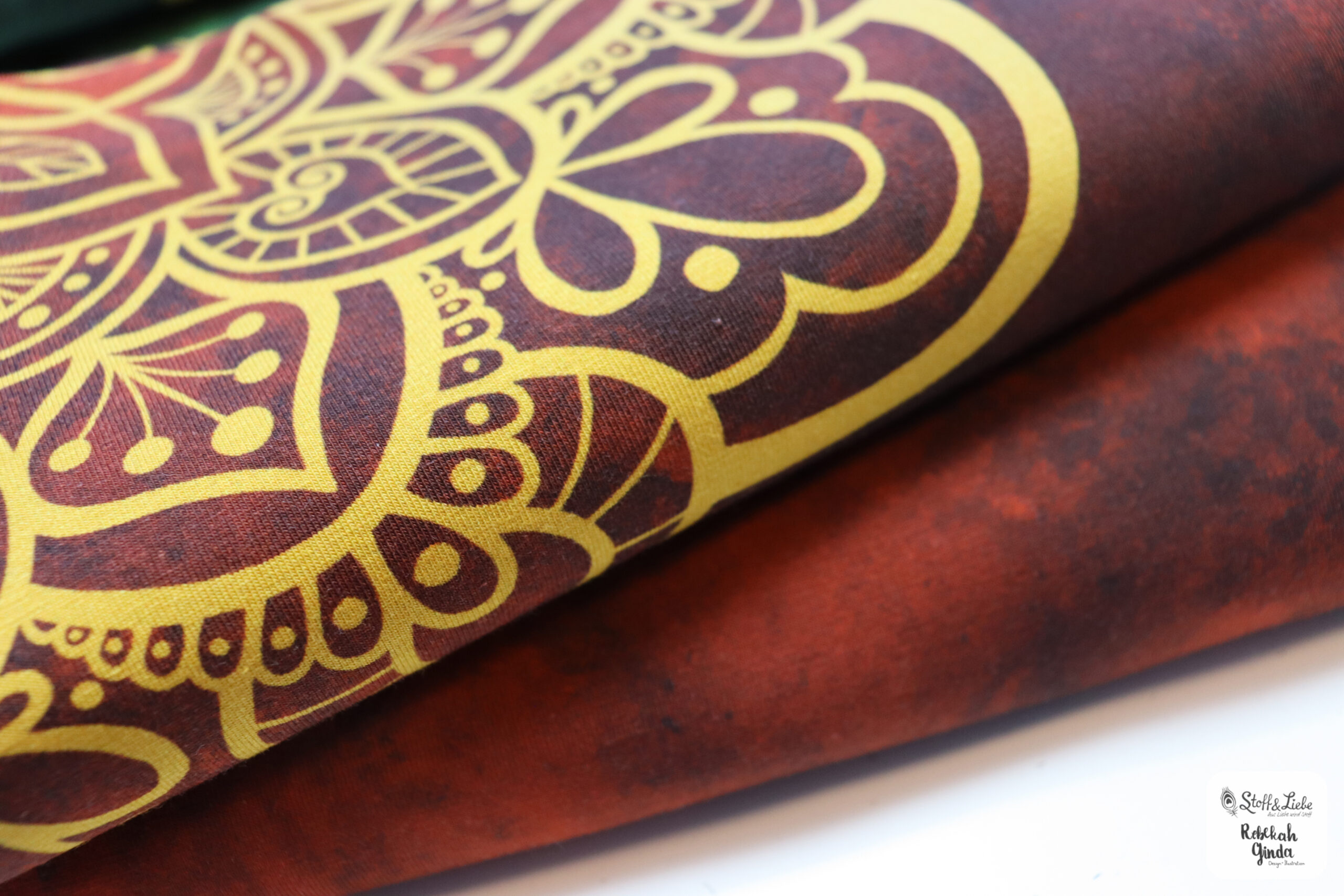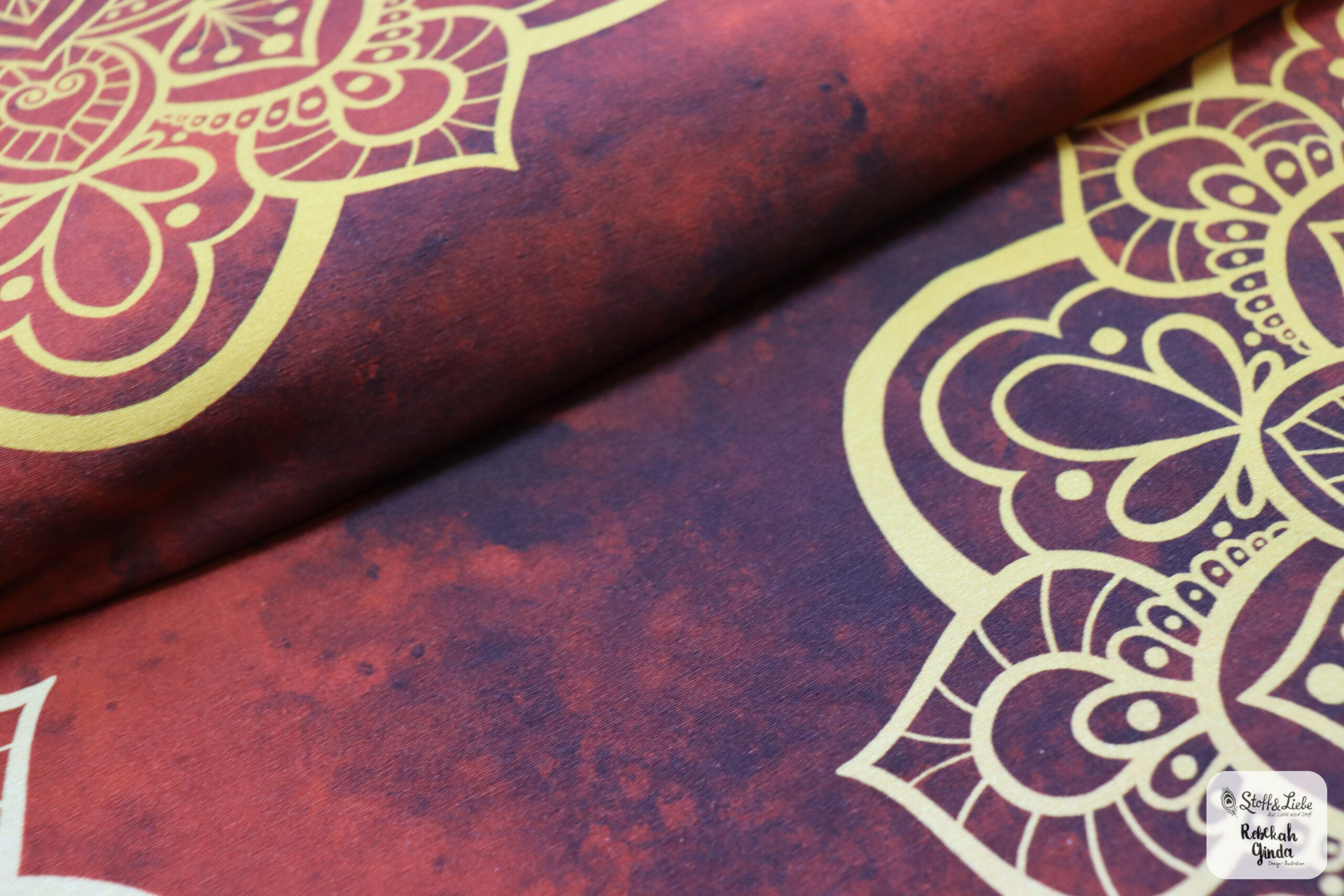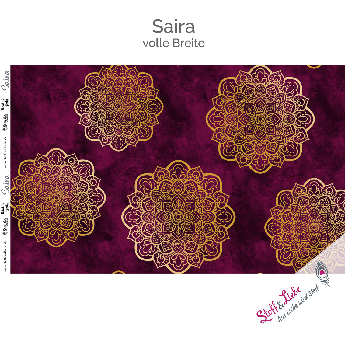 Saira lässt keine Wünschen offen. Wie oben schon erwähnt ist hier das klassische Mandala Design mit den Einflüssen des unverkennbaren Stoff & Liebe Stiles kombiniert. Dadurch entsteht ein ganz besonderer Look. Ihr könnt zwischen vier großartigen Farbvarianten wählen: Bronze, Rubin, Saphir und Smaragd.