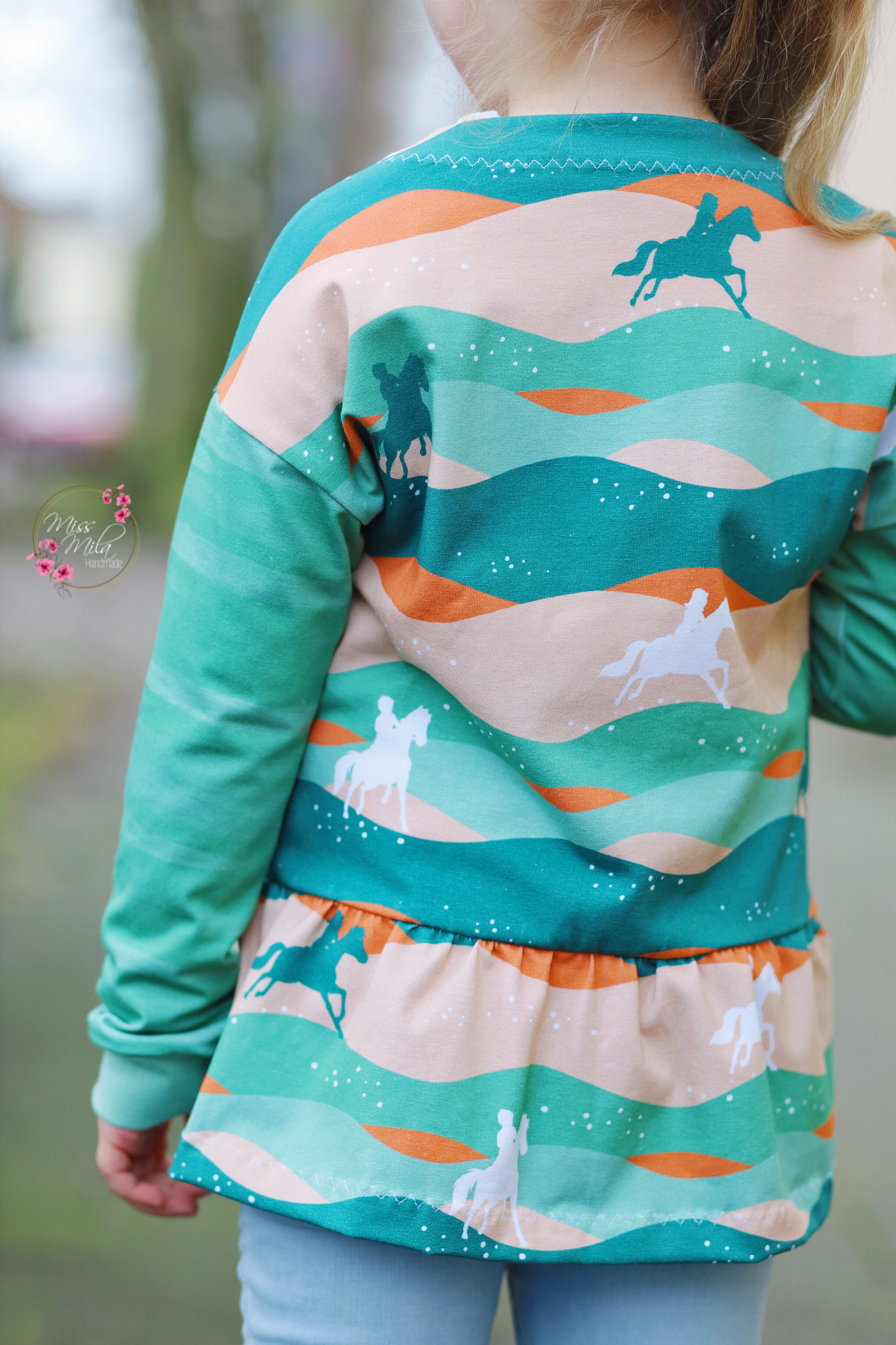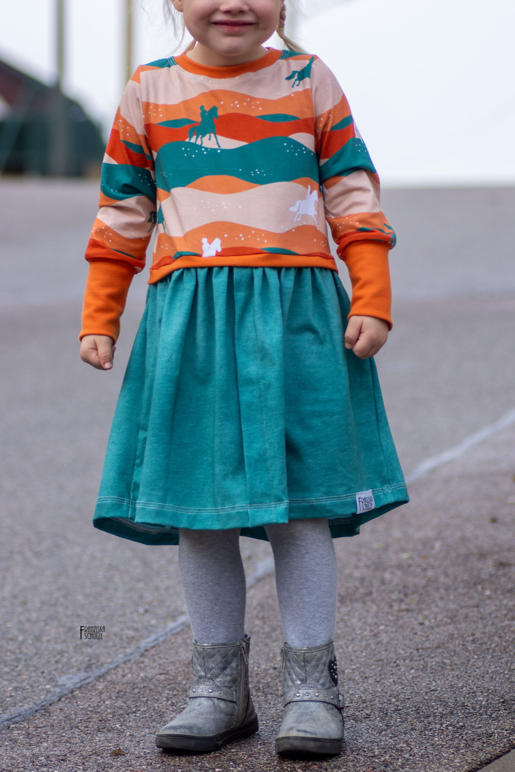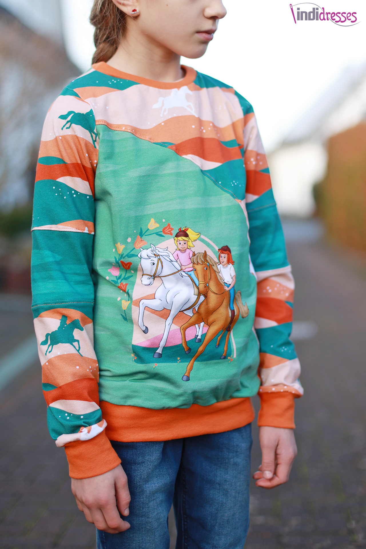 Auf Euch warten die Kollektion „Pferdemädchen“ und „Wildfang“, jeweils mit Panel, Allover und perfekt passenden Kombistoffen. Hier könnt Ihr Euren Bibi & Tina Fans die schönsten Teile nähen und Wünsche rund um Ihre Lieblinge erfüllen. Jetzt ist es aber an der Zeit Euch alle Designs einmal vorzustellen. Wir sind gespannt, wie sie Euch gefallen!