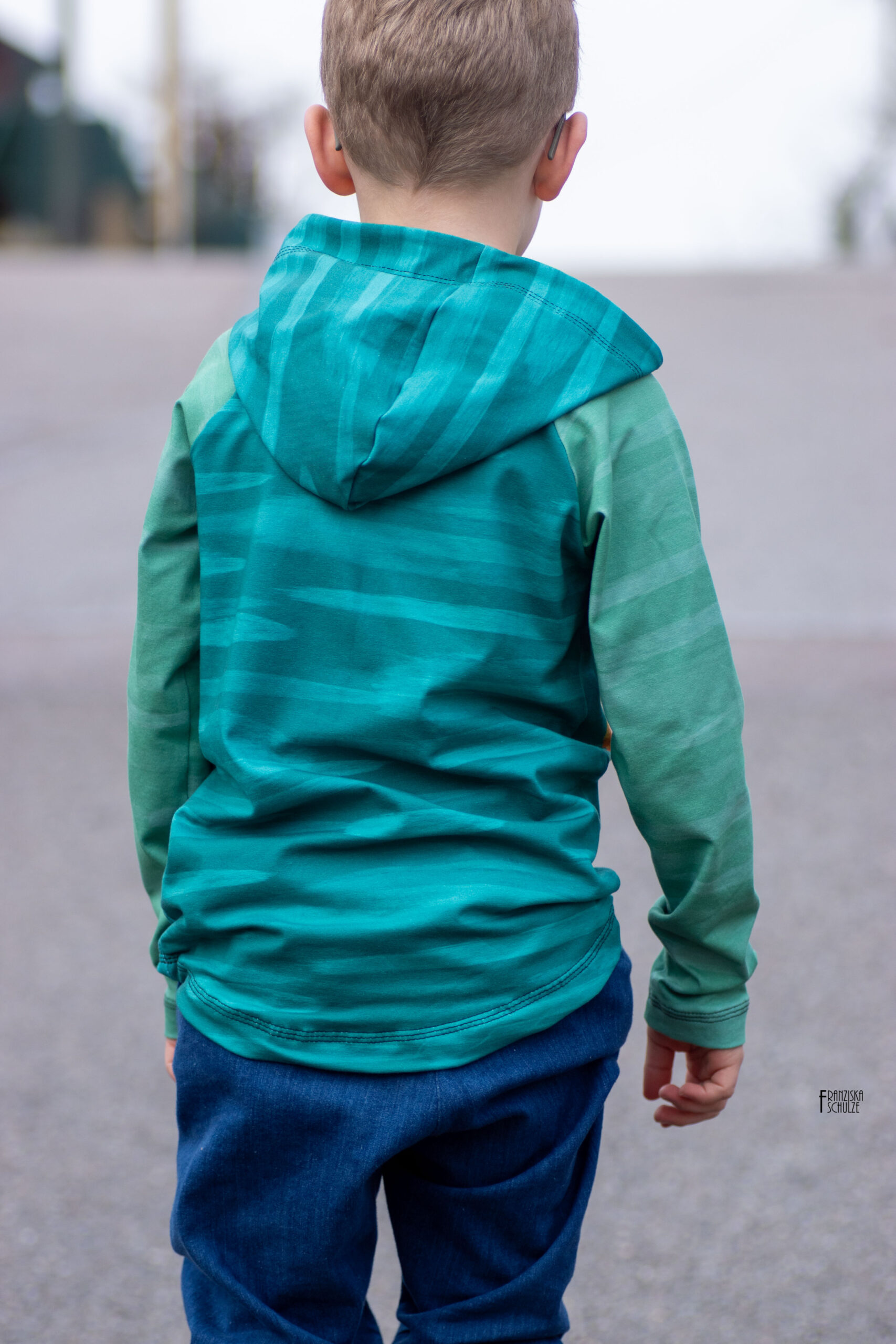 Auch bei der Aufteilung sind wir auf Eure Wünsche eingegangen. Denn Ihr bekommt mit einem Stoff direkt zwei Farbvarianten. Einmal farbidentisch Lila-Blau auf der zweiten Hälfte einen Kontraststoff, Türkis.