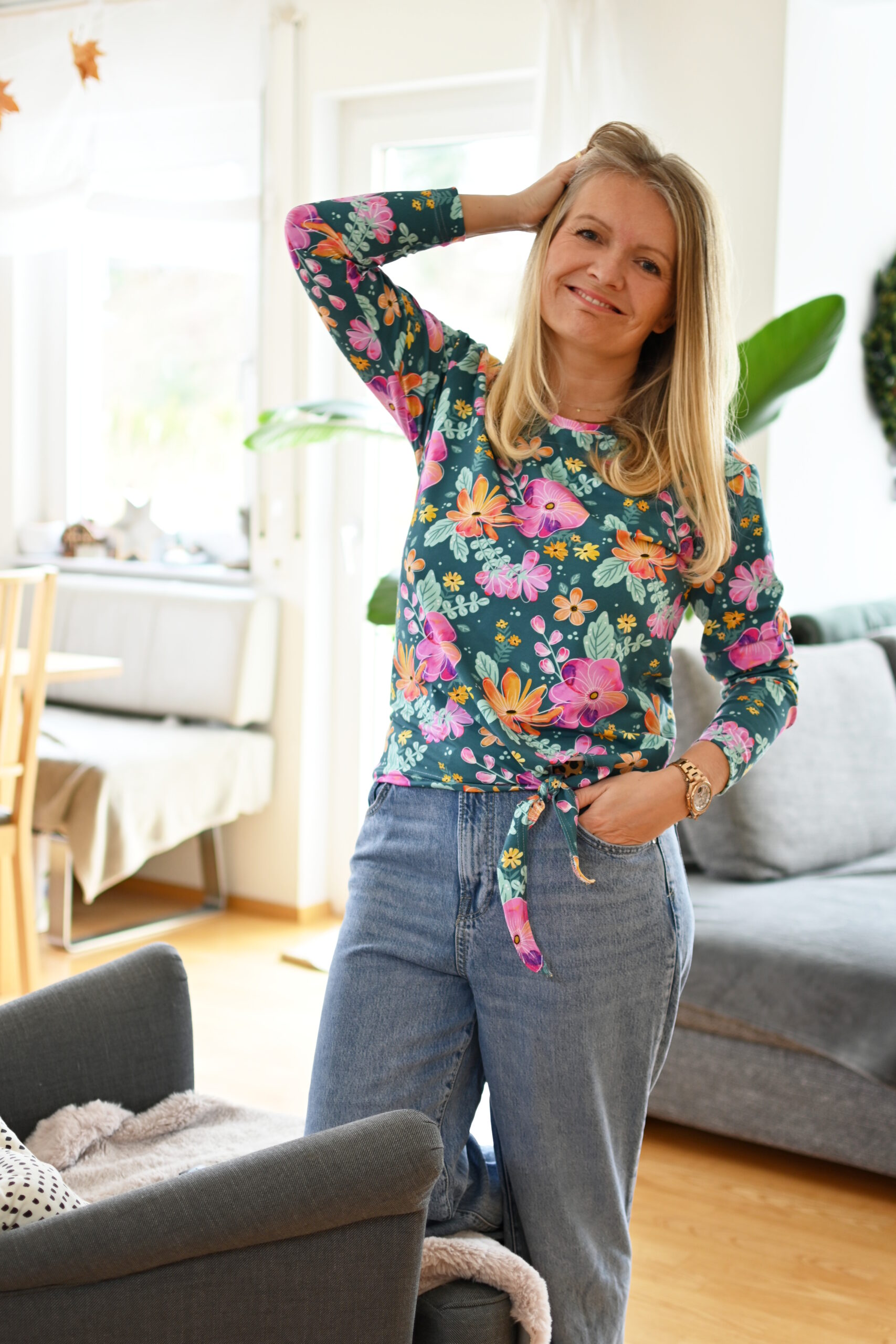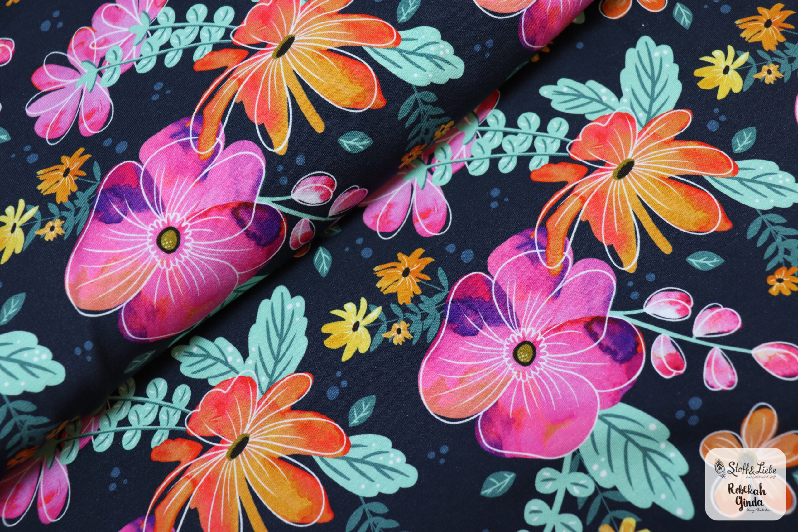 Die Blumigen Blumen bestechen durch das lebhafte Design mit einer großen Farbvielfalt. Dieser Stoff ist nicht nur ein echter Blickfang, sondern verleiht jedem Kleidungsstück und Accessoire eine fröhliche Note. Die Einsatzmöglichkeiten sind vielfältig und inspirierend: Shirts, Röcke, leichte Jacken, Hosen, Kleider hier ist wieder alles möglich. Kombiniert mit Unistoffen lassen sich hier ganze Outfits nähen, die immer wieder neu zusammen gestellt werden können. Habt Ihr Ideen, was bei Euch daraus werden könnte?