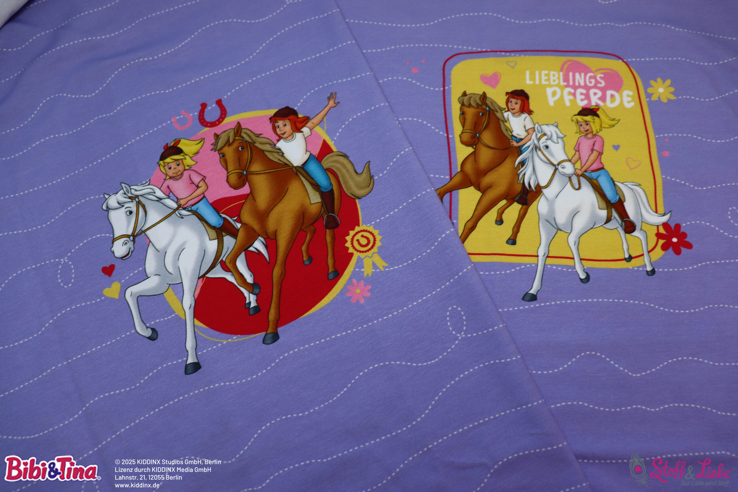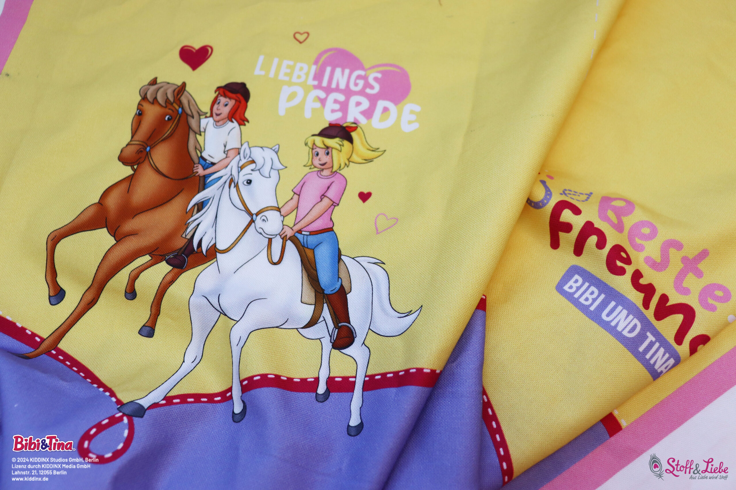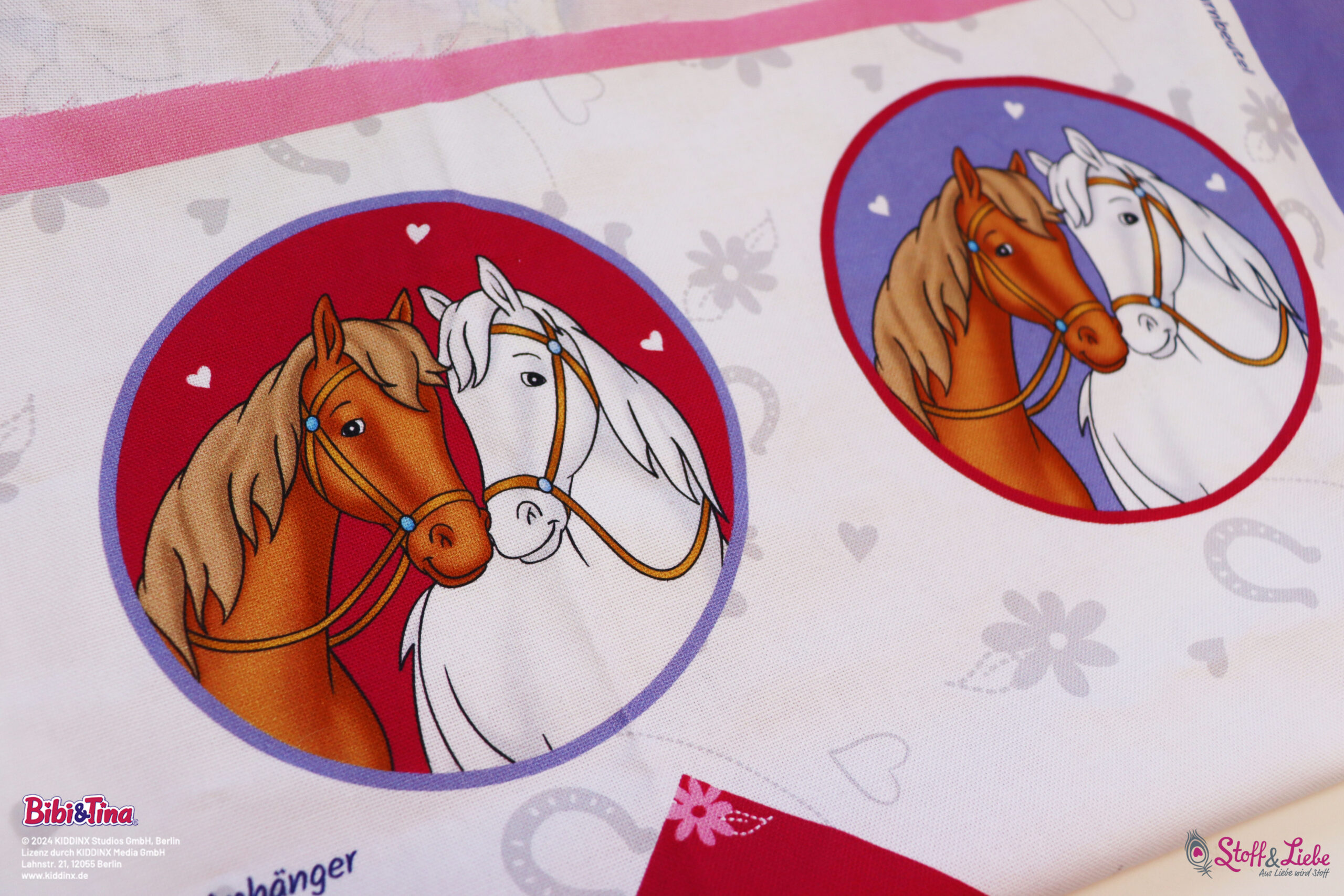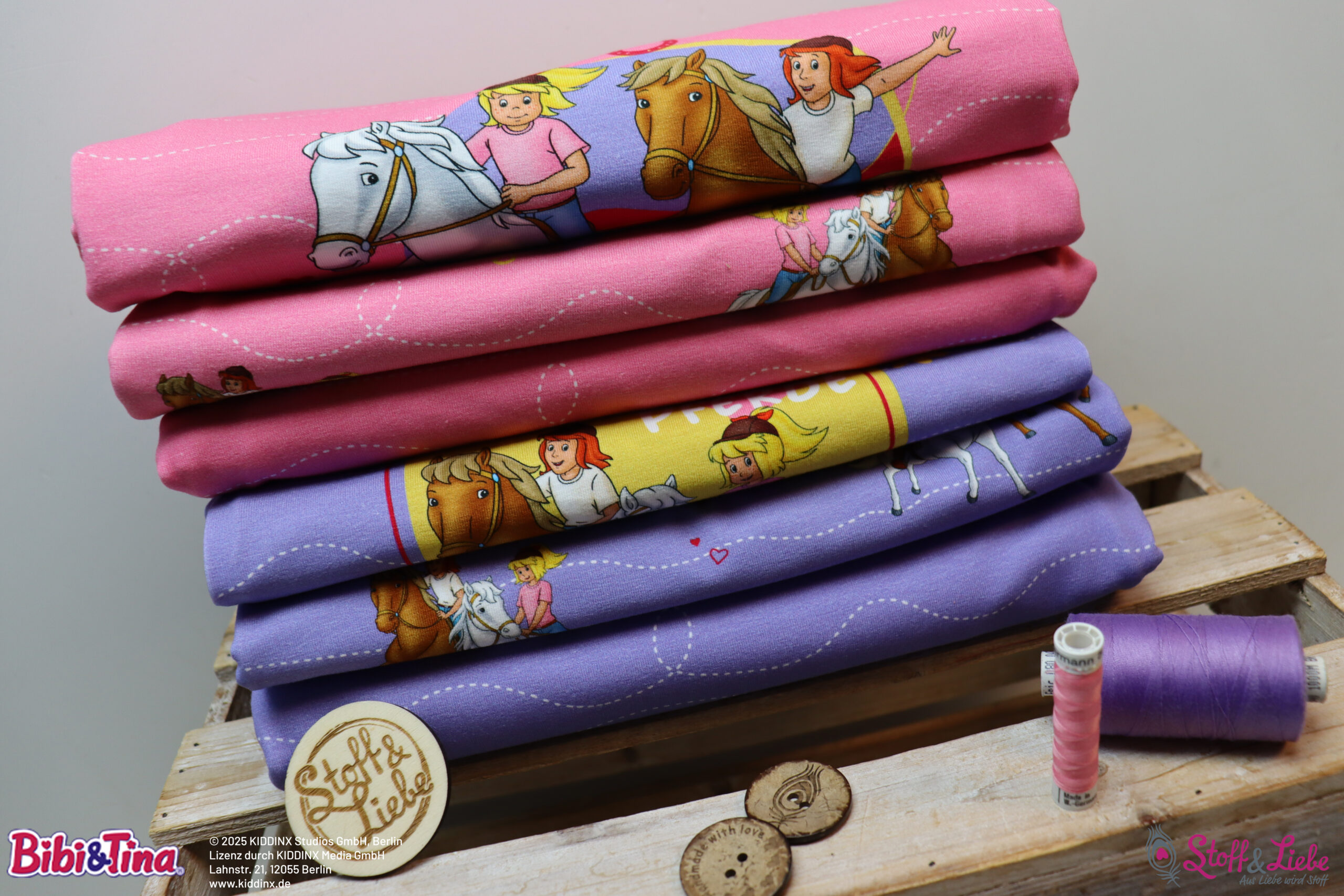 Auf geht es in neues Abenteuer mit Bibi & Tina. Und für viele Eurer Kids startet nach dem Sommer das Abenteuer Schule. Warum also nicht diese beiden Themen verbinden? Wichtig dabei war uns, dass die Stoffe (vor allem auf Jersey) ganzjährig tragbar sind. Wir glauben, uns ist hier eine gute Mischung gelungen. Aber seht selbst! Hier sind Bibi & Tina und ihre Lieblingspferde!
