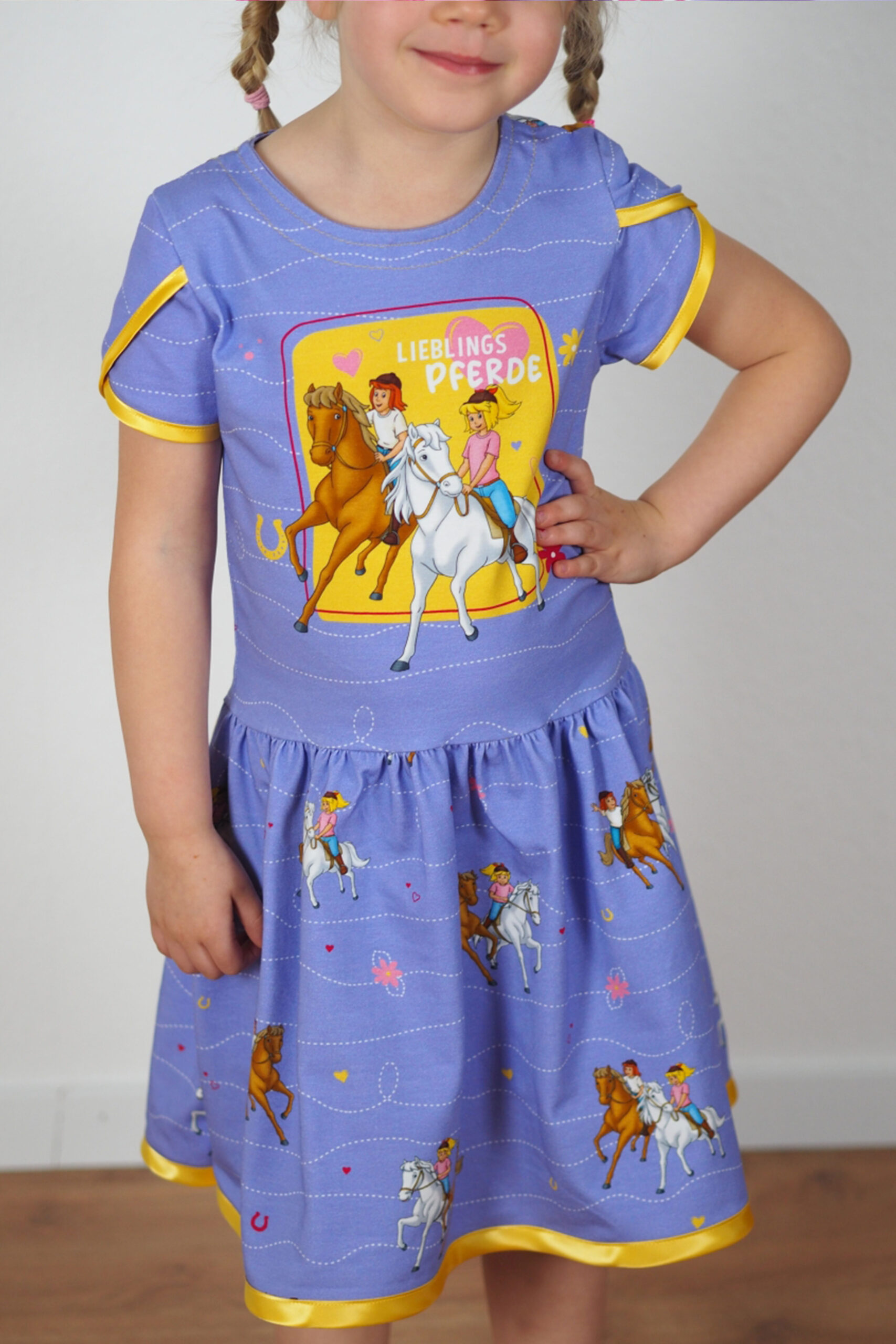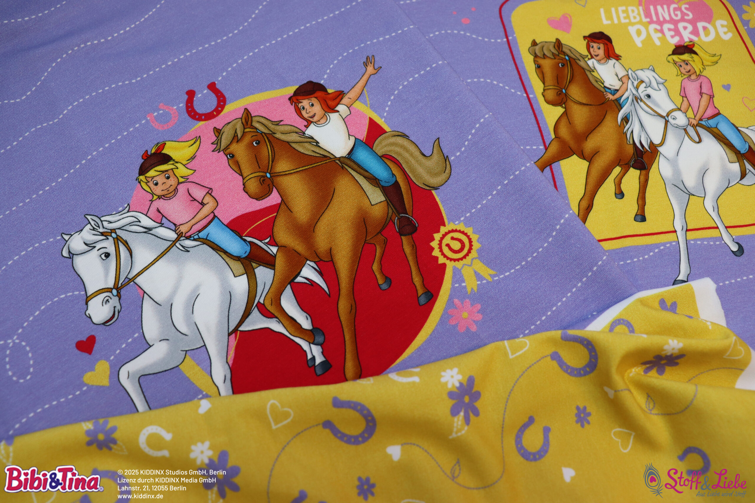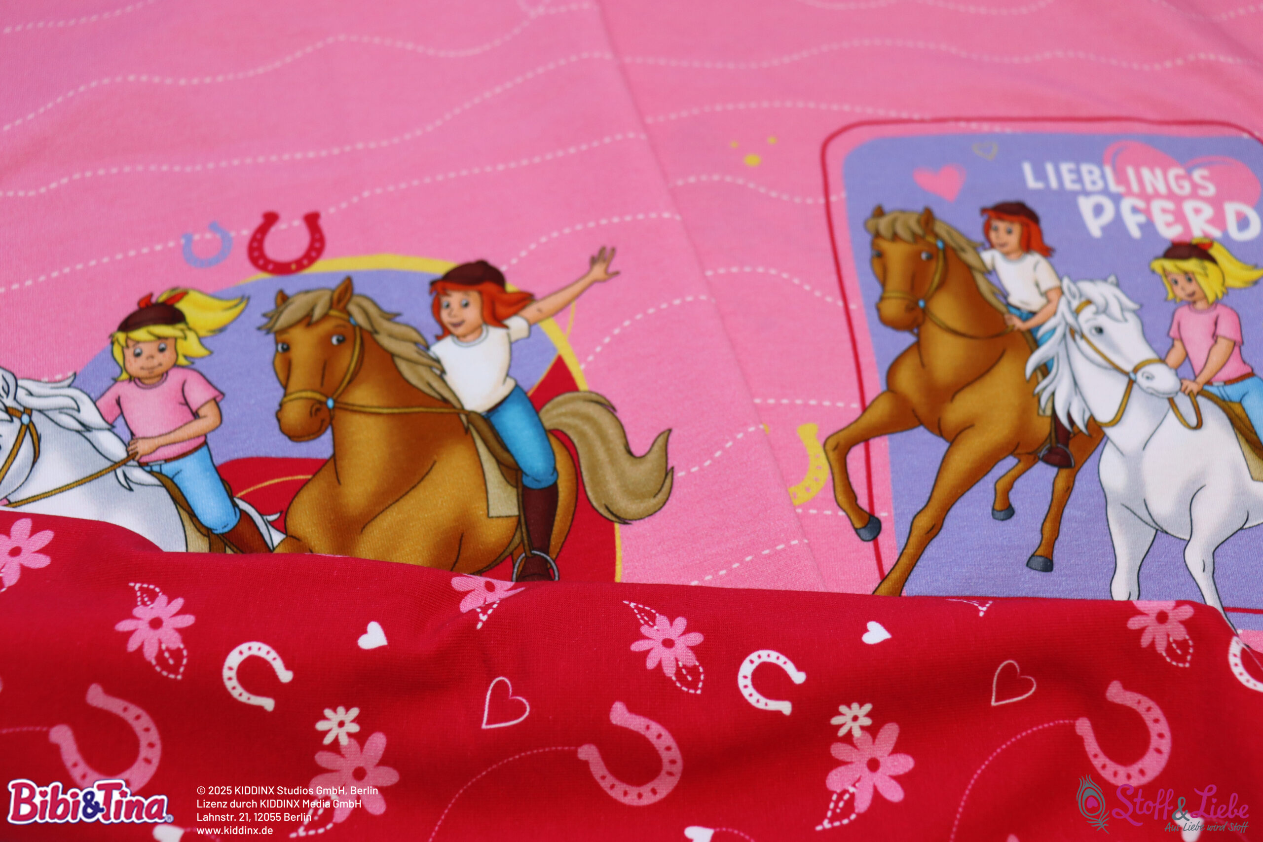 Auf geht es in neues Abenteuer mit Bibi & Tina. Und für viele Eurer Kids startet nach dem Sommer das Abenteuer Schule. Warum also nicht diese beiden Themen verbinden? Wichtig dabei war uns, dass die Stoffe (vor allem auf Jersey) ganzjährig tragbar sind. Wir glauben, uns ist hier eine gute Mischung gelungen. Aber seht selbst! Hier sind Bibi & Tina und ihre Lieblingspferde!