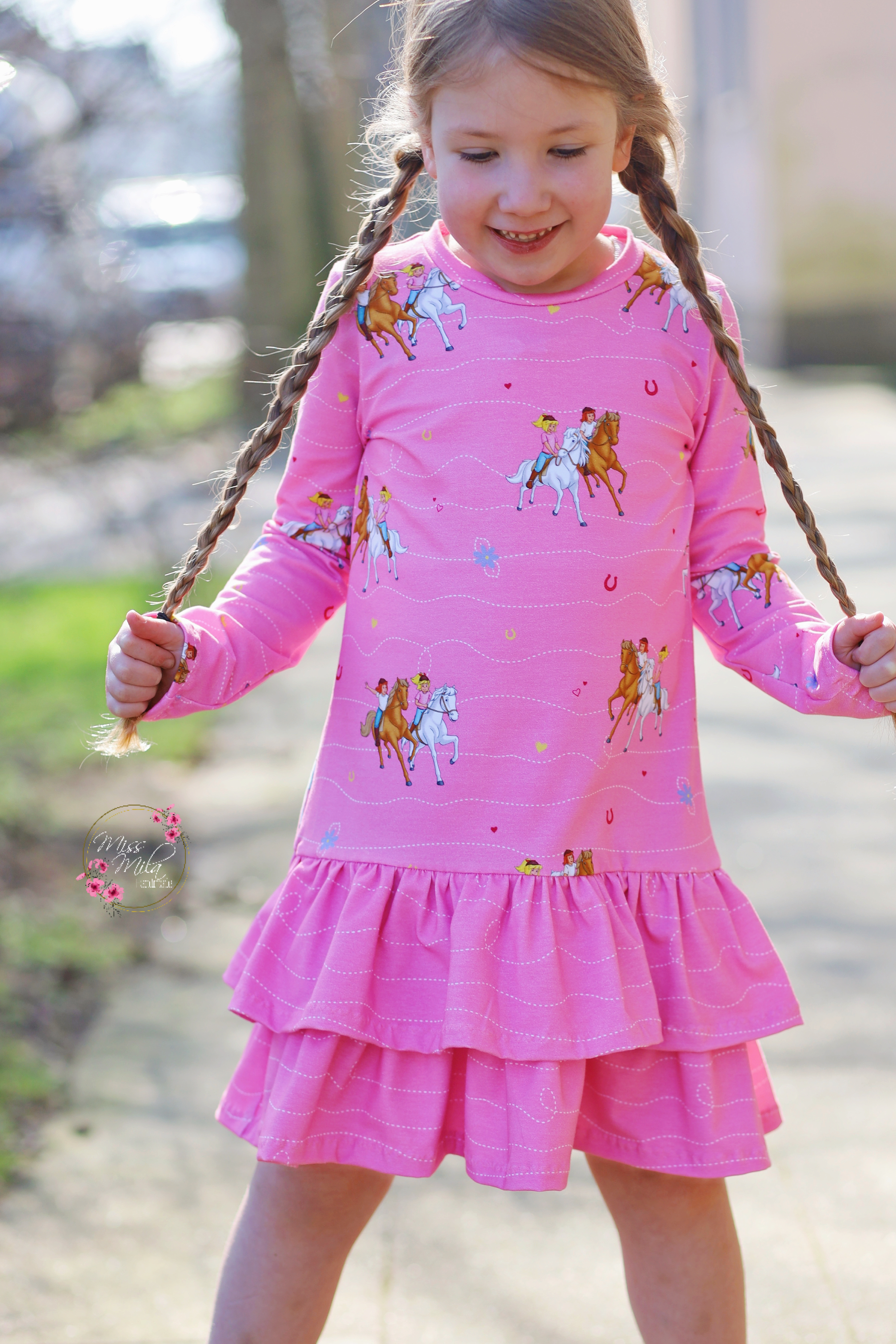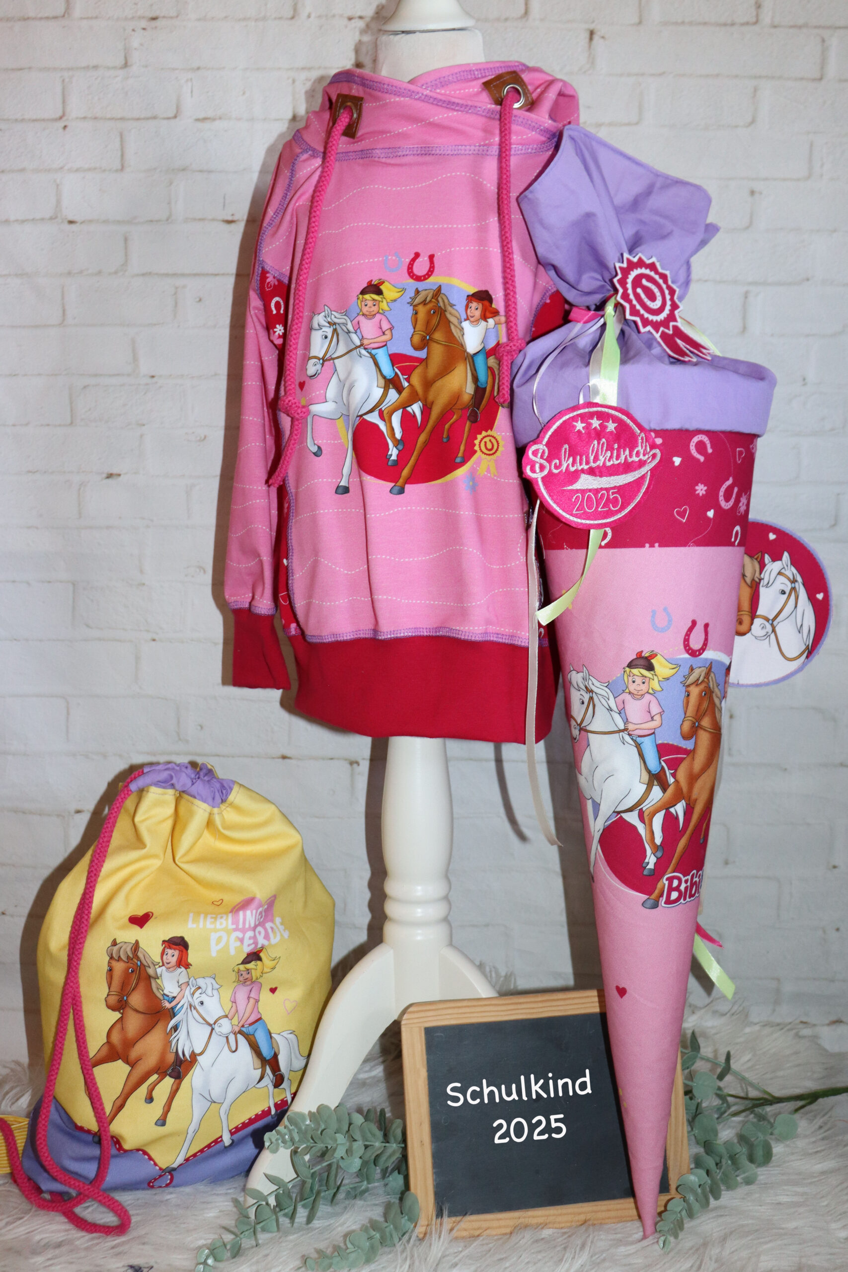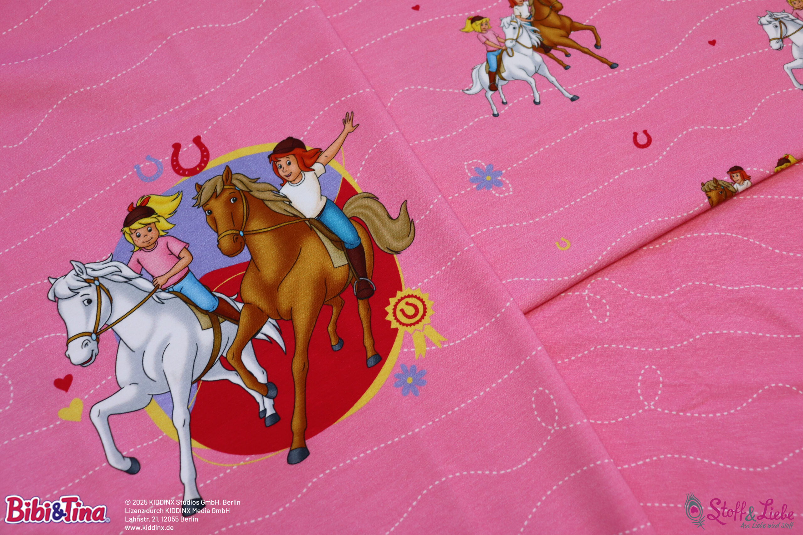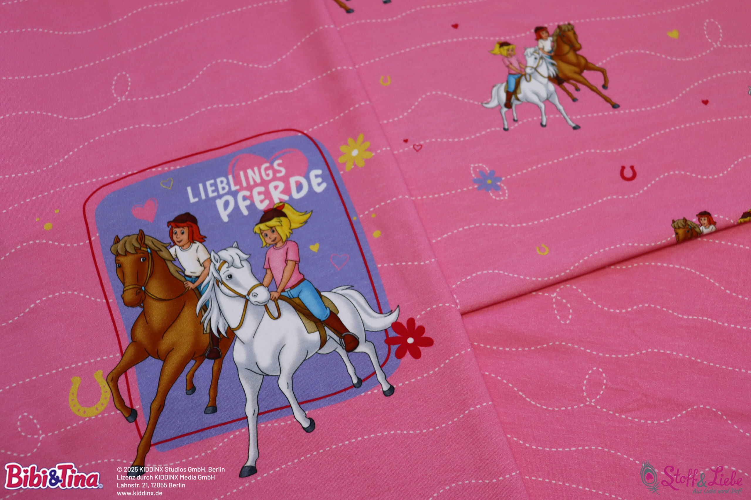 Auf geht es in neues Abenteuer mit Bibi & Tina. Und für viele Eurer Kids startet nach dem Sommer das Abenteuer Schule. Warum also nicht diese beiden Themen verbinden? Wichtig dabei war uns, dass die Stoffe (vor allem auf Jersey) ganzjährig tragbar sind. Wir glauben, uns ist hier eine gute Mischung gelungen. Aber seht selbst! Hier sind Bibi & Tina und ihre Lieblingspferde!