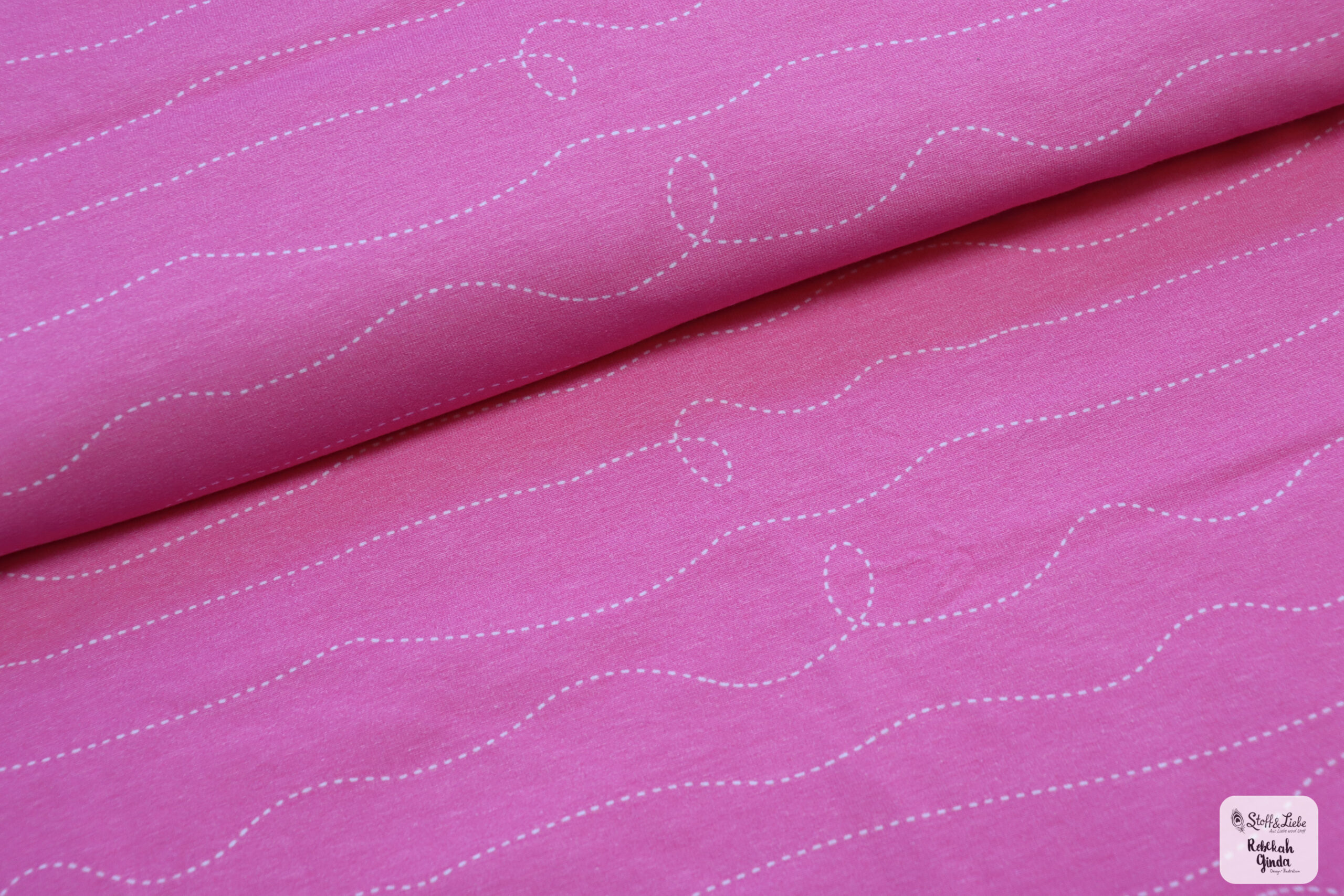 Mit den „Gestrichelt“ bekommt Ihr nicht nur einen Kombistoff, sondern den perfekt passenden Kombistoff. Ebenso wie der Allover ist er farbidentisch und vom Look her an das Panel angepasst. Ihr könnt also ganze Sets entstehen lassen und alles aufeinander abstimmen. Großartig, oder? Auch hier bekommt Ihr Rosa und Flieder.