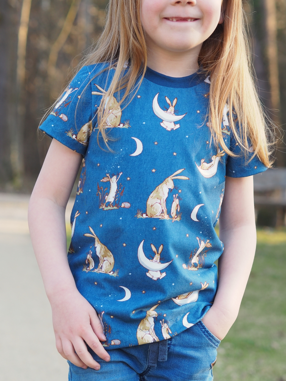 Unsere „Bis zum Mond und zurück“ Kollektion besteht aus einem Allover und Kombistoff in je zwei Farbvarianten und einem farblich passenden Panel. Die Stoffe erhaltet Ihr auf Jersey in unserer gewohnten Spitzenqualität. Die Materialzusammensetzung beträgt 95 % Baumwolle und 5 % Elasthan. Dieses Design wurde von Rebekah Ginda umgesetzt.