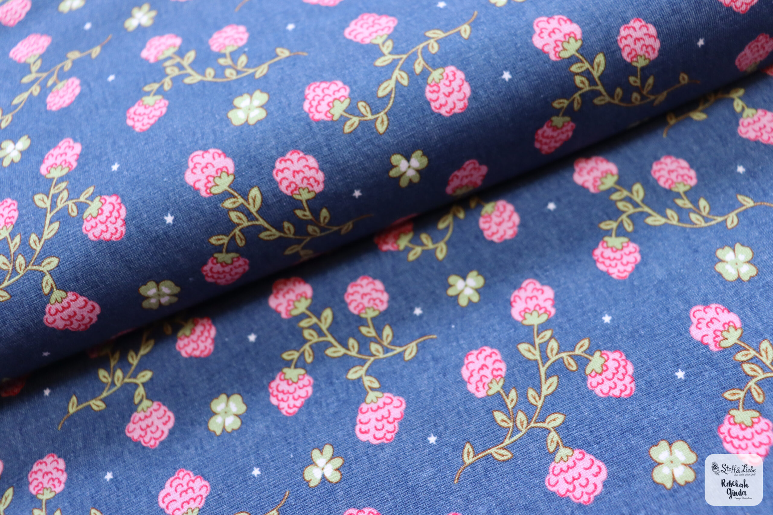 Und dann hätten wir noch die Kleeblüten. Wie perfekt kann ein Kombistoff zu einer Serie passen? Auch die Kleeblüten bekommt Ihr in zwei Farbvarianten: Denim und Creme. Hier finden sich nicht nur passend die Sternchen wieder sondern auch noch Klettblätter. Das perfekte Zusammenspiel für einen romantisch angehauchten Stoff.