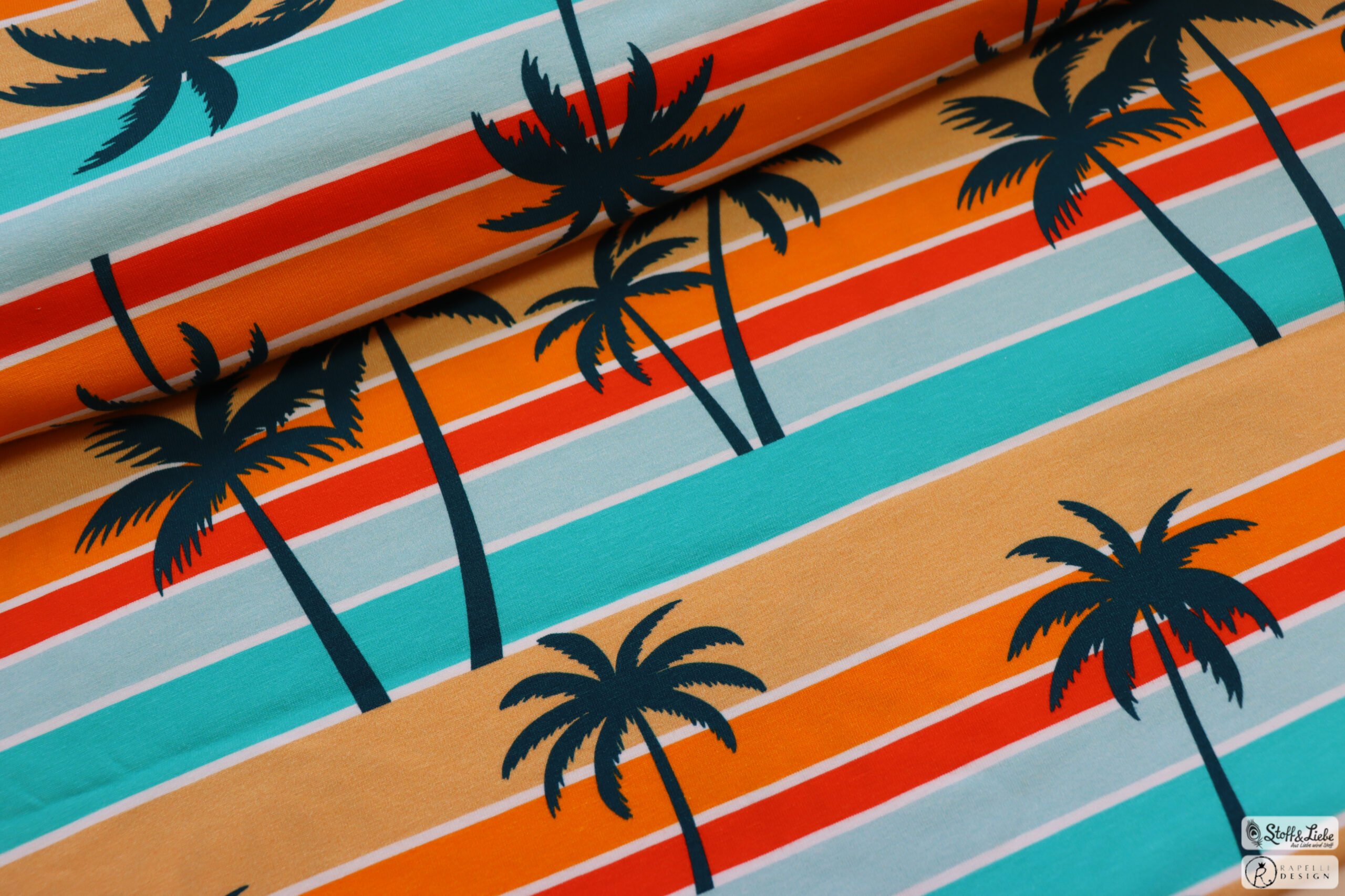 Die Palmen kennt Ihr schon von einem Maus-Design. Aber weil sie hier einfach so herrlich passen, konnten wir nicht widerstehen. Einfach der perfekte Sommerstoff in grandiosen, leuchtenden Farben.