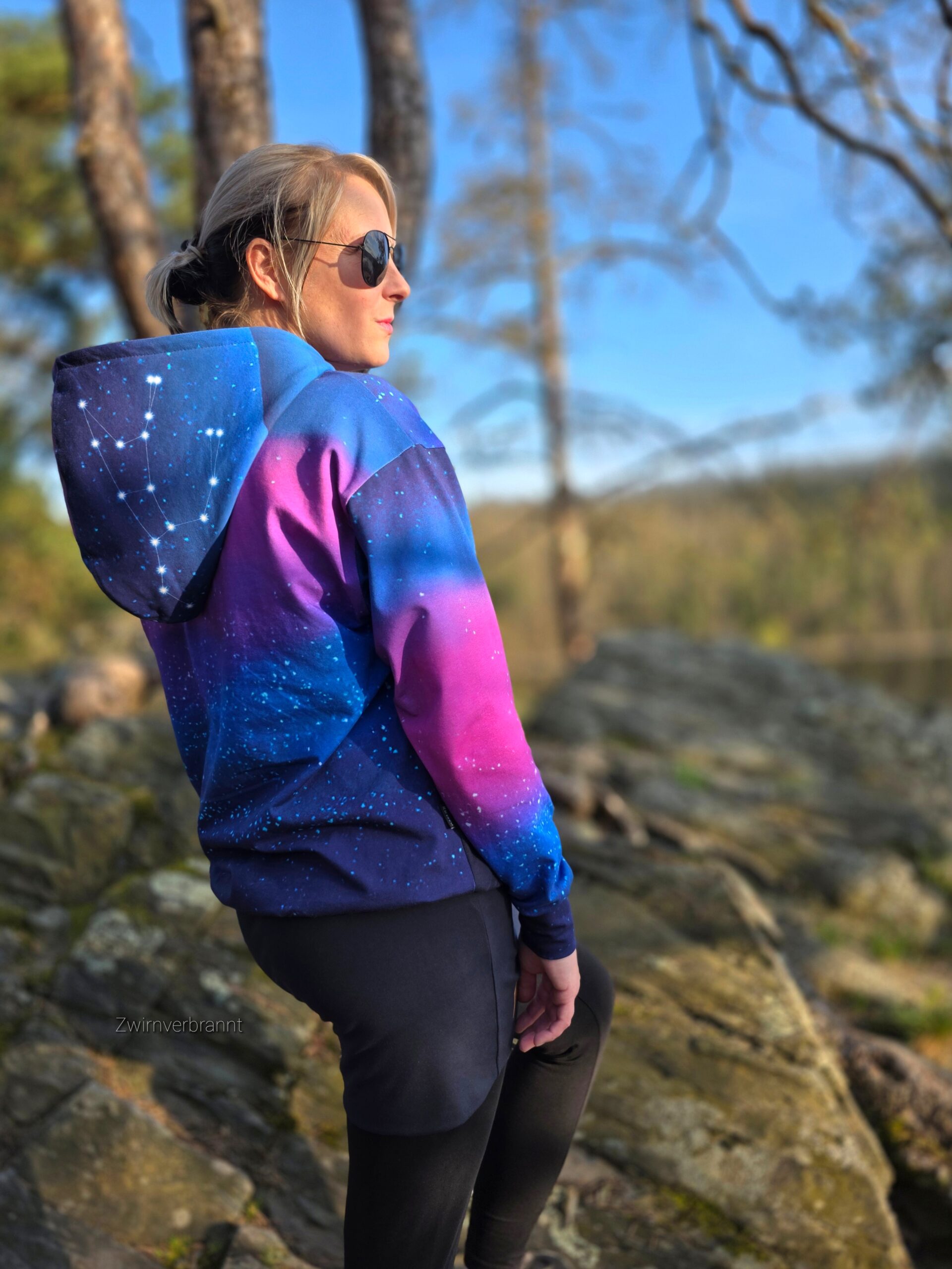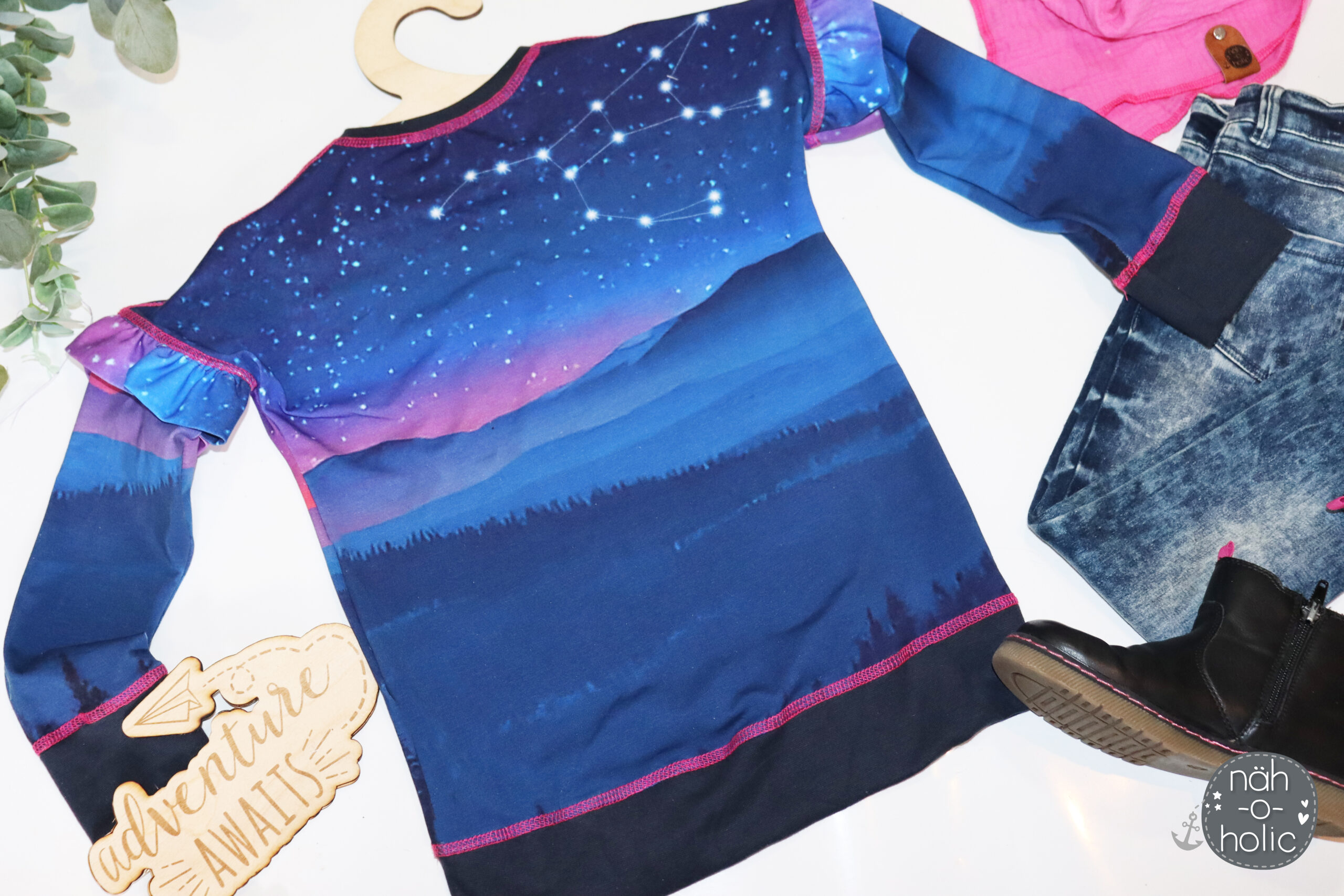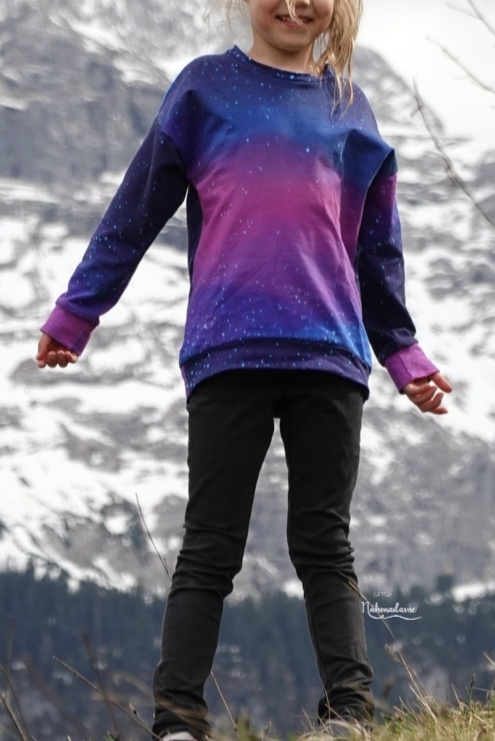 Abendhimmel ist der perfekte Kombistoff zum Panel, macht aber auch Solo so richtig was her. Schaut mal wie toll der Farbverlauf hier ist. Das Muster erstreckt sich über die volle Breite des Stoffes.