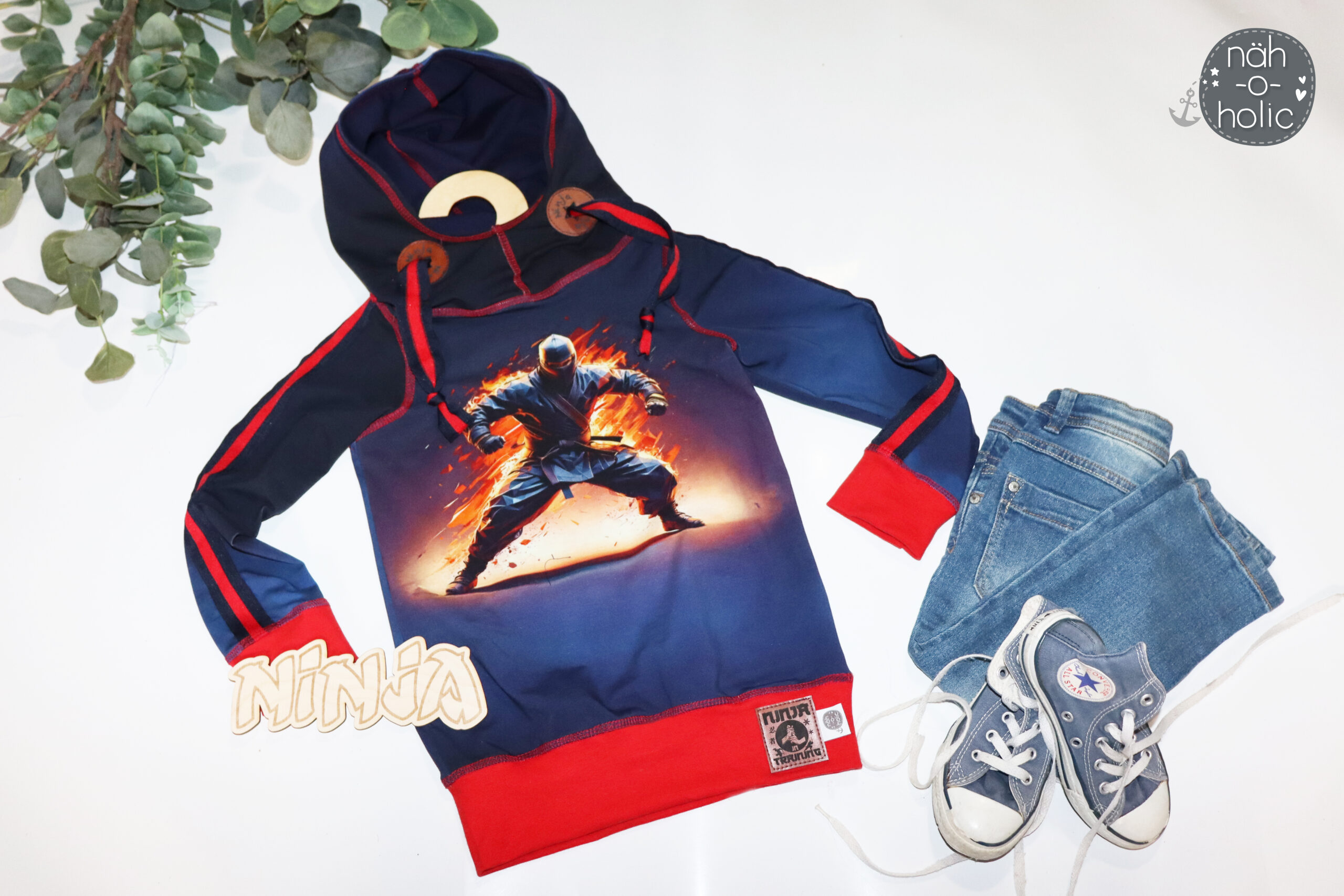 Während beim Eichhörnchen die Farben etwas heller gehalten sind, ist der Ninja umgeben von blauen Wolken. Das lässt den Stoff geheimnisvoll wirken und lädt direkt zum kreativ werden ein, oder? Hier ist wieder so viel möglich. Entweder nimmt man die dunklen Töne auf oder kombiniert mit helleren Farben um einen ganz anderen Look entstehen zu lassen. Auch beim Eichhörnchen lässt sich mit Farben spielen. Hier werdet Ihr bei unseren Pamuk Unis bestimmt fündig. Passend wäre hier z.B.