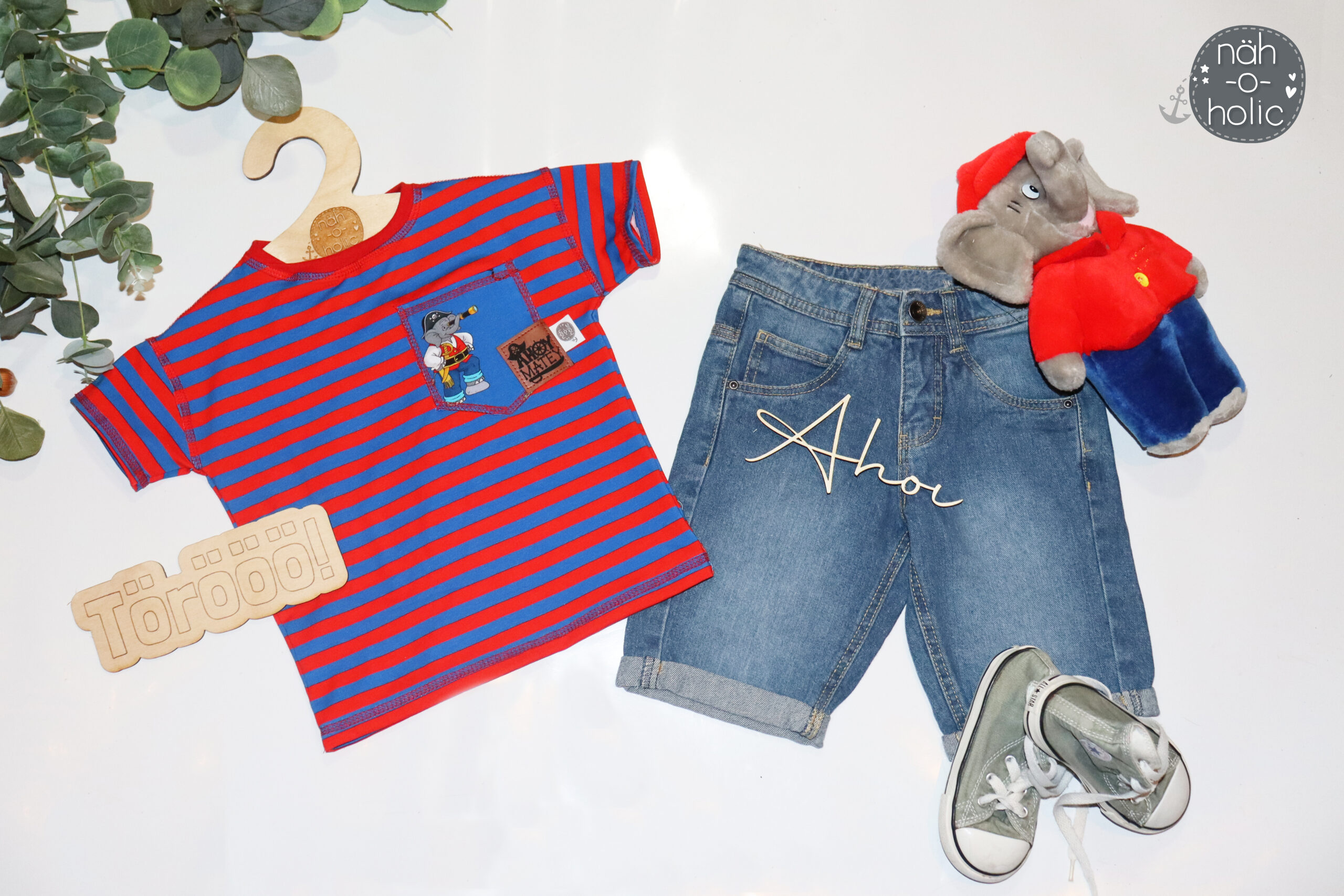 Wie Ihr schon auf dem oberen Foto sehen könnt, passen auch hier die Streifen wieder ganz prima dazu. Denn die Farben sind auch hier im Panel enthalten, sind ja schließlich Benjamins Farben.