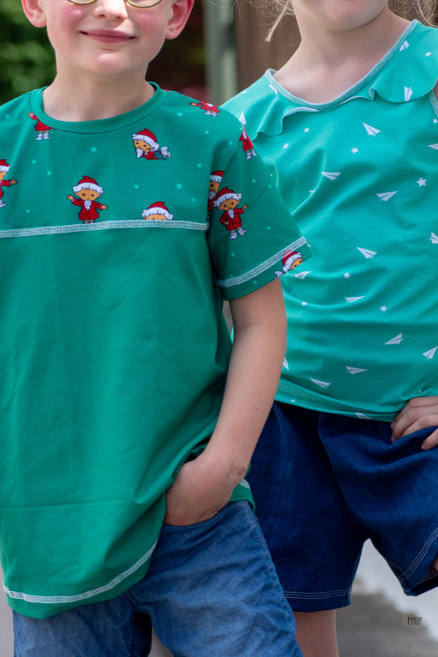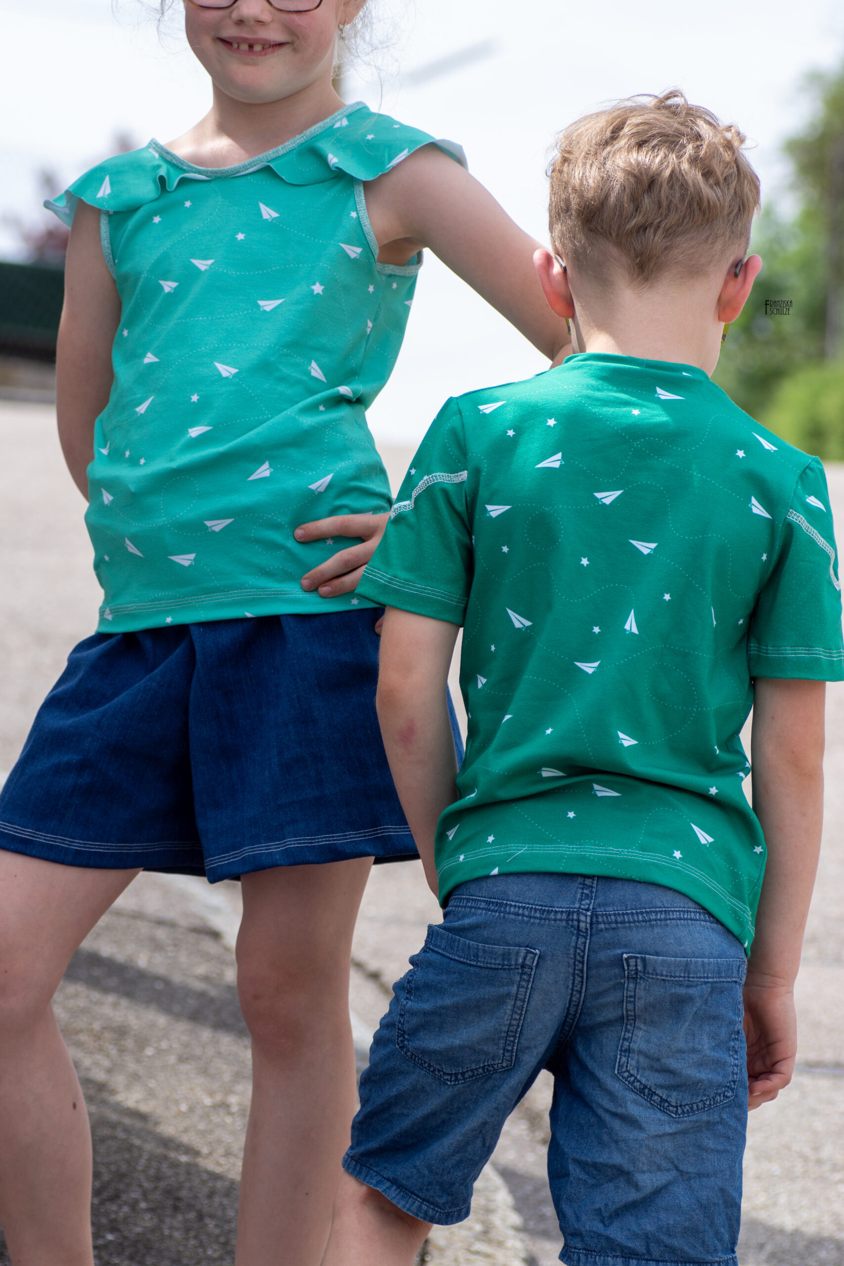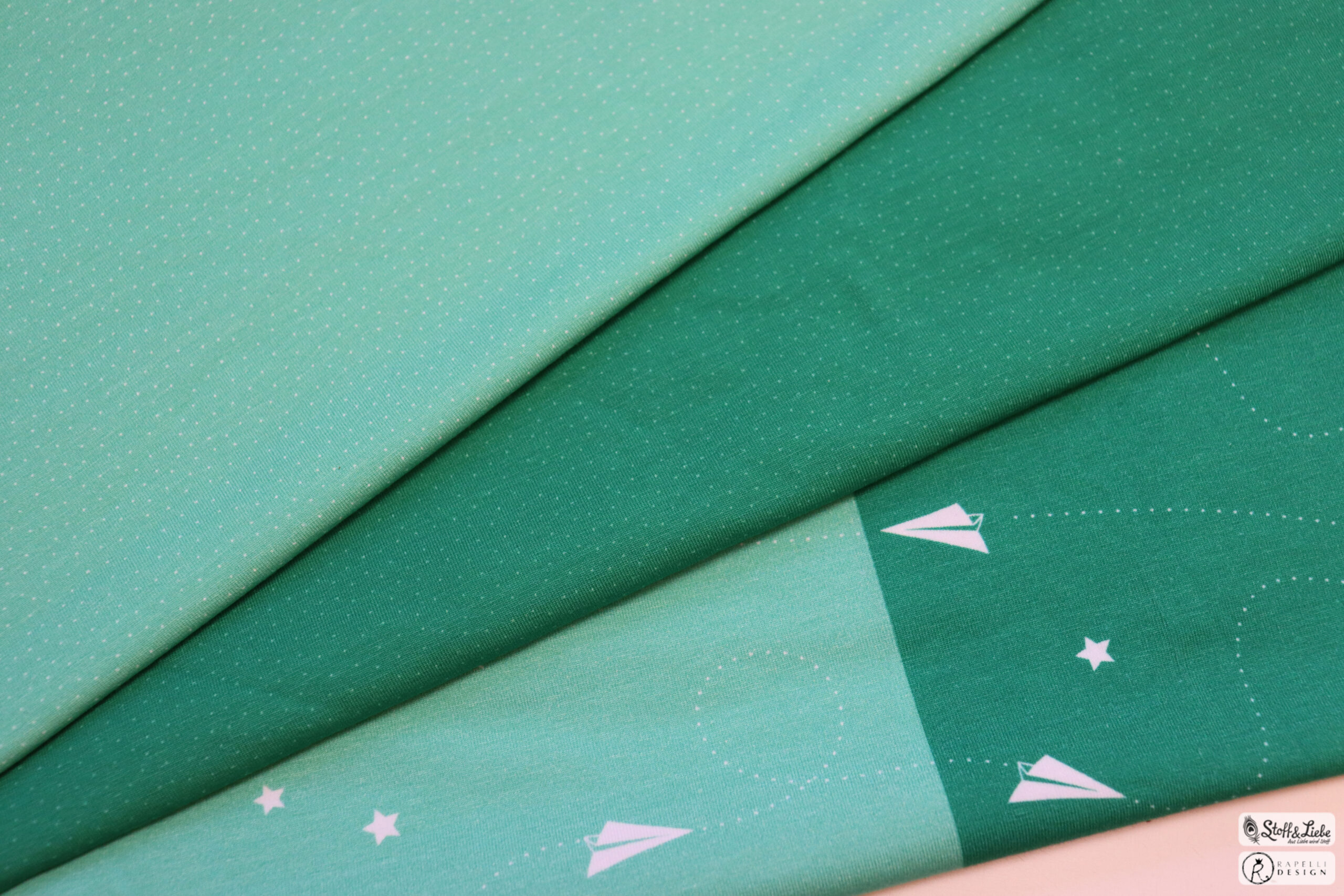 Der Kombistoff „Papierflieger“ ist zweigeteilt angelegt. Ihr bekommt also direkt beide Farbvarianten auf einmal und habt damit jede Menge Möglichkeiten.