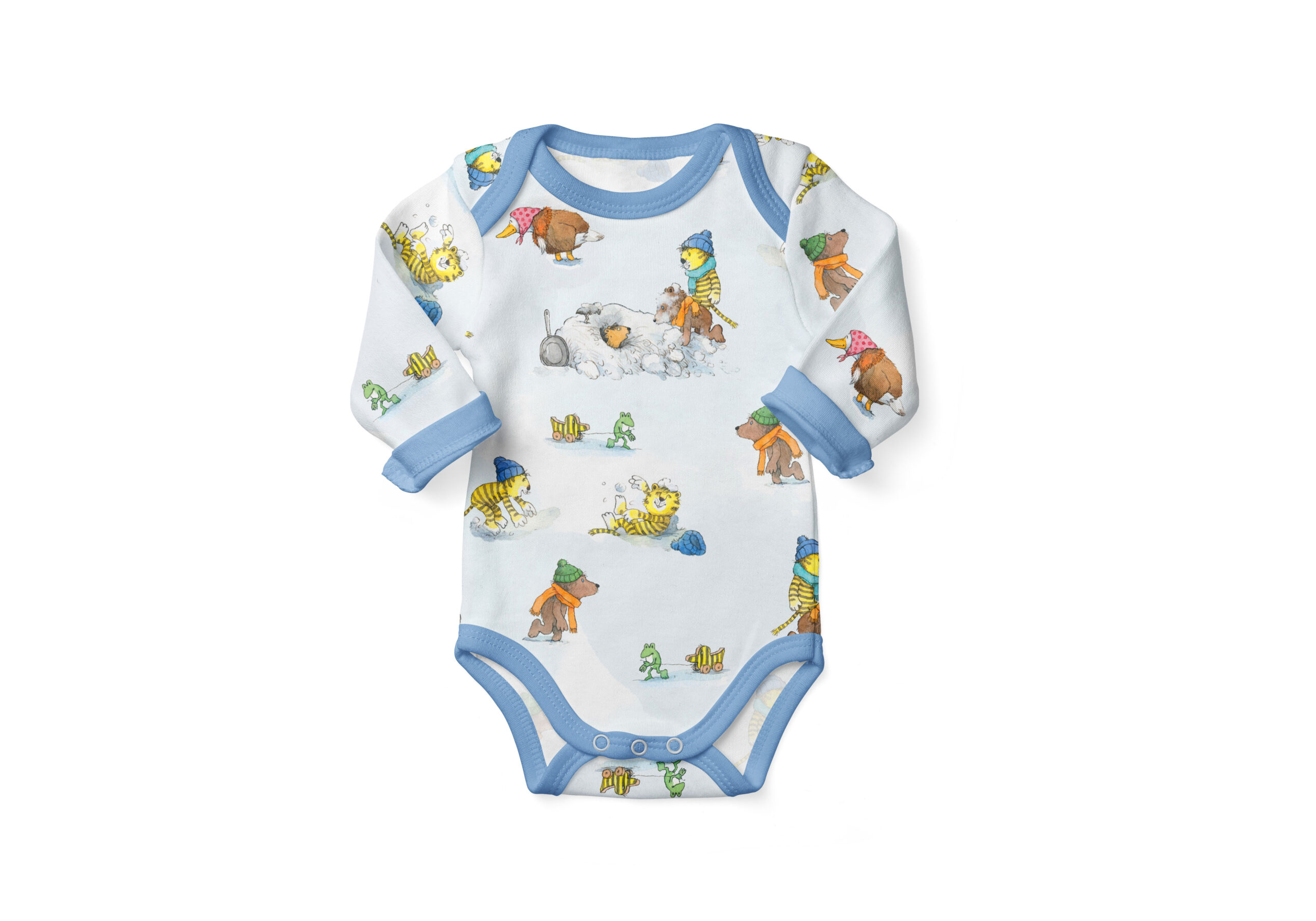 Der Allover erzählt Dir eine Wintergeschichte. Ach, wie herrlich toben Tiger, Bär und ihre Freunde durch den Schnee. Durch die enthaltenen Farben stehen Dir hier wieder alle Möglichkeiten offen, den Allover zu vernähen. Wie wäre es mit einem kuscheligen Pulli? Einer gemütlichen Hose oder einer warmen Mütze?