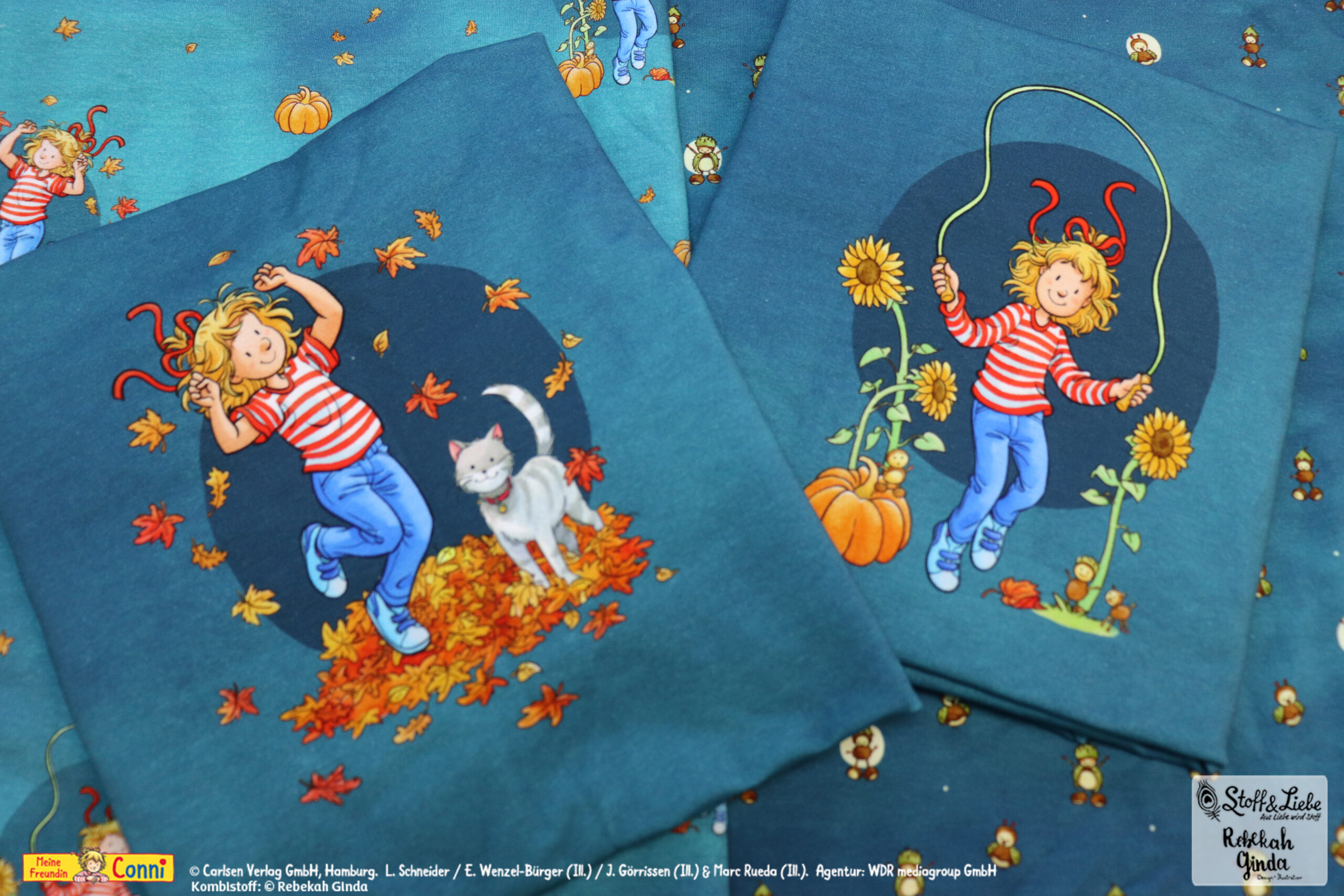 Außerdem gehört ein Allover zu dieser Kollektion. „Conni – Ein Herbst voller Kastanien“ . Hier findet Ihr die Motive des Panels wieder.