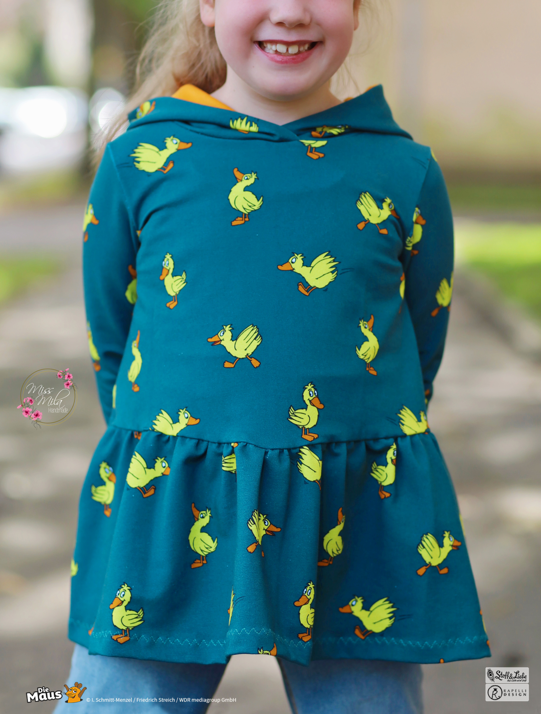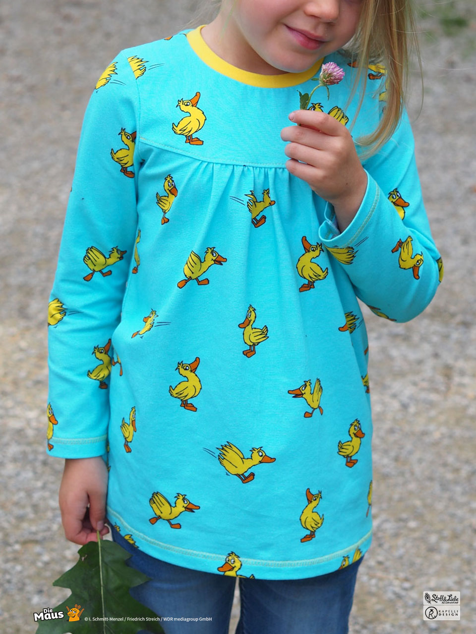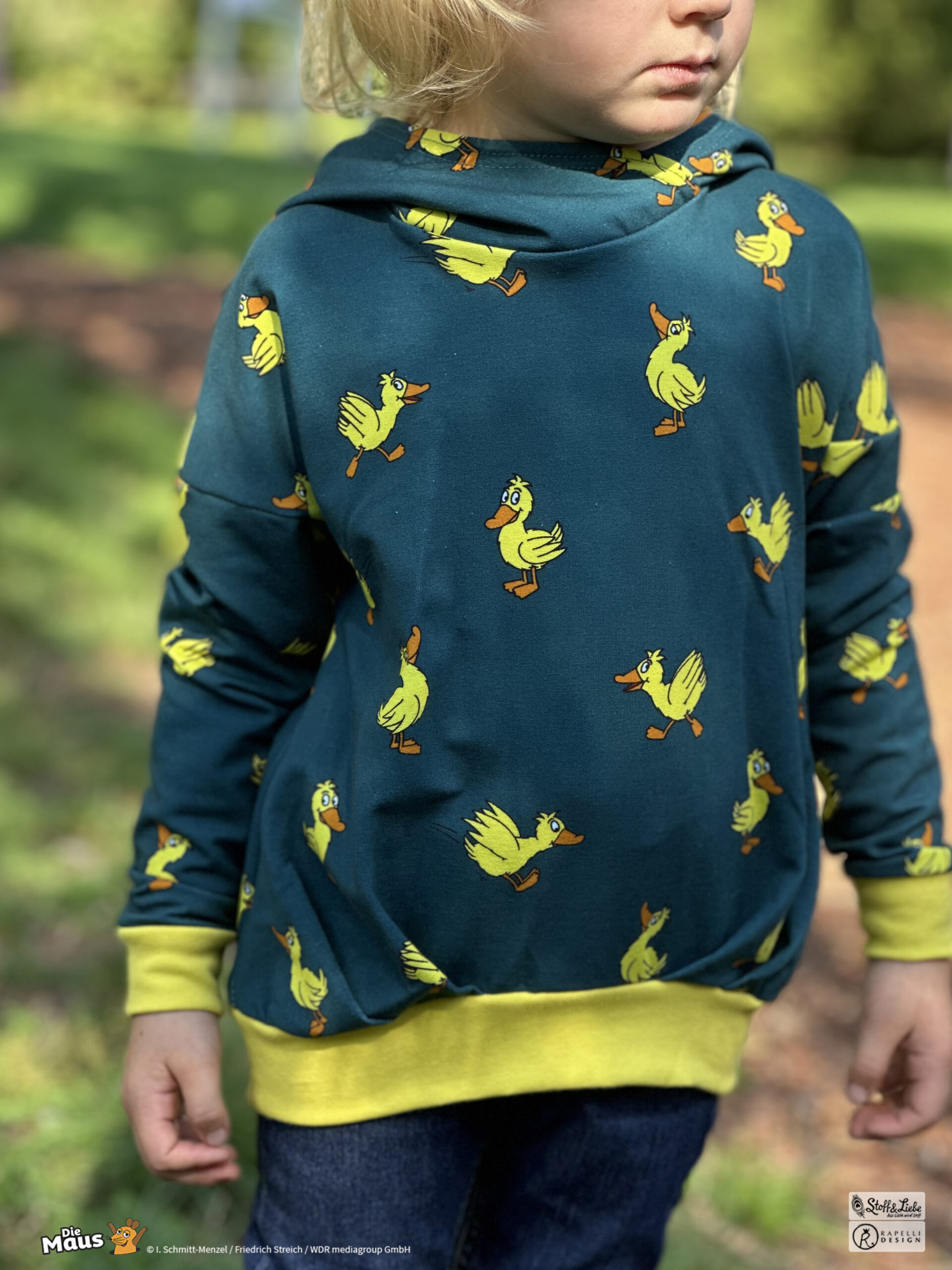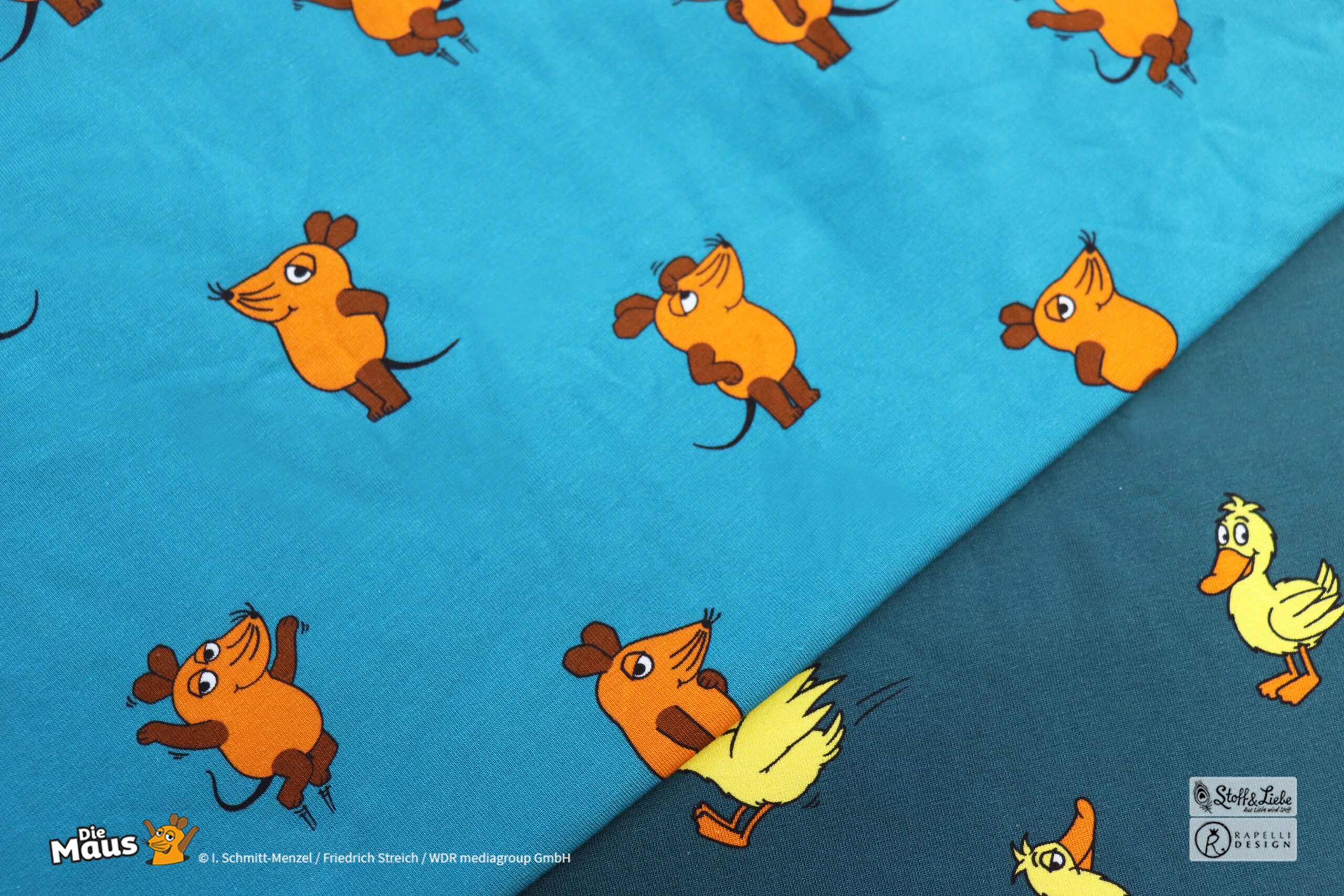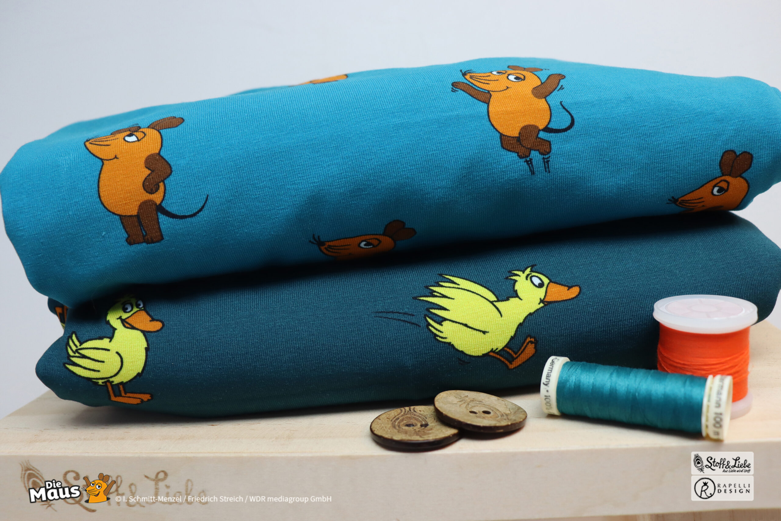 Auf French Terry erhaltet Ihr die Maus auf Petrol und die Ente auf Dunkelpetrol.