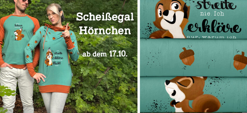 Wusstet Ihr eigentlich, dass Eichhörnchen gar nicht so gerne Eicheln essen? Und dass „Eich“ gar nicht von Eicheln kommt, sondern von dem altdeutschen Wort „aig“? Was so viel bedeutet wie flink oder sich schnell bewegen. Aber zurück zu den Eicheln. Die kleinen Flitzer nagen daran und spielen damit und essen sie nur im Notfall. Denn Eicheln in großen Mengen verursachen durch die enthaltenen Bitterstoffe bei den kleinen Flitzern Bauchweh. Viel lieber essen sie Haselnüsse, Esskastanien oder auch Sonnenblumenkerne. Weil aber Eicheln auf Stoff viiiiiiel schöner aussehen als andere Nüsse, ist uns das heute „scheißegal“. Hier ist unser Scheißegal Hörnchen. Ein bisschen frech, ein bisschen forsch und dabei einfach zuckersüß.