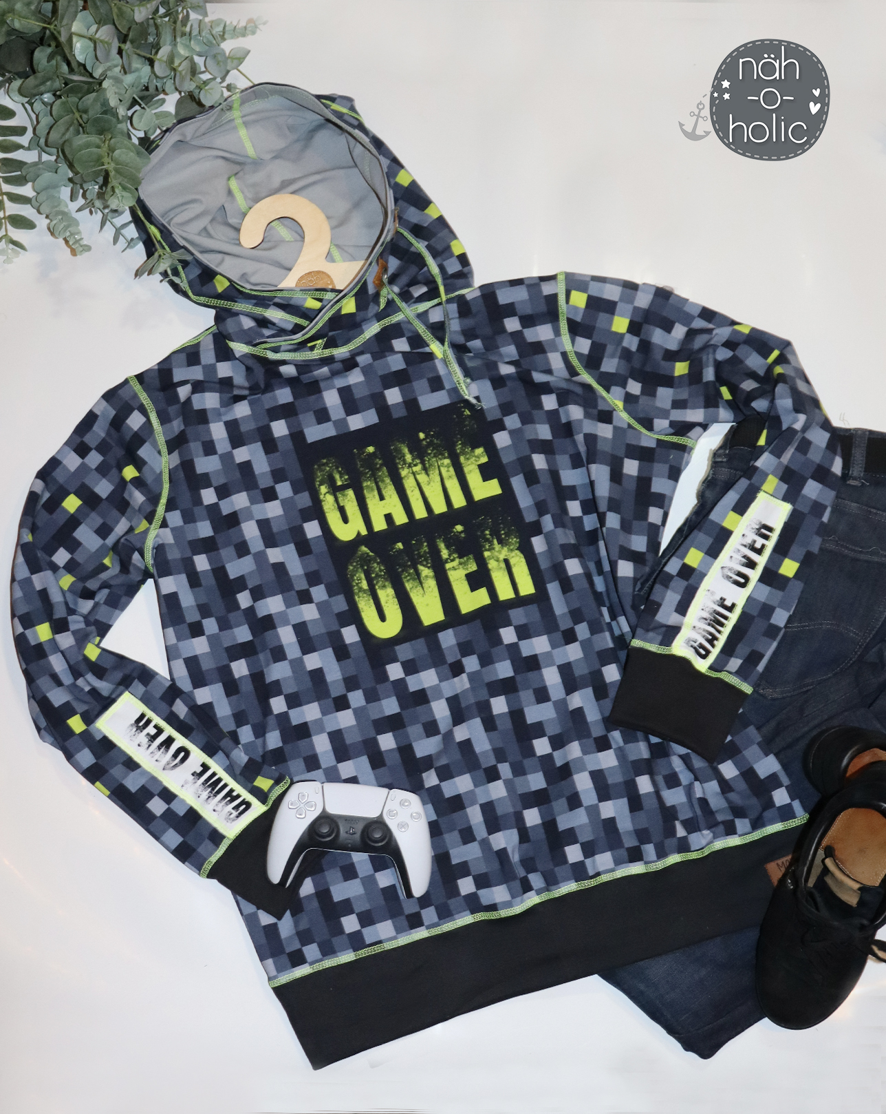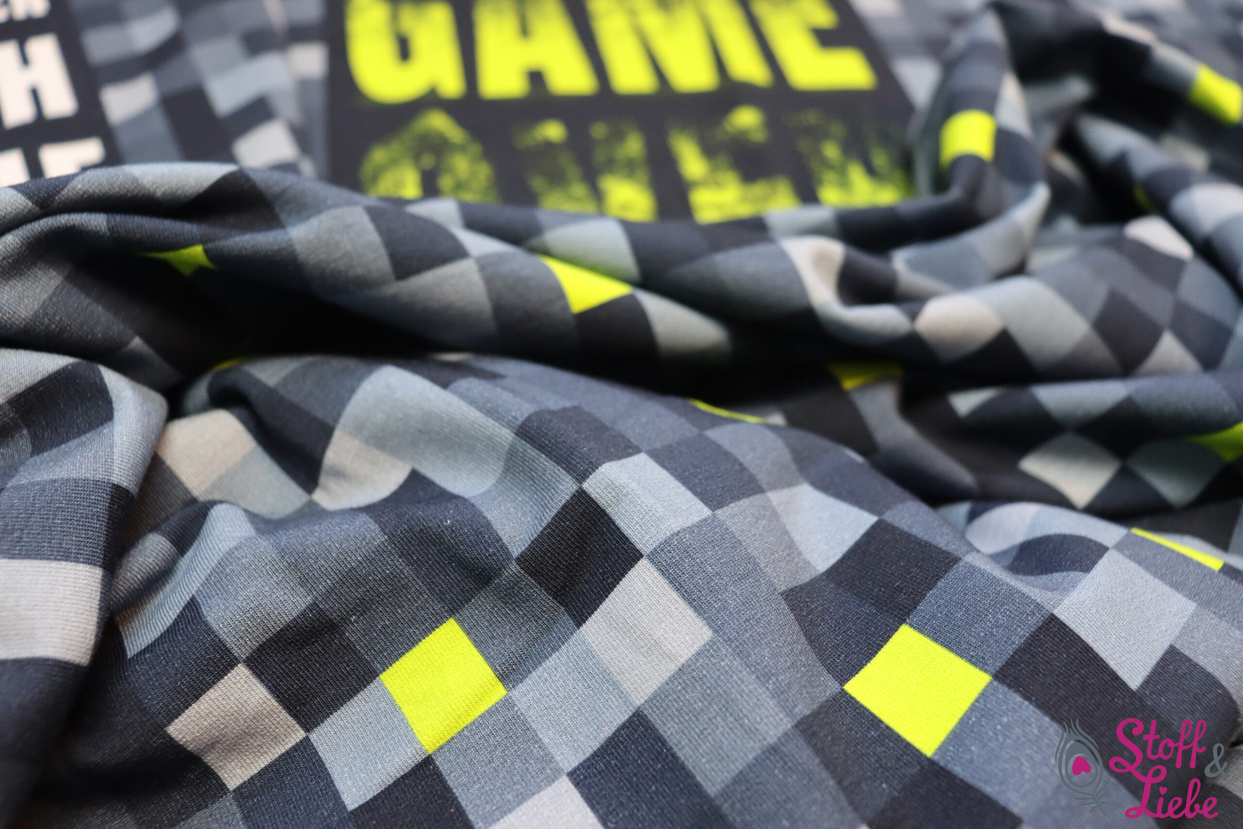 Der Allover ist natürlich passend zum Panel gestaltet. Aufgelockert wird hier durch gelbe eingestreute gelbe Pixel.