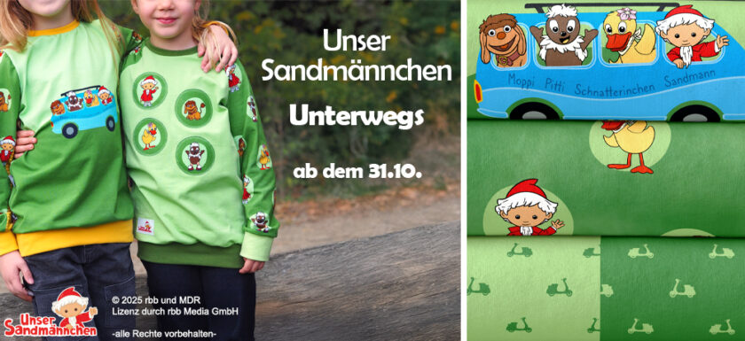 Da ist es endlich wieder! Unser Sandmännchen! Wunderschöne, zarte Farben und fröhliche Motive machen diese Kollektion aus. Absolut alltagstauglich gestaltet und somit eine tolle Grundlage für vielerlei Nähprojekte. Ihr habt doch bestimmt direkt ein paar Nähideen im Kopf, oder? Hier ist unser Sandmännchen – Unterwegs!