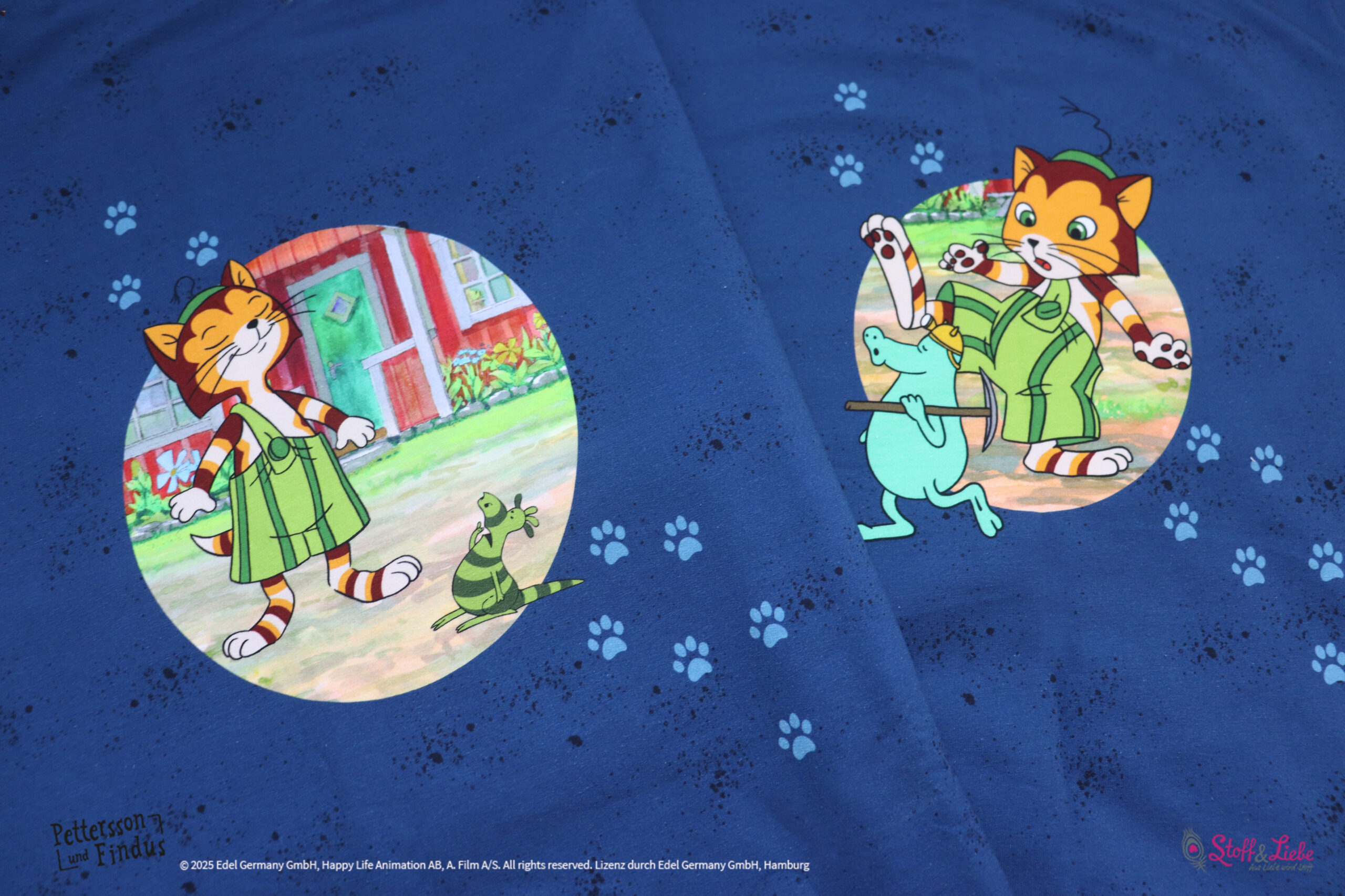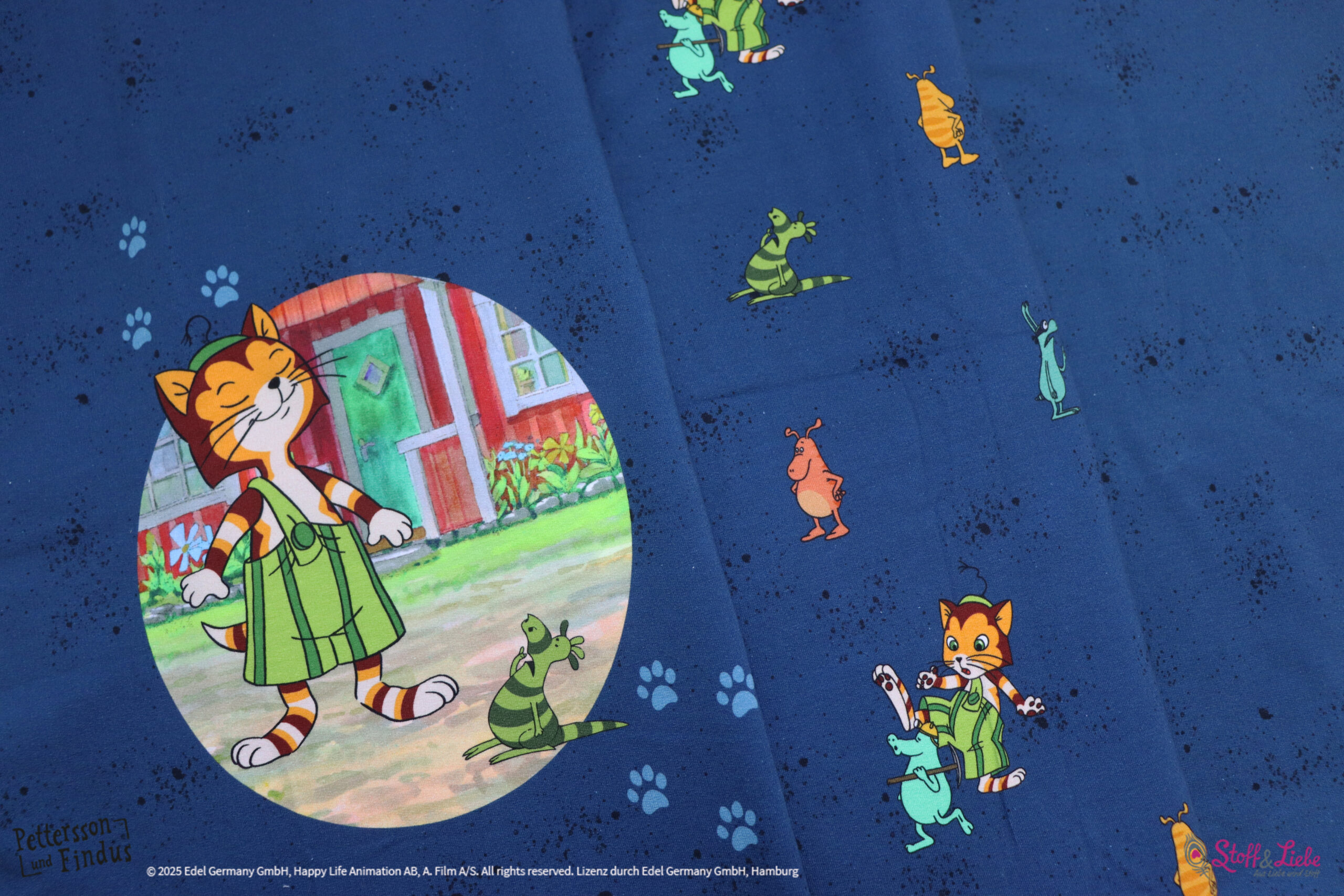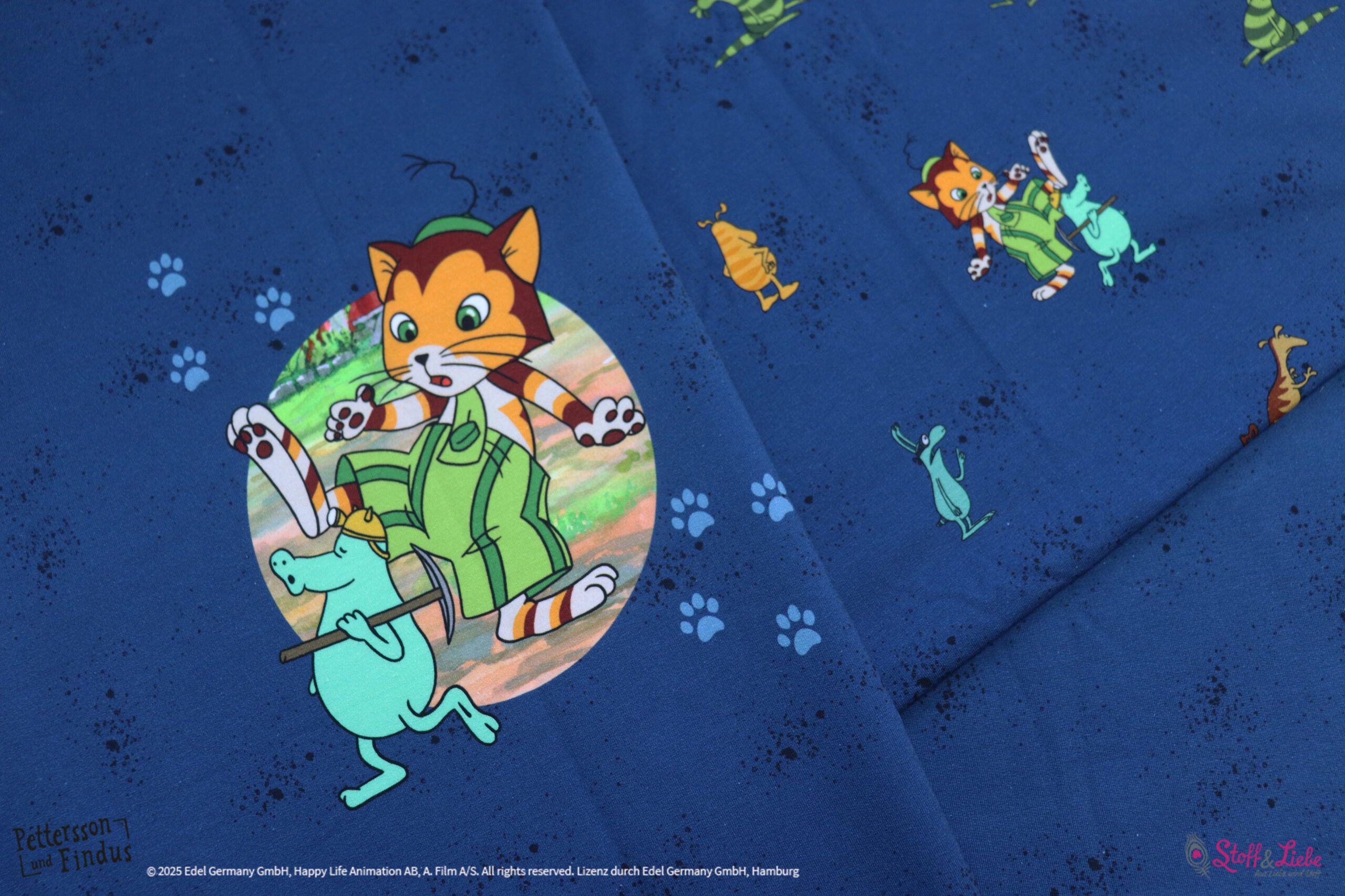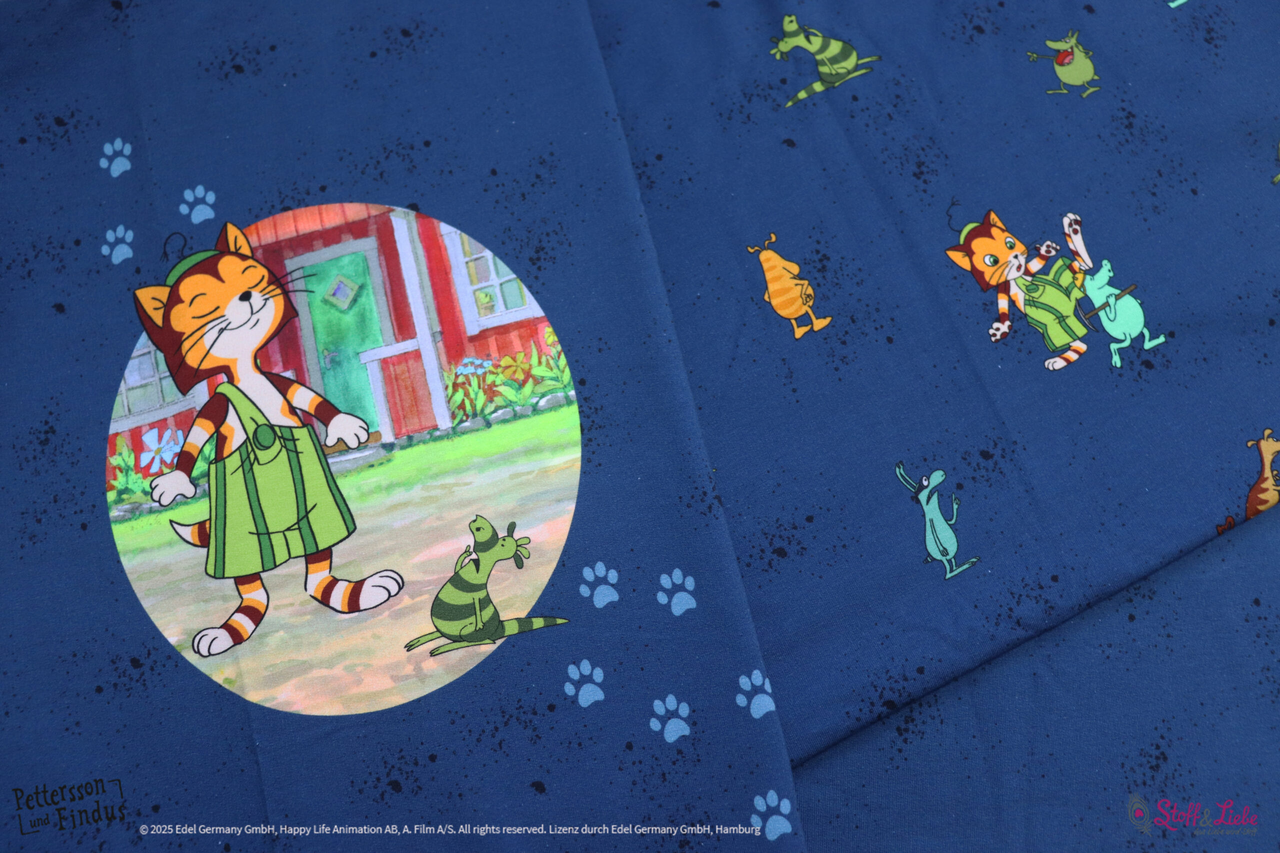 Der Allover „Findus trifft die Mucklas“ lädt, wie auch schon die älteren Kollektionen, zum Entdecken und Geschichten erzählen ein.