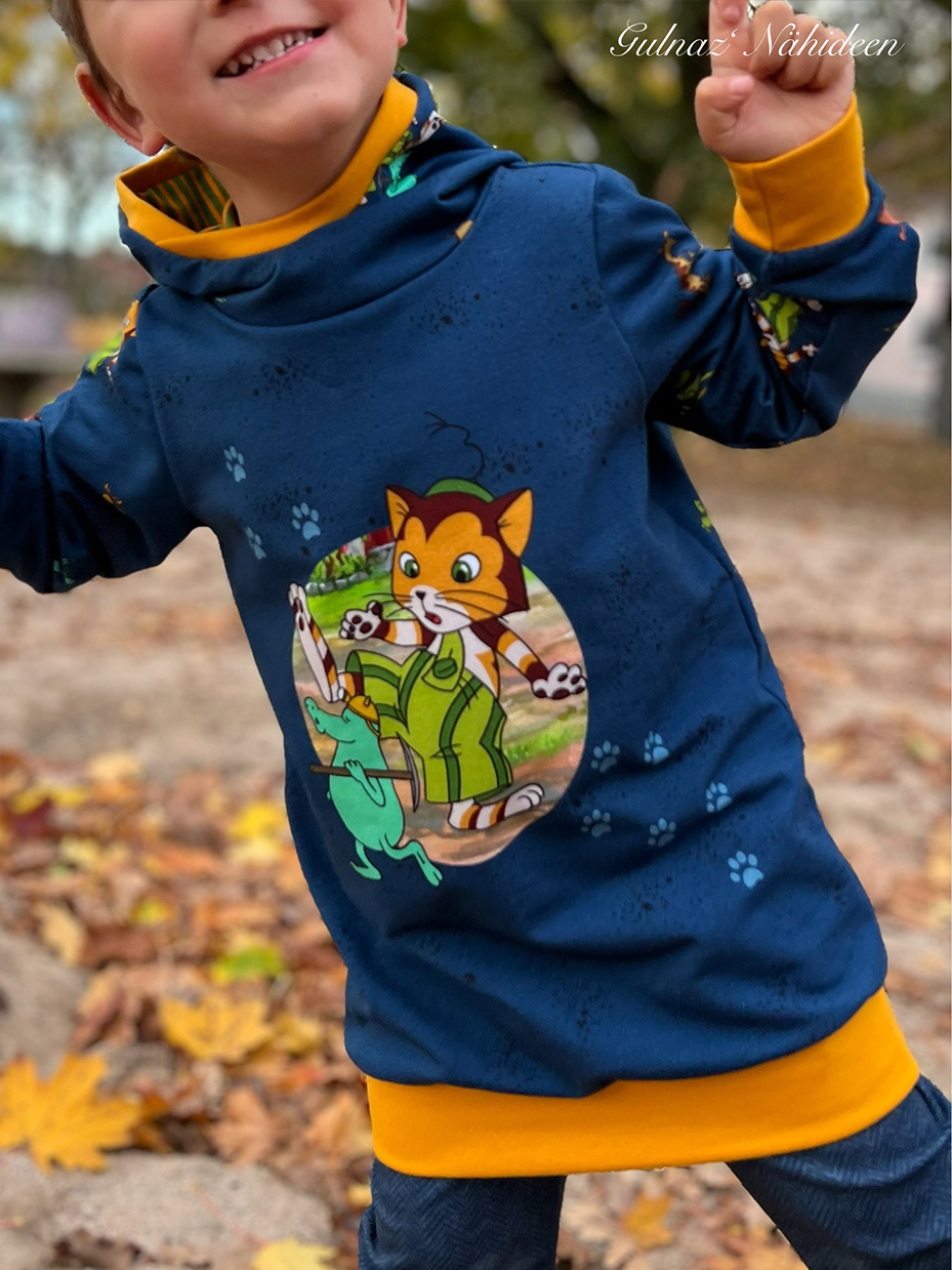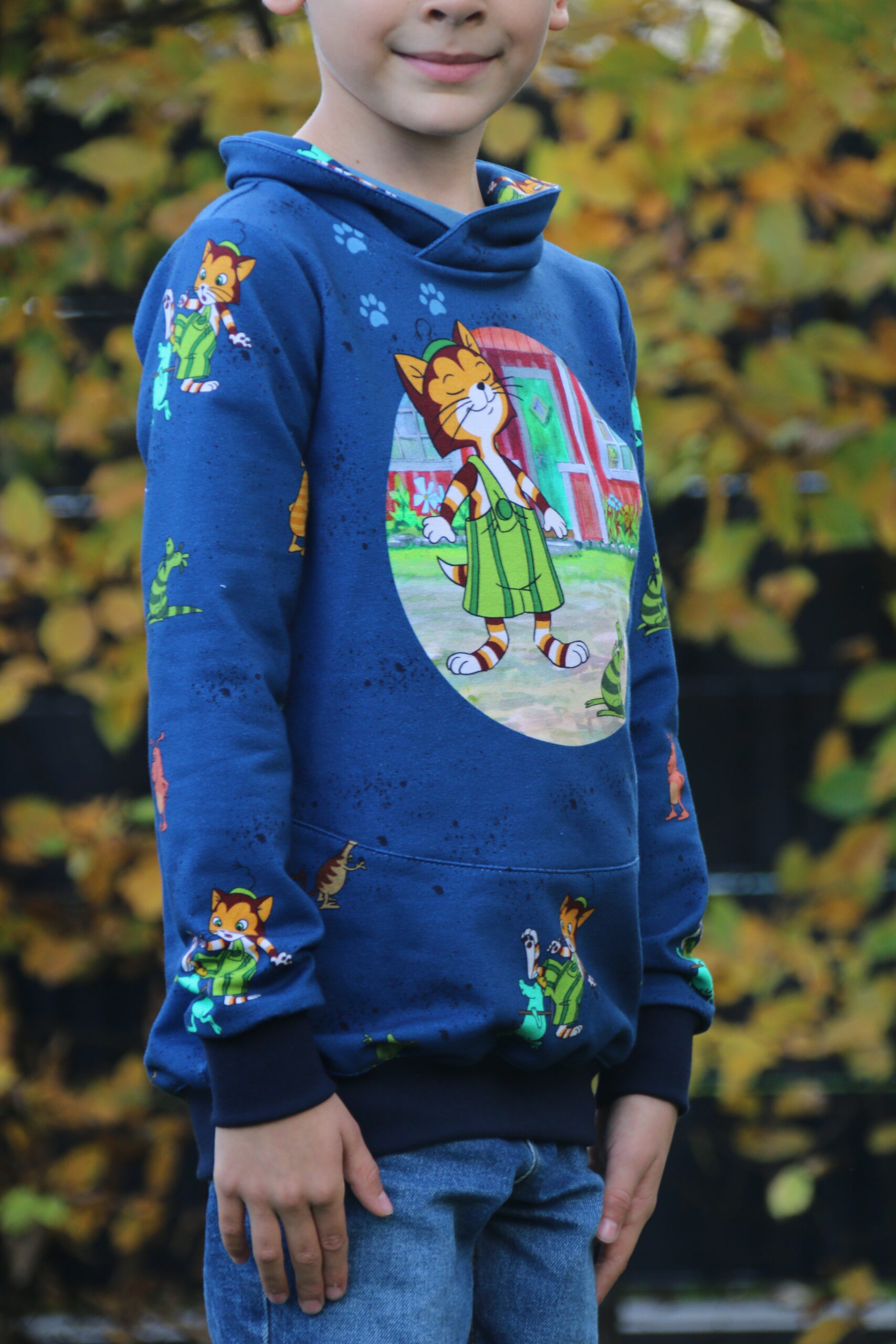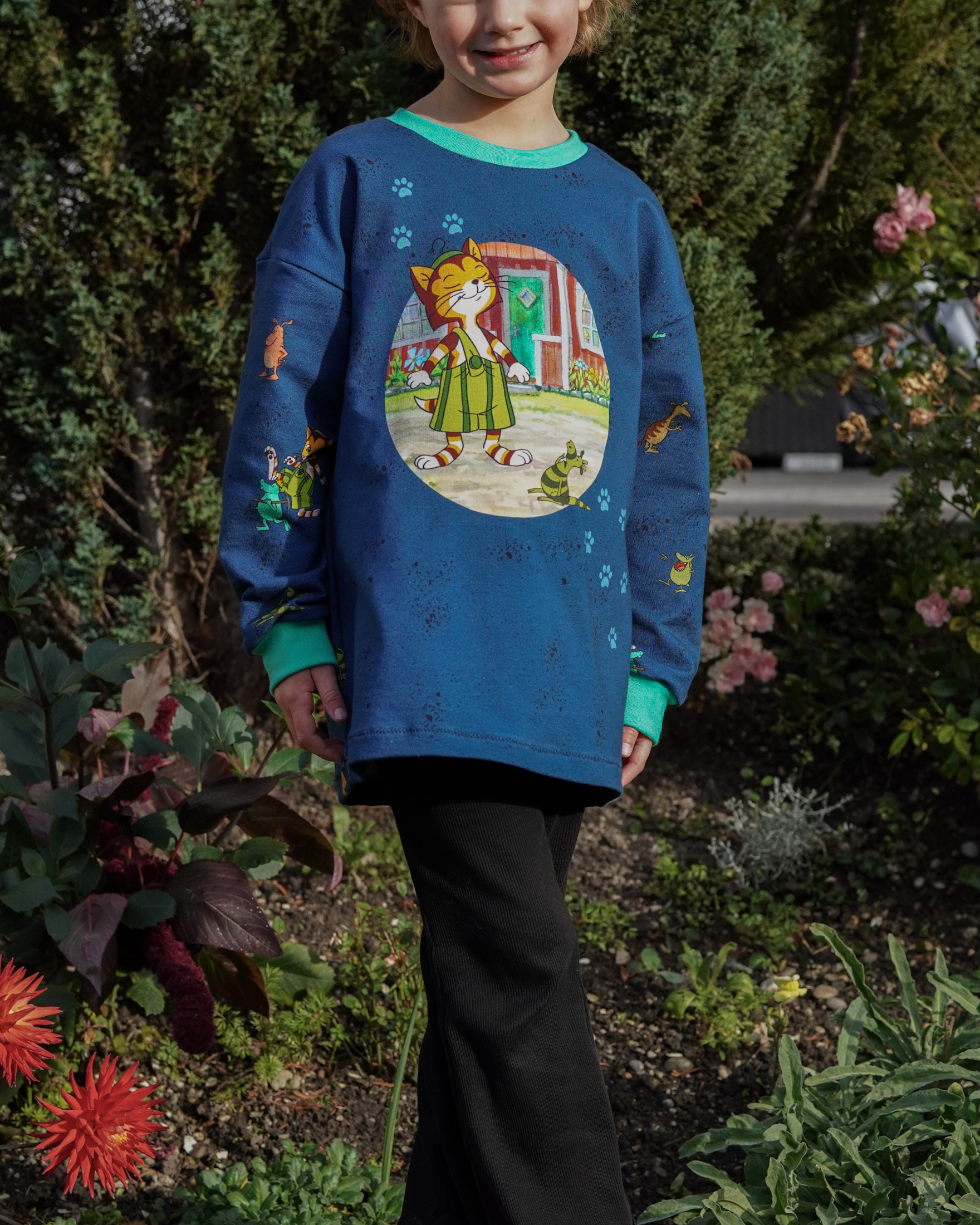 Der Allover „Findus trifft die Mucklas“ lädt, wie auch schon die älteren Kollektionen, zum Entdecken und Geschichten erzählen ein.