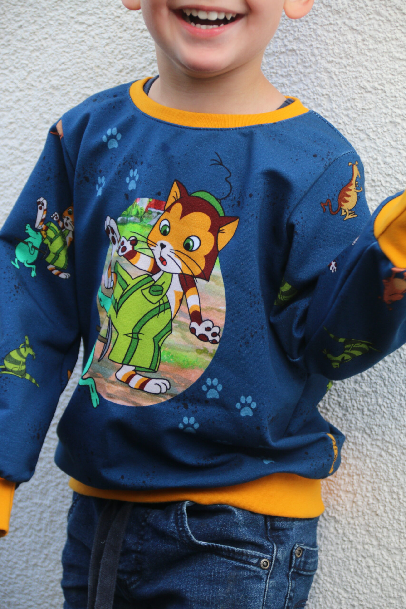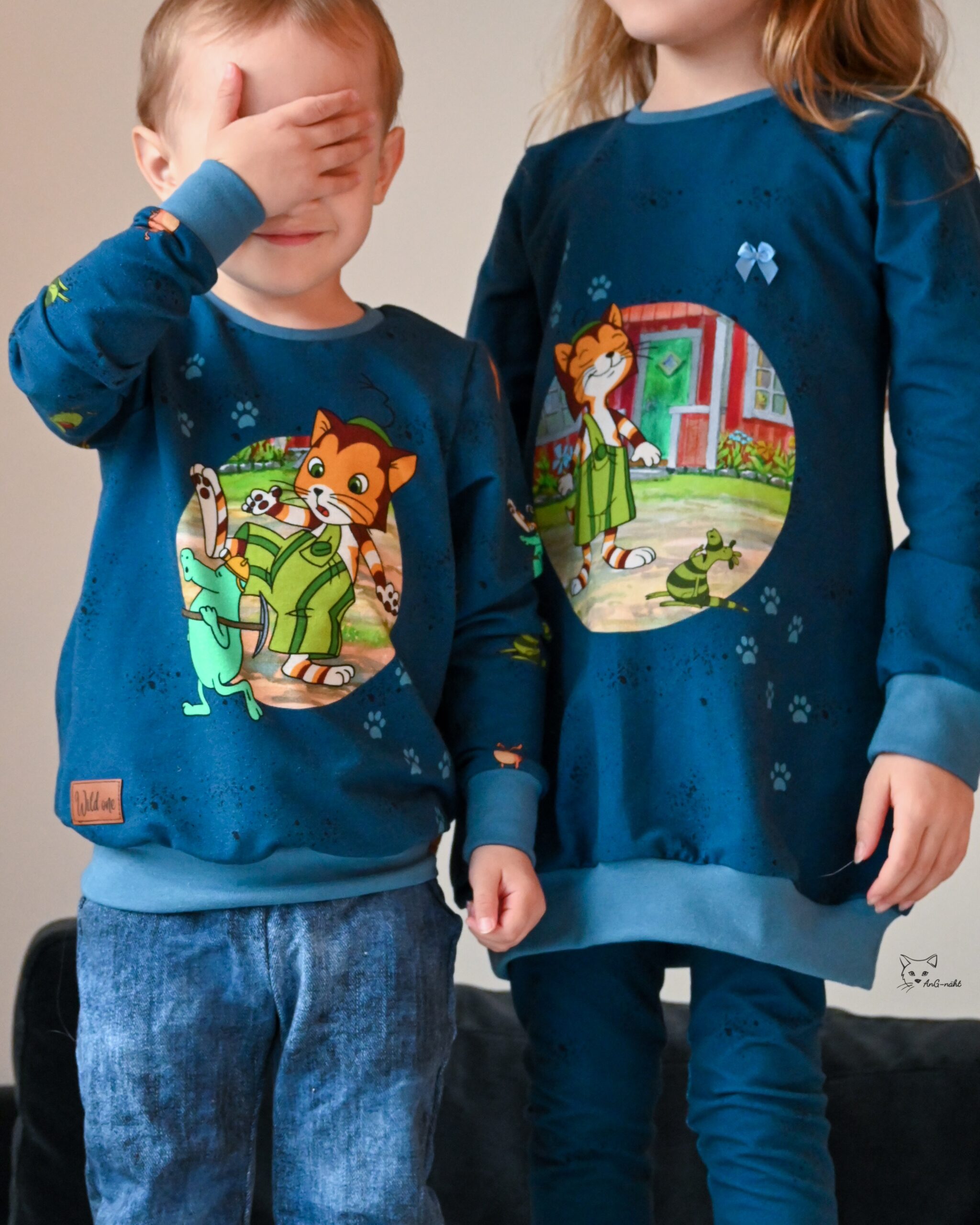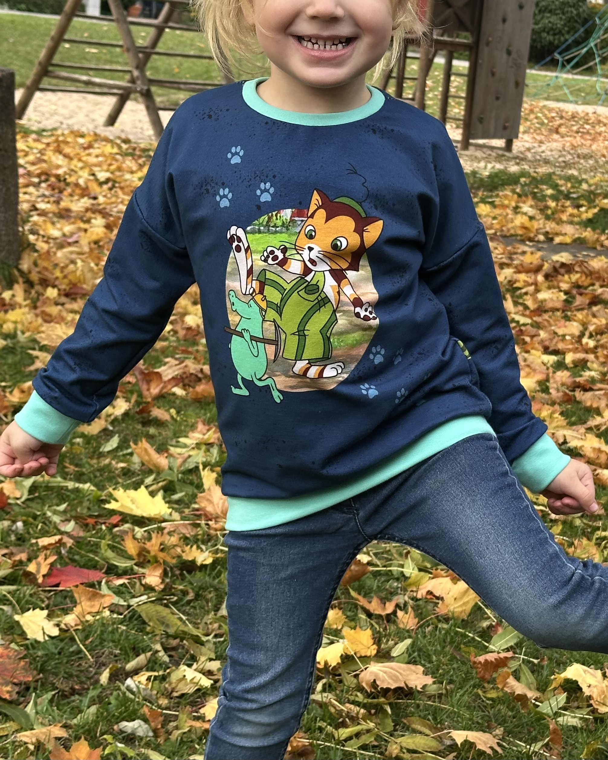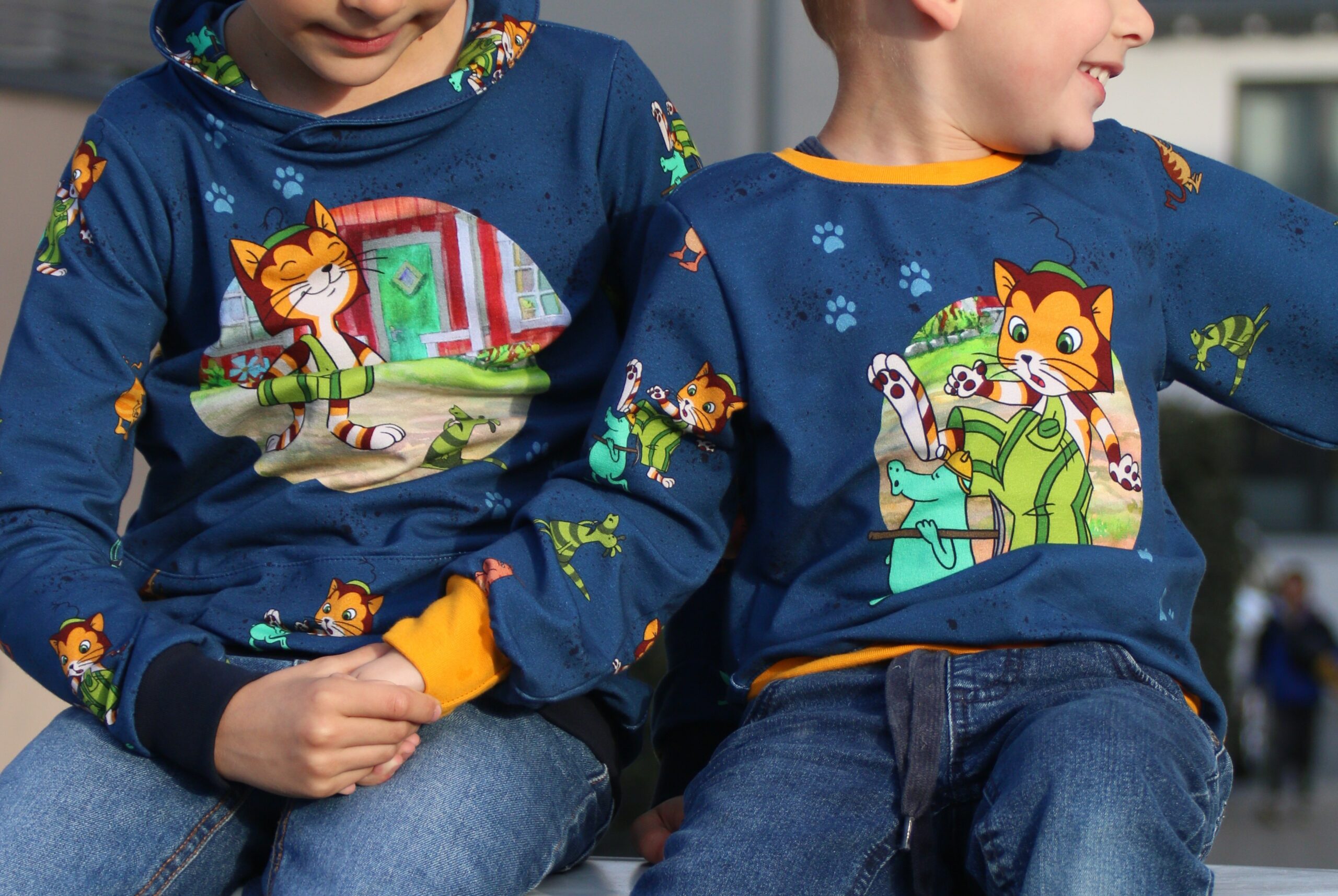 Der Allover „Findus trifft die Mucklas“ lädt, wie auch schon die älteren Kollektionen, zum Entdecken und Geschichten erzählen ein.