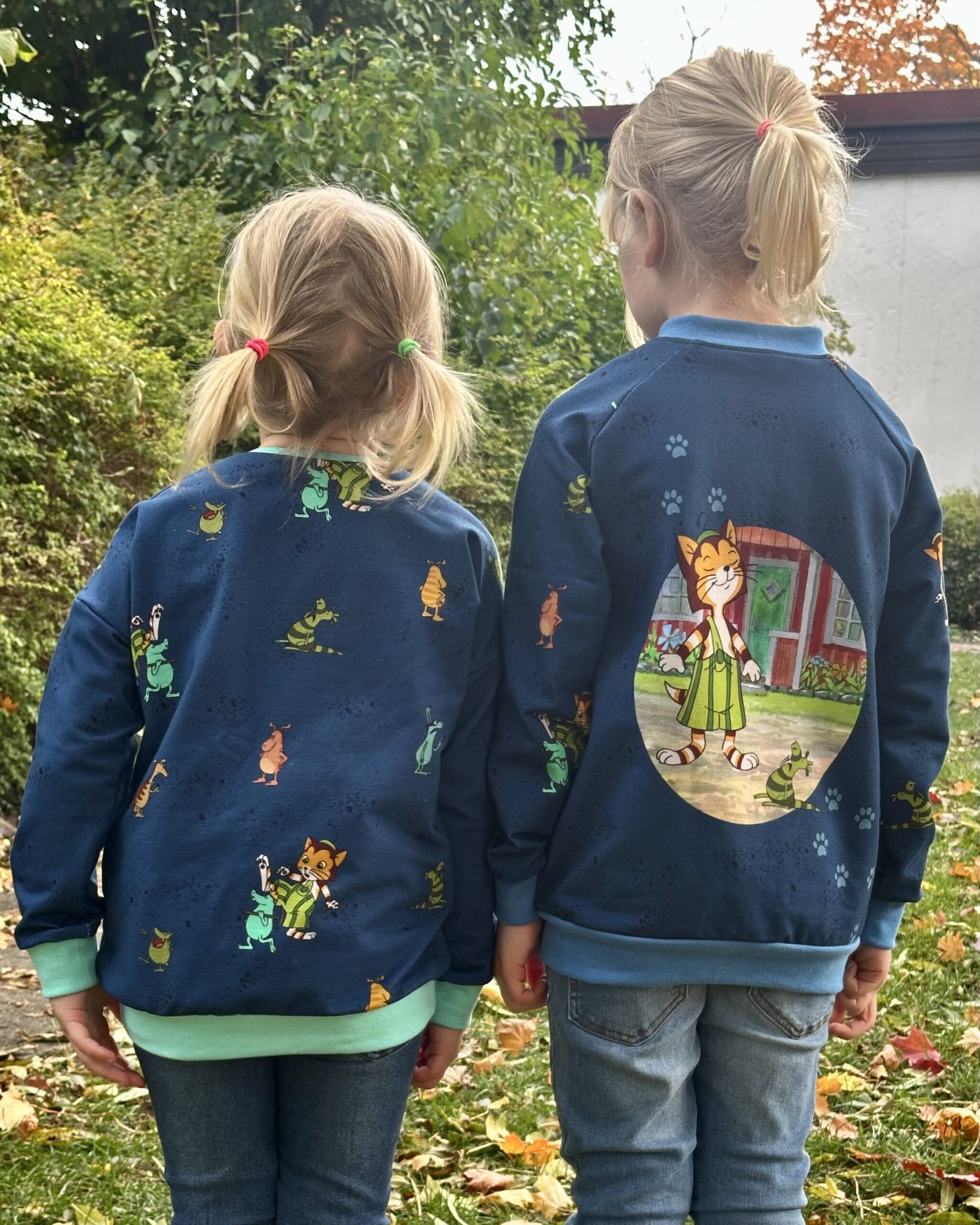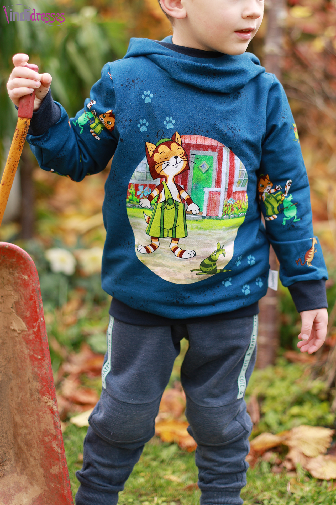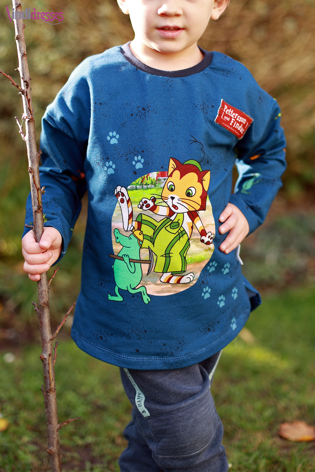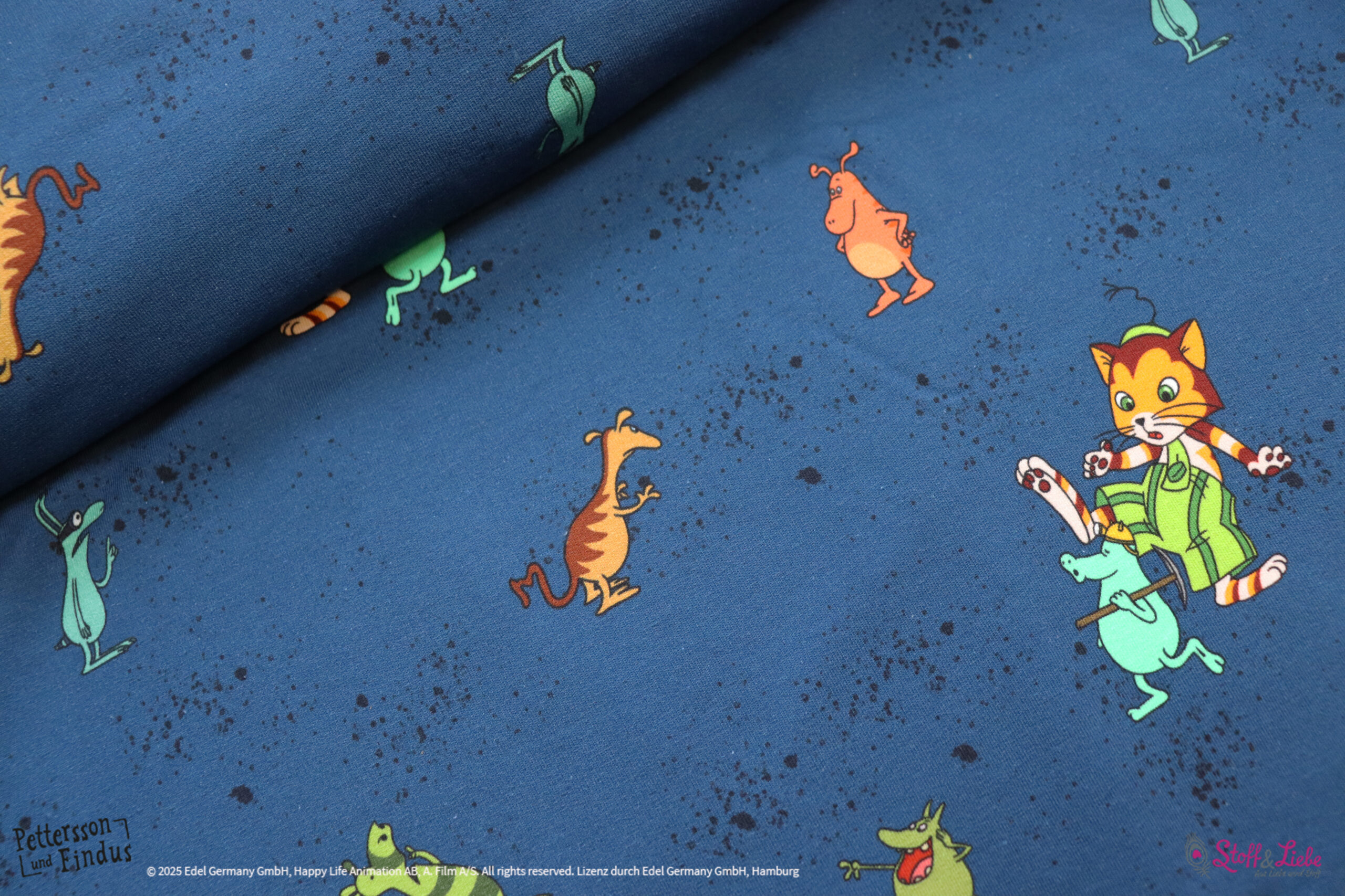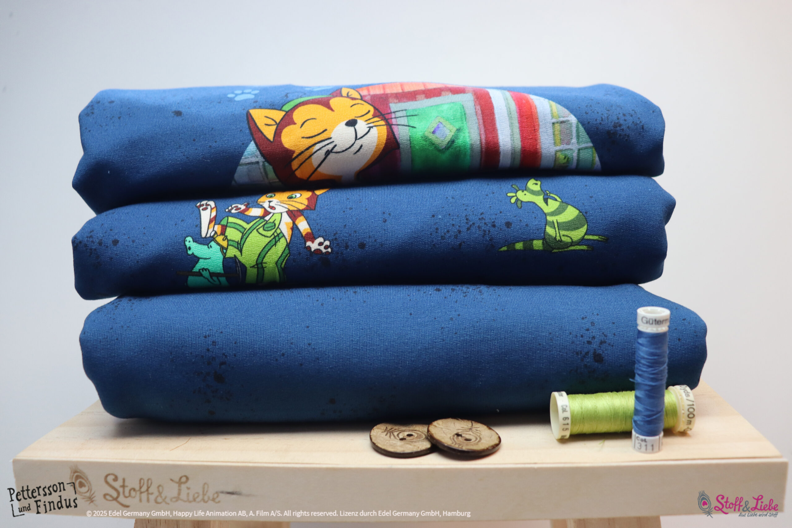 Der Allover „Findus trifft die Mucklas“ lädt, wie auch schon die älteren Kollektionen, zum Entdecken und Geschichten erzählen ein.