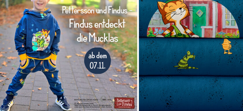 Findus entdeckt die Mucklas! In dieser Woche wartet ein neues Stoffabenteuer auf Euch. Gewohnt zauberhafte Motive voller Charme und Witz in einem modernen Look. Freut Euch auf Stoffe mit unserem kleinen, frechen Lieblingskater und den quirligen, trollartigen Wesen.