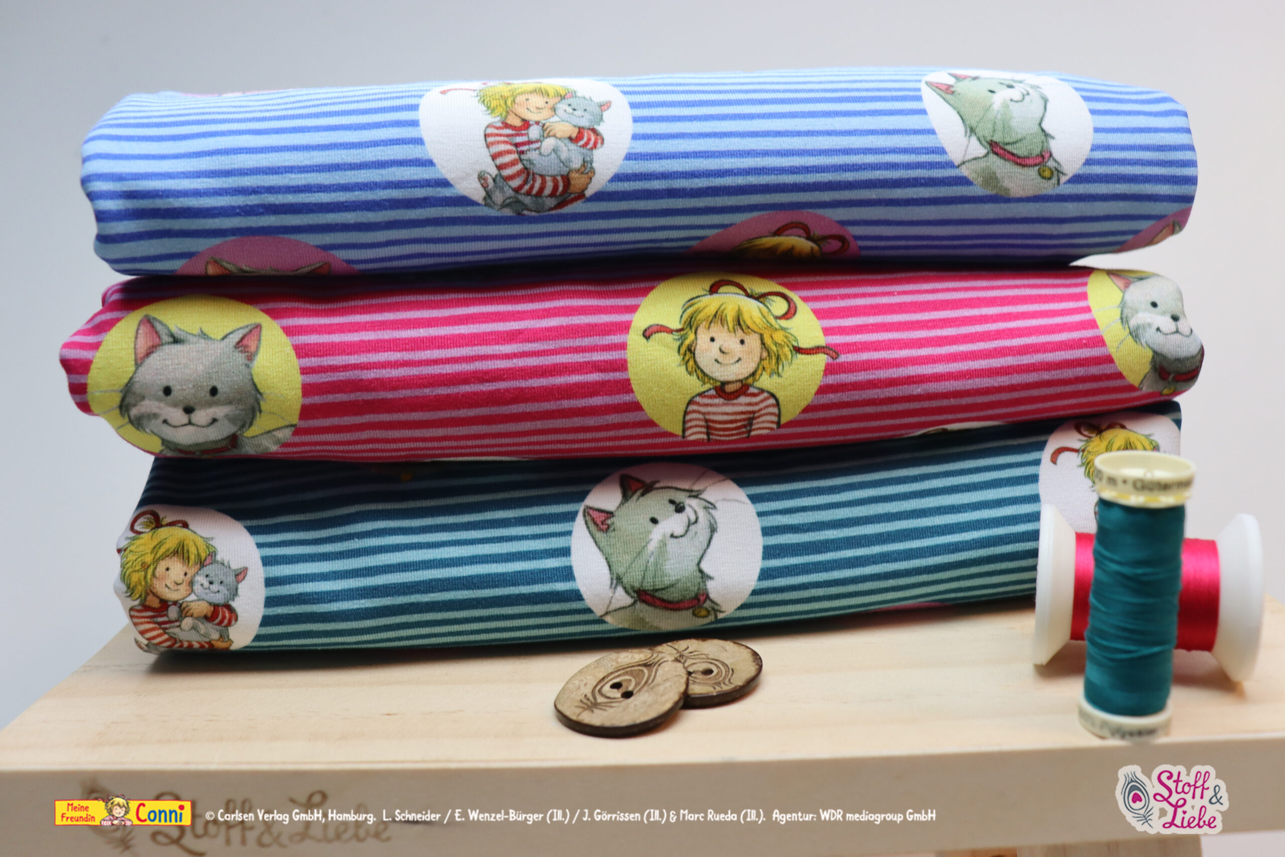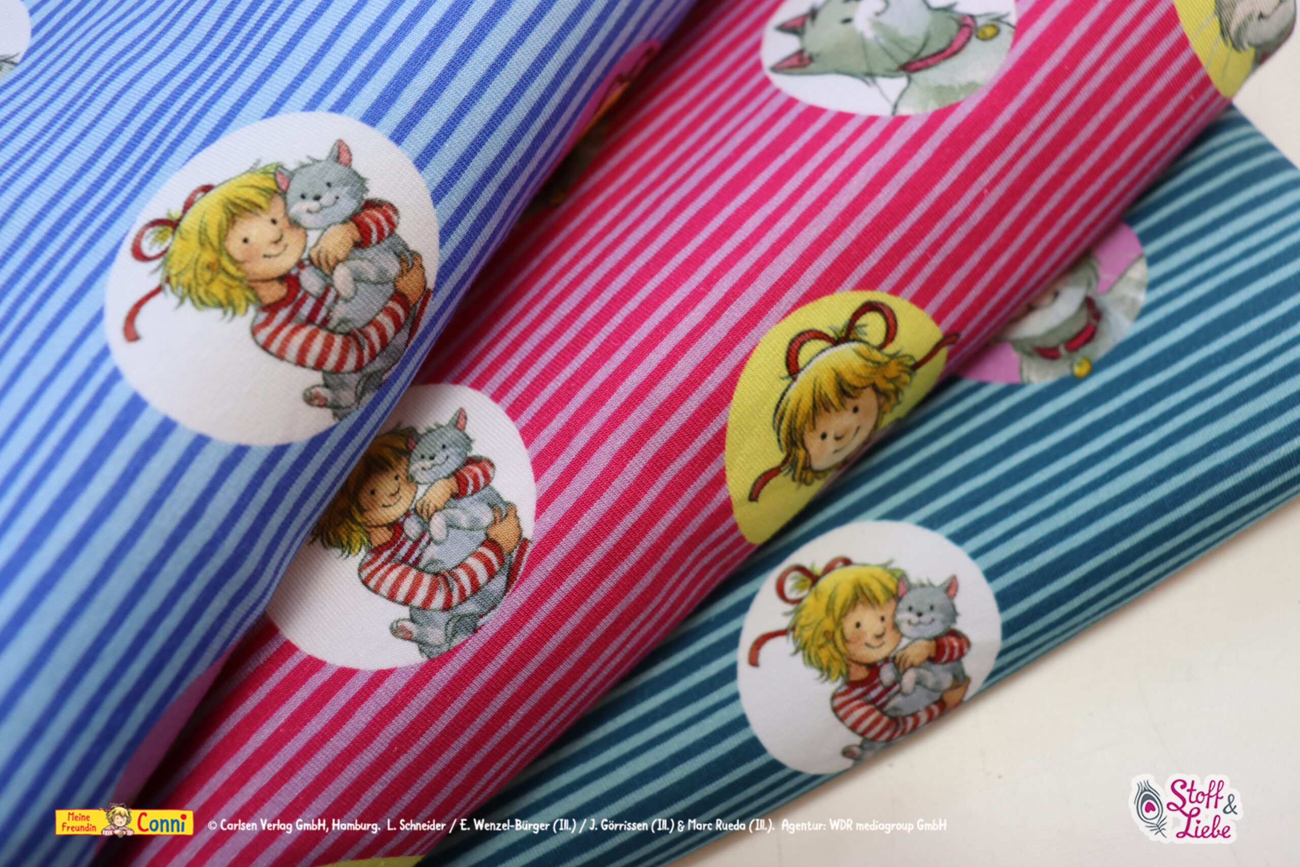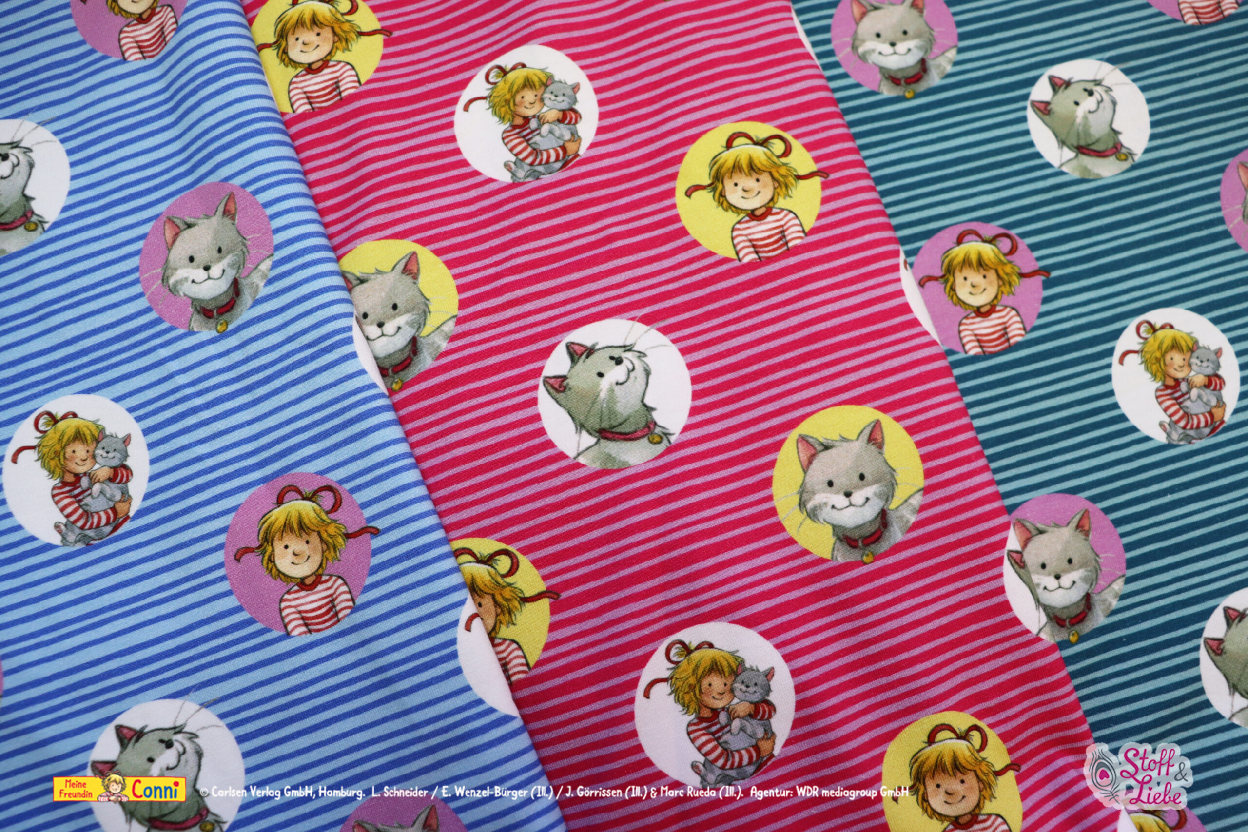 Wenn Conni eins liebt, dann ihren Mau! Und das Ihr diesen Stoff liebt, dass wissen wir ziemlich genau. Denn dieses Design wird immer wieder angefragt. Zeitlos, klassisch und mit jeder Menge Platz für Eure Kreativität, bekommt Ihr „Conni liebt Mau“ heute in drei neuen Farben. Eine schöner als die andere, könnt Ihr Euch entscheiden?