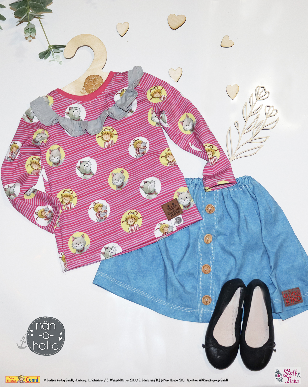 Egal für welche Variante Ihr Euch entscheidet, eins ist klar, hiermit werden die weltschönsten Conni Outfits entstehen. Wie wäre es neben Outfits mit einem Kissen oder Patchworkdecke?