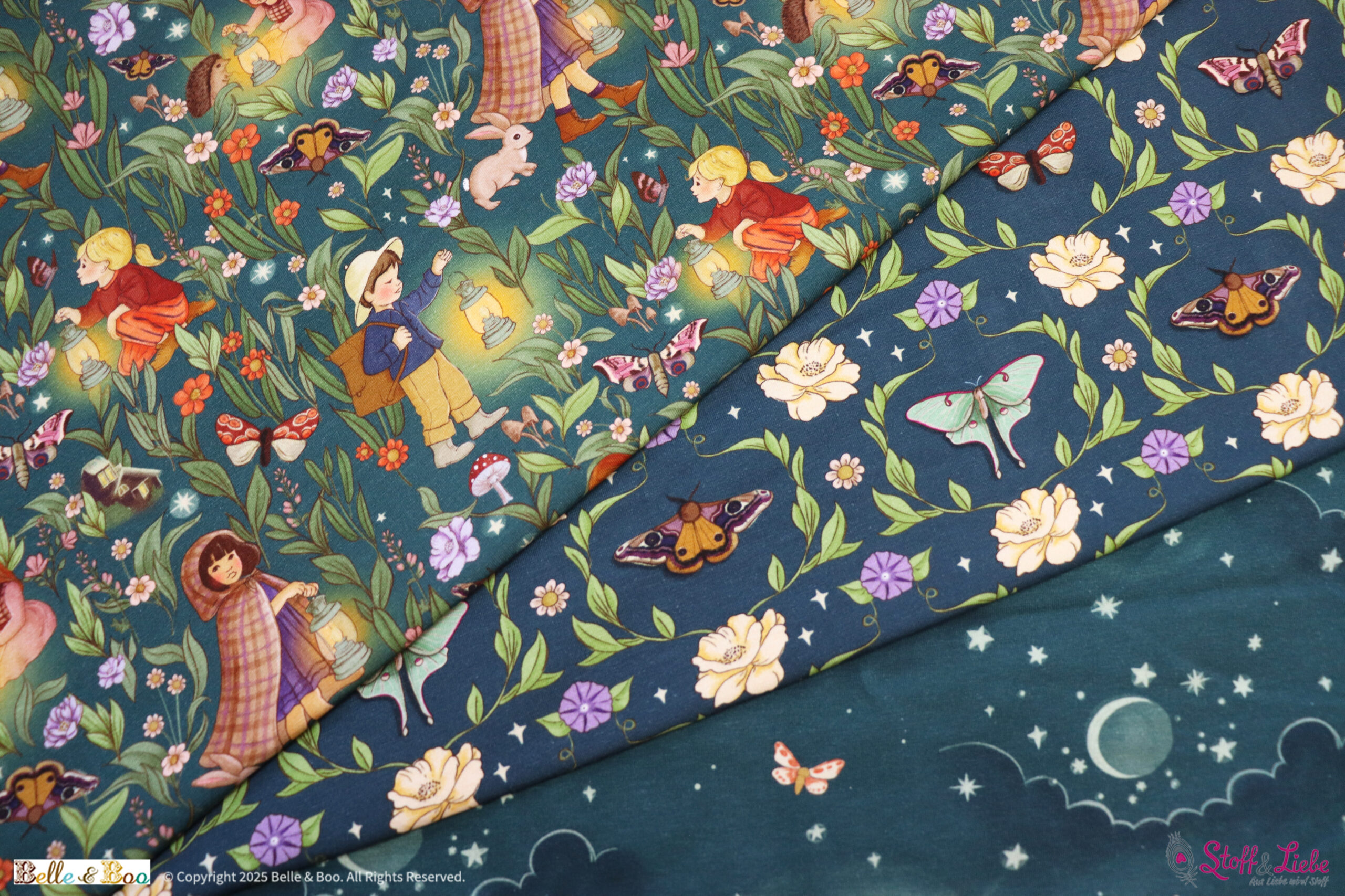 Es ist Bestell-o-meter Zeit! Die erste Auflage dieses Designs im letzten August war ruckzuck ausverkauft und Ihr habt soooo oft nachgefragt, ob es hier noch Nachschub geben kann. Ok, wir geben zu, es hat jetzt ein bisschen gedauert, aber wie heißt es so schön? Gut Ding will Weile haben! In dieser Woche lassen wir Belle & Boo Nachtwanderung in neuem Glanz erstrahlen. Drei bezaubernde Stoffe warten ab Freitag, 10 Uhr im Bestell-o-meter auf Euch.