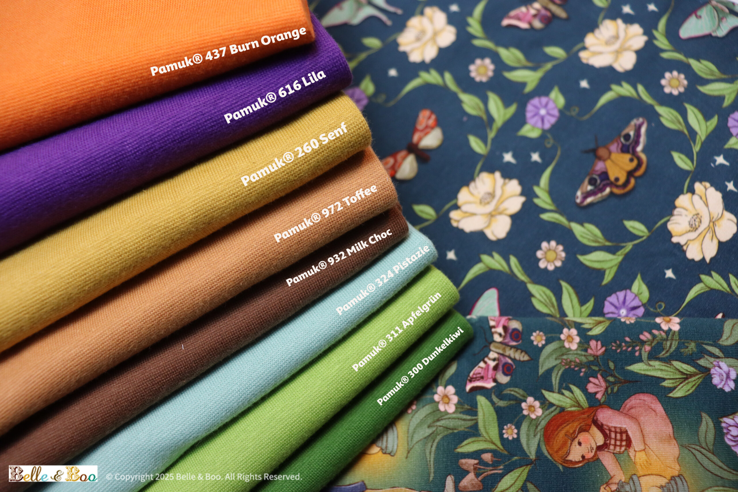 Außerdem haben wir Dir ein Belle & Boo Paket geschnürt. Es besteht aus 3 x 1 m + 1 m Bündchen für 58,97 €. Wählen kannst Du hier zwischen Pamuk® Bündchen in Senf oder Lila.