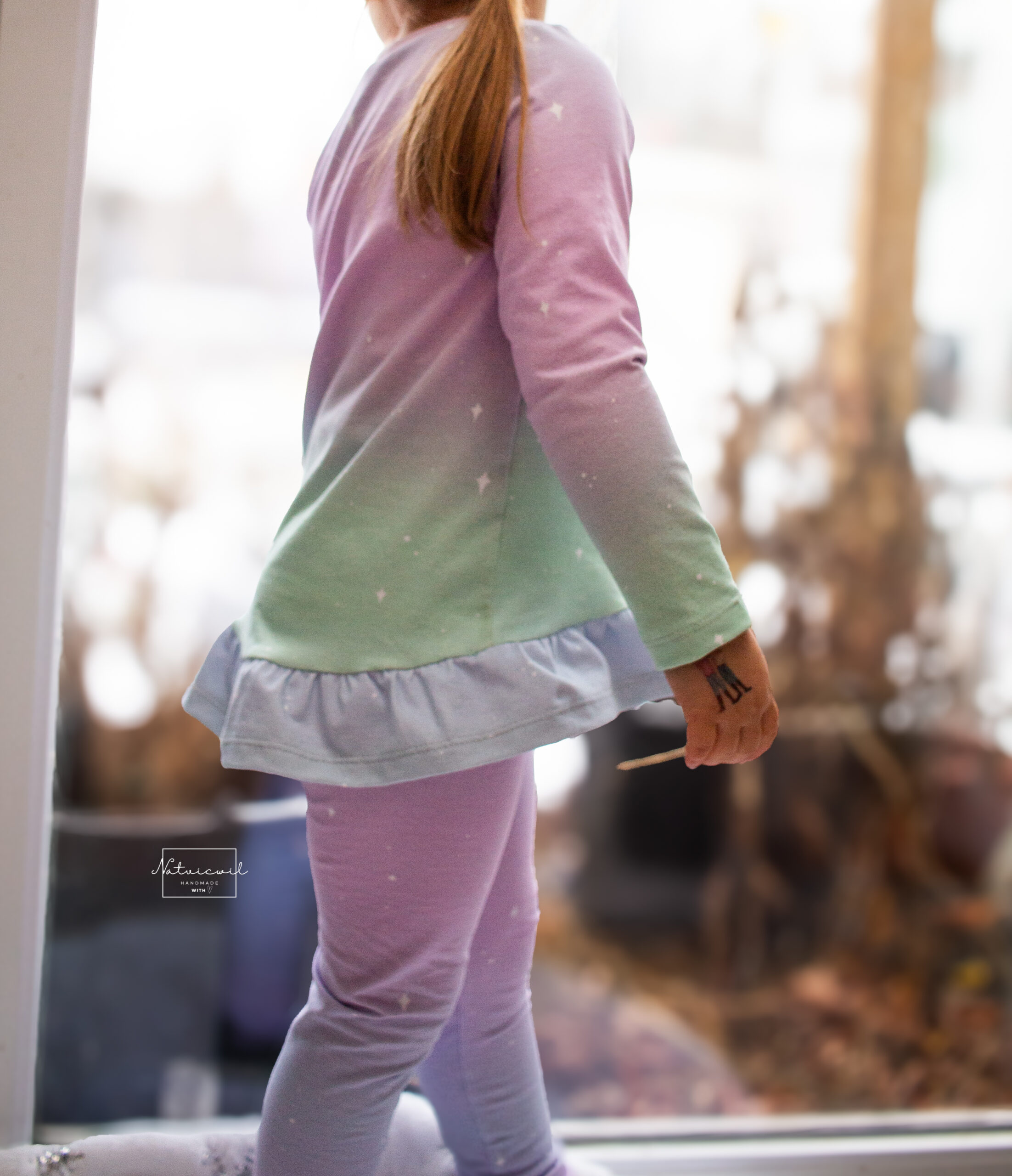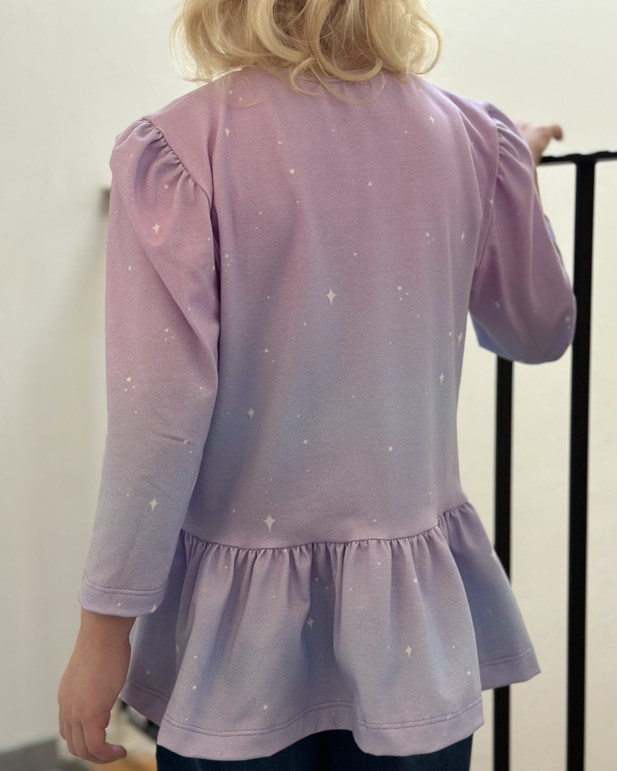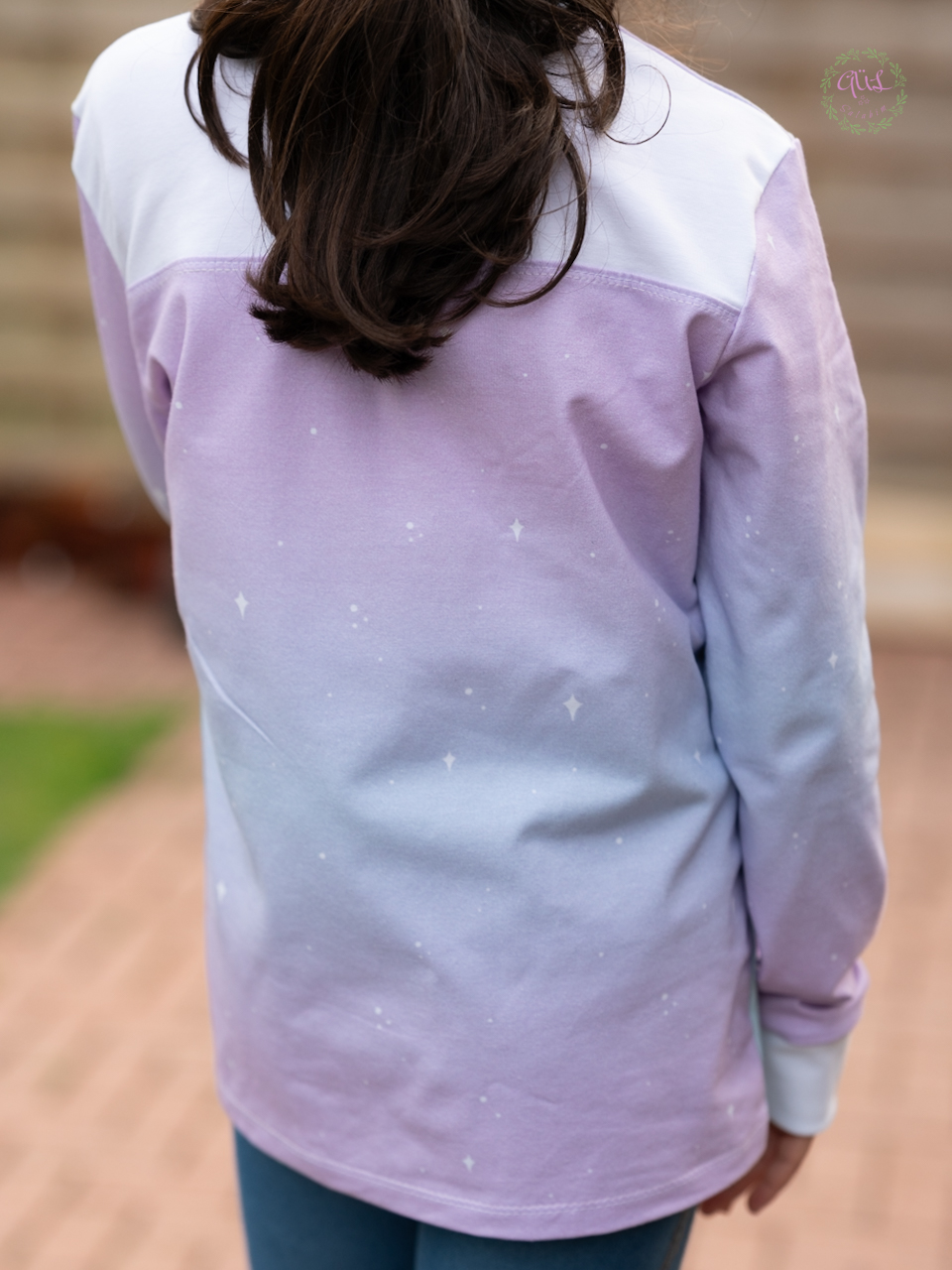 Das Panel mit einer Höhe von ca. 74 cm besticht durch einen wunderschönen Farbverlauf, der durch Sternenglitzer aufgelockert wird. Hier lässt sich wunderbar mit Farben und Schnitten spielen.