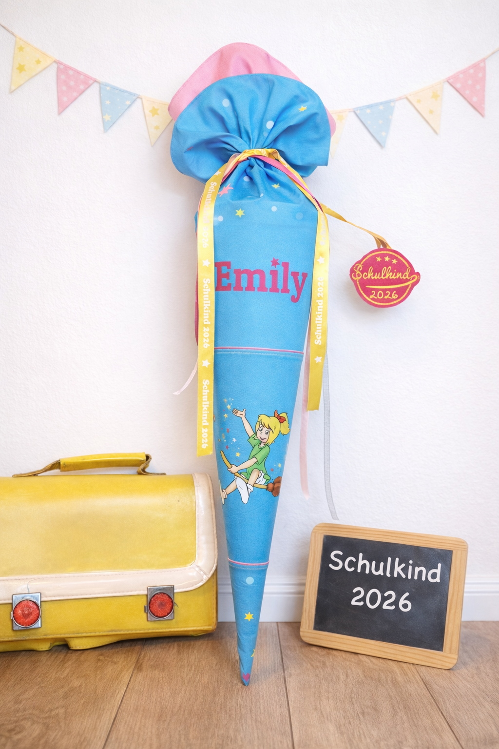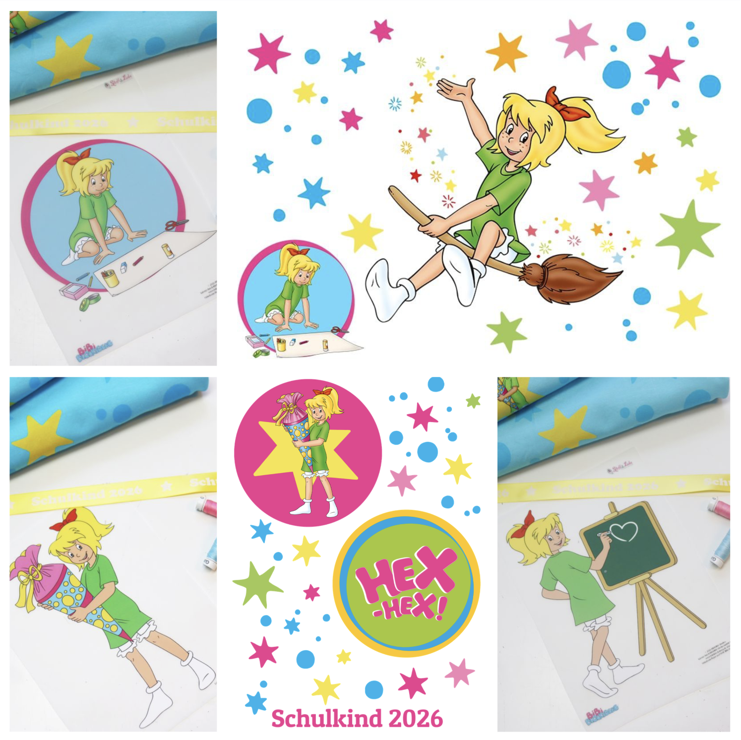 1 x Bügelbild A4 verschiedene Bibi Blocksberg Motive mit Sternen und Schulkind 2026 Schrifzug