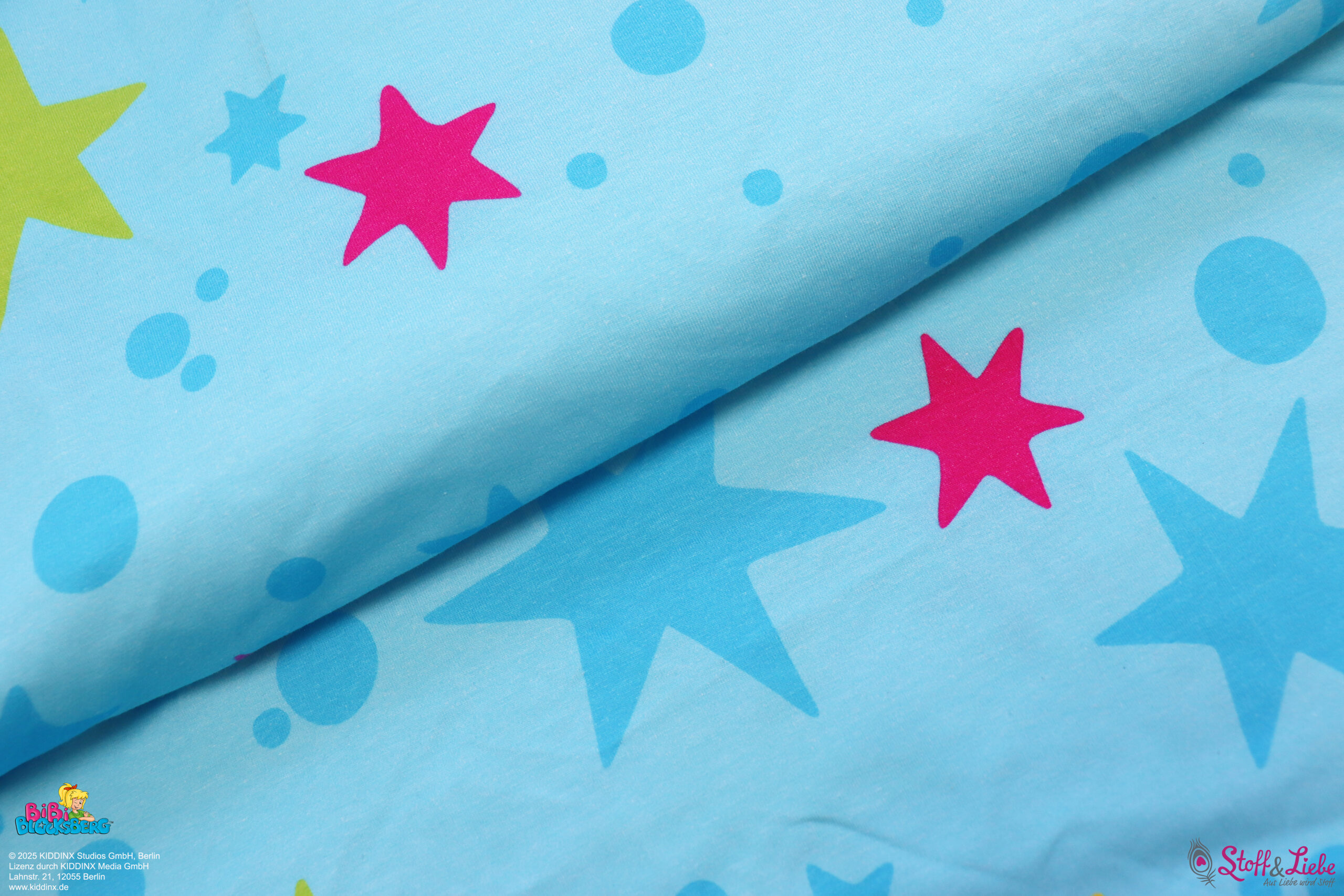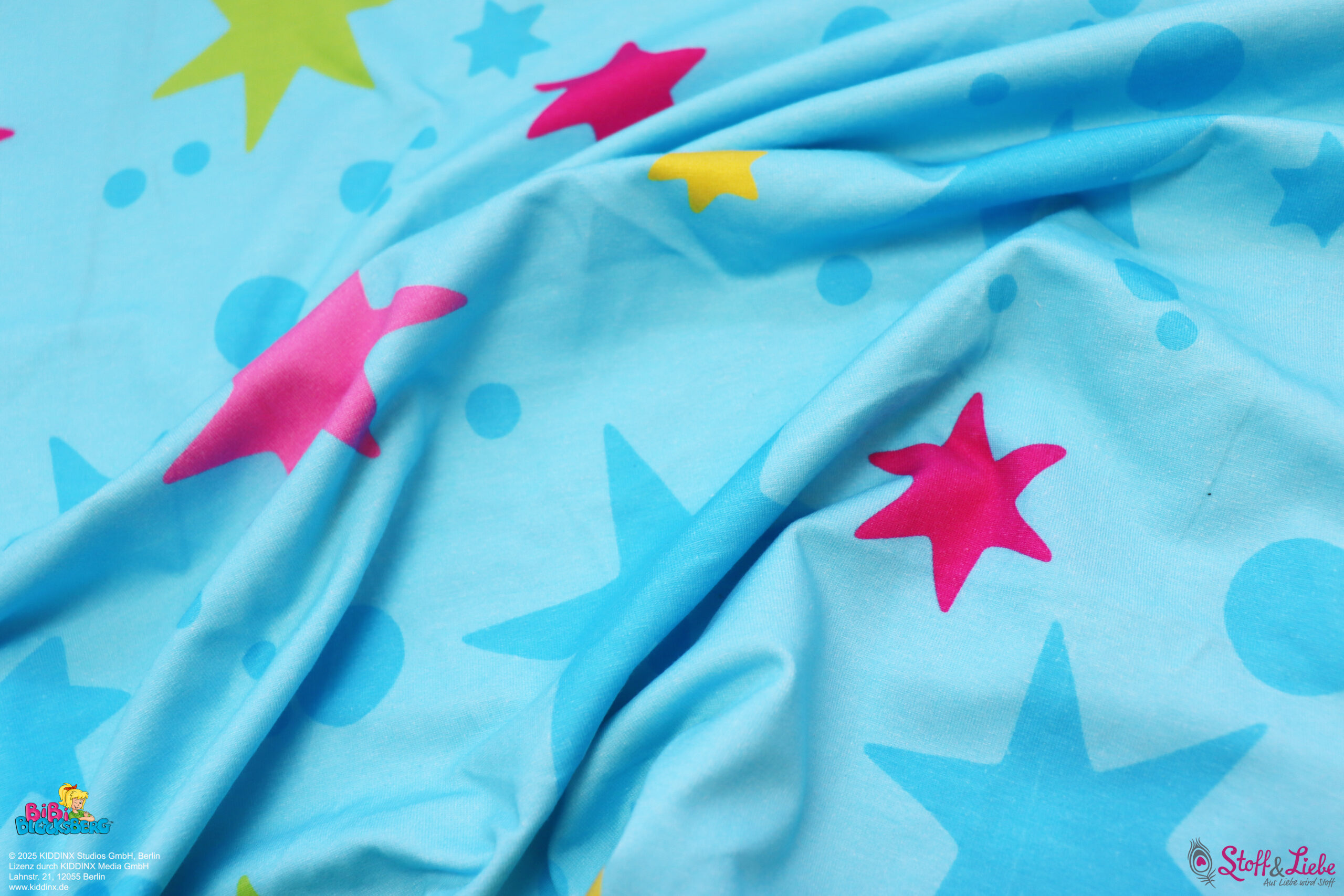 Und dann haben wir da noch den perfekten Kombistoff. Die Sterne 🙂 Natürlich absolut farbidentisch zum Allover. Hier findet Ihr Punkte und Sterne in verschiedenen Größen und teilweise eingefärbt. Natürlich in den Farben, die Ihr auch auf dem Allover entdecken könnt.