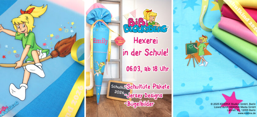 Mit den zauberhaften Stoffen aus unserer neuen Serie Bibi Blocksberg – Hexerei in der Schule wird die Vorbereitung gleich noch ein bisschen magischer. Fröhliche Motive der kleinen Hexe begleiten die Schulanfänger auf ihrem Weg in den neuen Alltag.