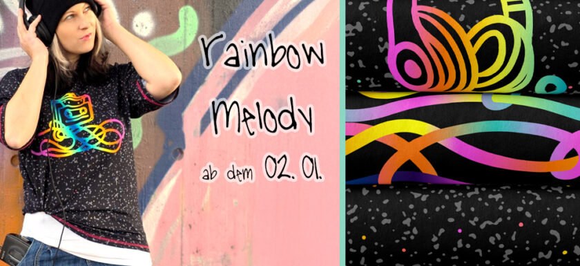 Musik macht das Leben bunter, leichter und einfach schöner. Und was macht das Leben noch schöner? Richtig, passender Stoff! Hier ist Rainbow Melody! Ein Stoff völler Möglichkeiten, denn Ihr könnt ihn, wie der Name schon sagt, mit allen Farben des Regenbogens kombinieren! Rainbow Melody Die Kollektion besteht aus: Panel (Höhe ca. 85 cm) und zwei passenden Kombistoffen: Kabelsalat und Rainbow Melody Material: French Terry (Materialzusammensetzung 95 % Baumwolle und 5 % Elasthan) Rainbow Melody Panel Das Panel hat eine Höhe von ca. 85 cm und zwischen den Motiven keinen Unterteilung. Dadurch könnt Ihr wieder ganz frei einteilen und habt viele Möglichkeiten, diesen Stoff zu vernähen. Am linkenRead More →