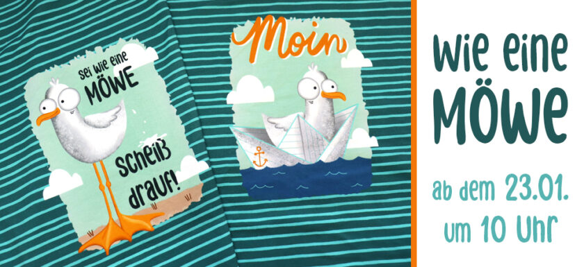 Sei wie eine Möwe! Erinnert Ihr Euch noch, vor einer Weile haben wir nach Euren Lieblingssprüchen gefragt und dieser war einer davon: „Sei wie eine Möwe…Scheiß drauf!“ Sofort hatten wir eine Idee dafür und mussten diese umsetzen. Ihr kennt das ja schon von unseren Sprüchepanels. Sie sind ein bisschen frech, ein bisschen lustig. Sie bringen uns zum Schmunzeln und stecken einfach voller Selbstironie und Humor. Die Mischung macht es, oder? Auch diese Kollektion bekommt Ihr ab Freitag, 23.01., 10 Uhr zur Vorbestellung bei uns! Wie eine Möwe Die Kollektion besteht aus: Panel und passendem Kombistoff Material: French Terry (Materialzusammensetzung 95 % Baumwolle und 5 % Elasthan) PanelRead More →